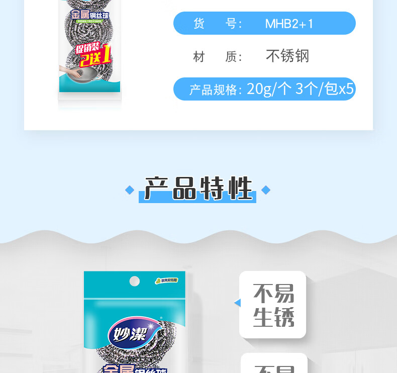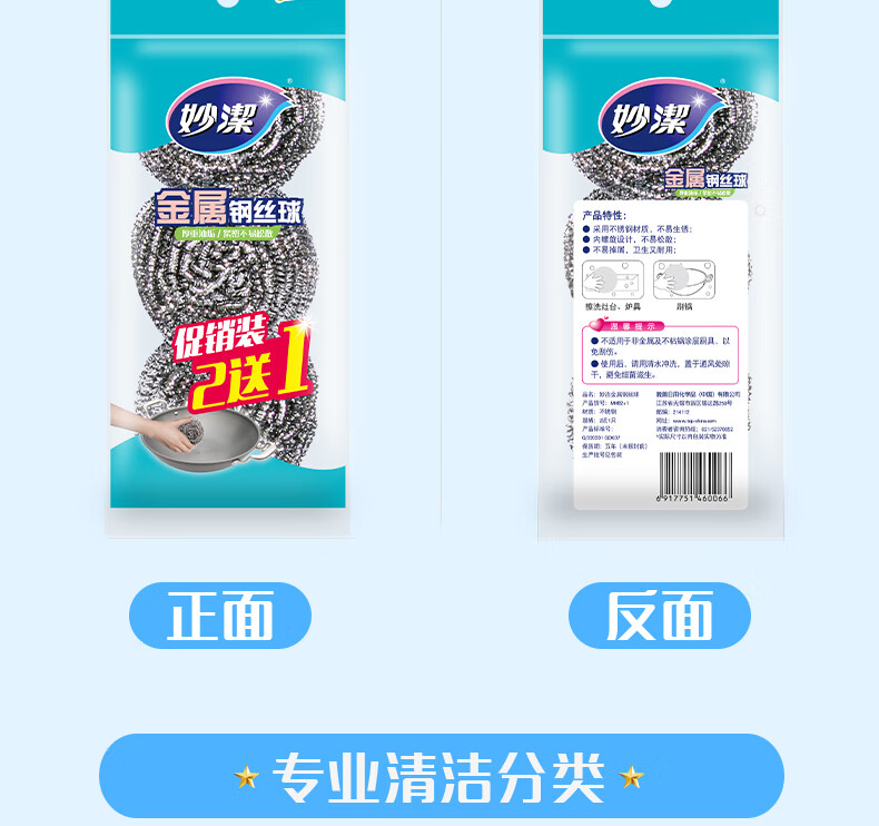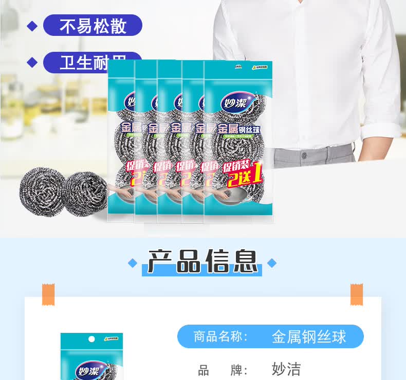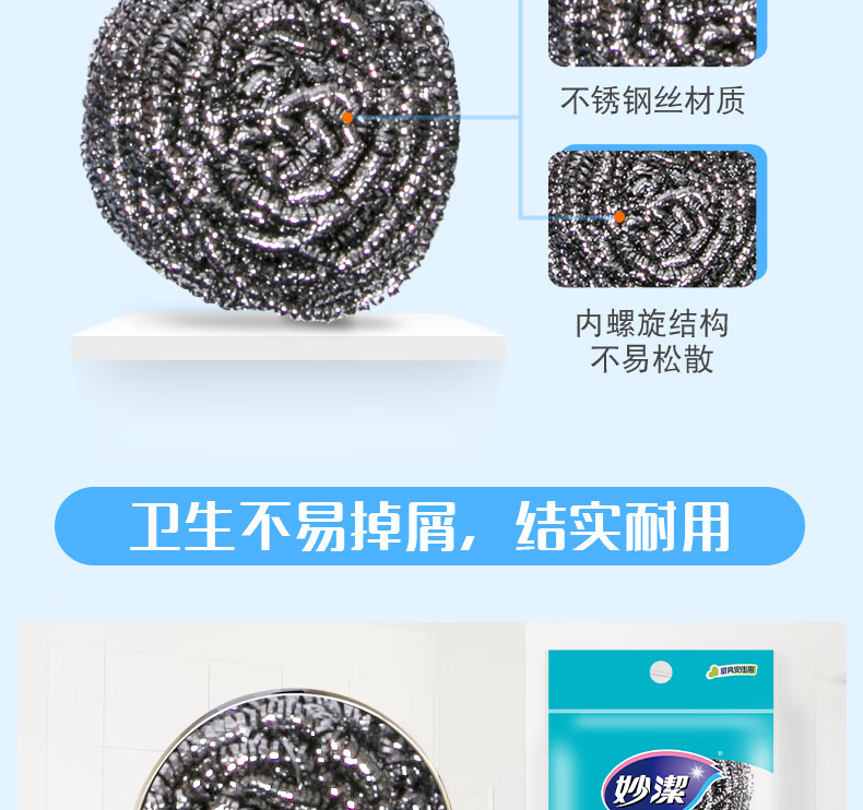 妙洁 钢丝球刷子家用厨房易清洁钢丝刷强力去垢去油污 共15只