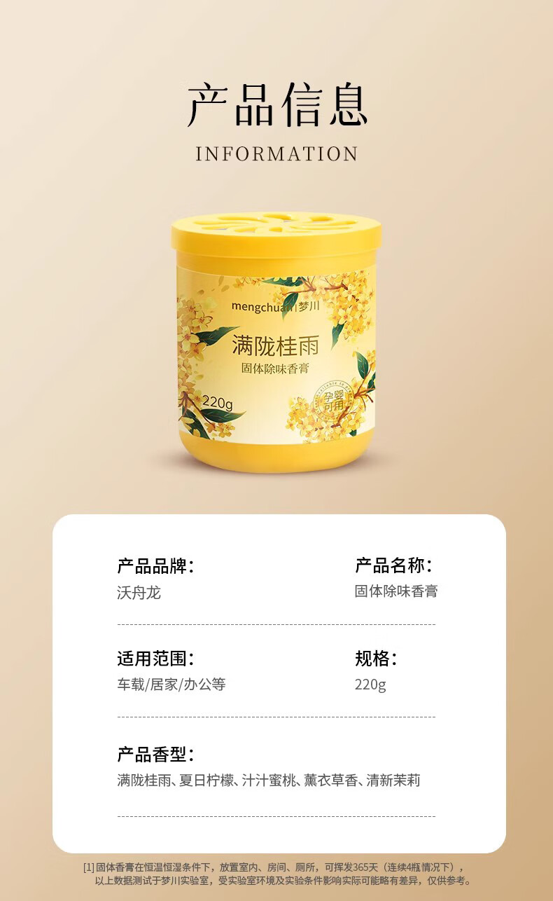 沃舟龙桂花车载香薰固体香膏2025新款车内用除异味持久留淡香氛汽车香水 满陇金桂【1瓶装】孕婴可用I祛味