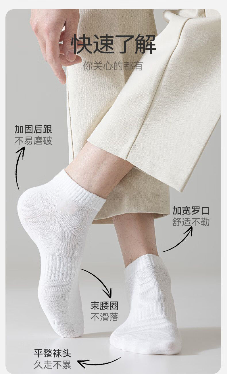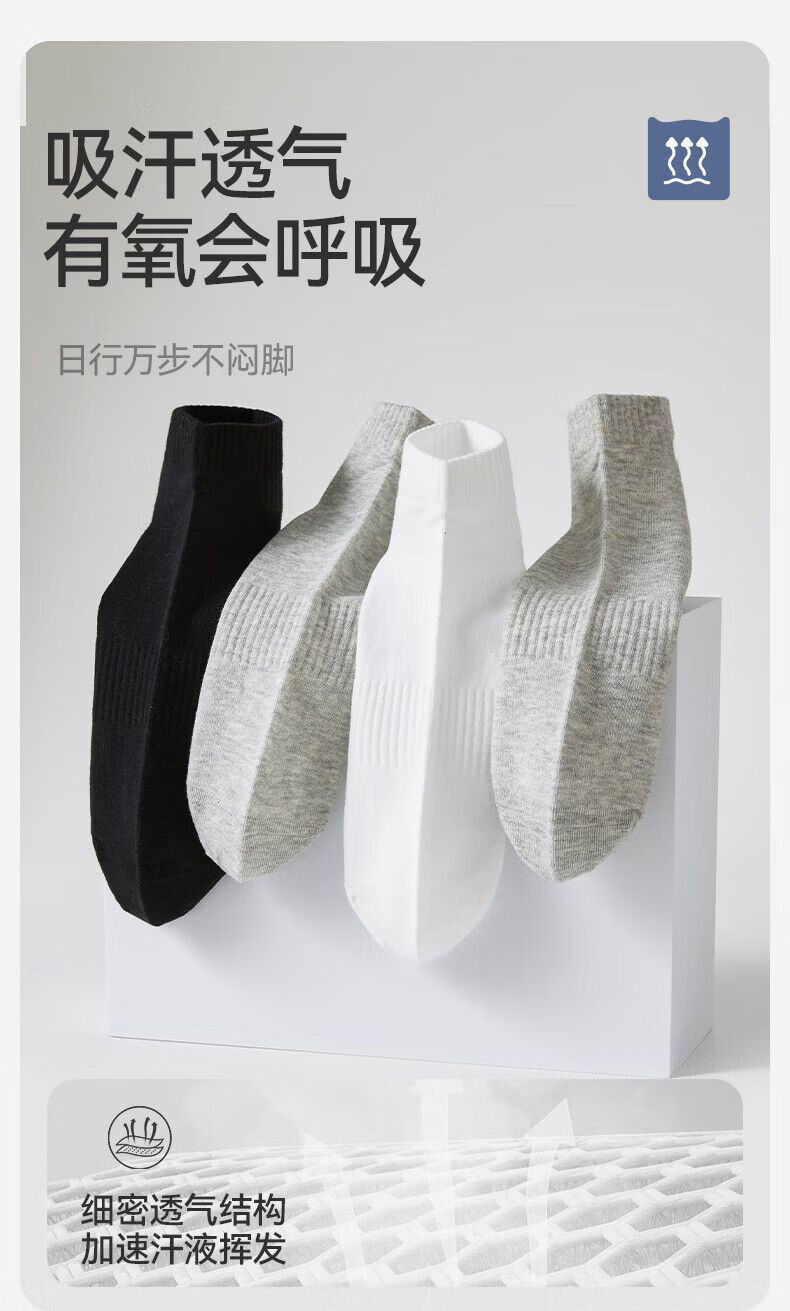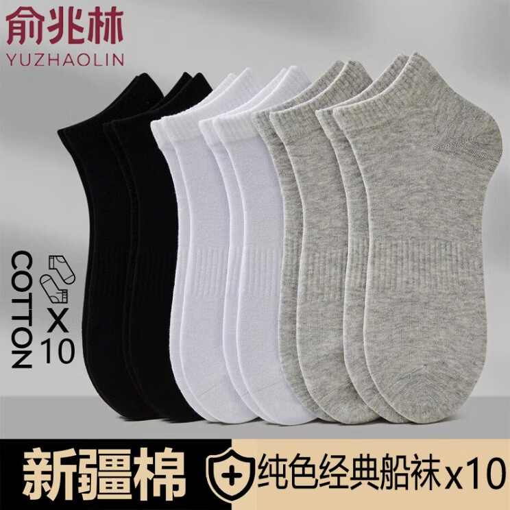 俞兆林(YUZHAOLIN)10双装船袜男士夏季短袜纯色百搭网眼透气不臭脚低帮束腰运动薄款 纯色短筒/混装10双 均码