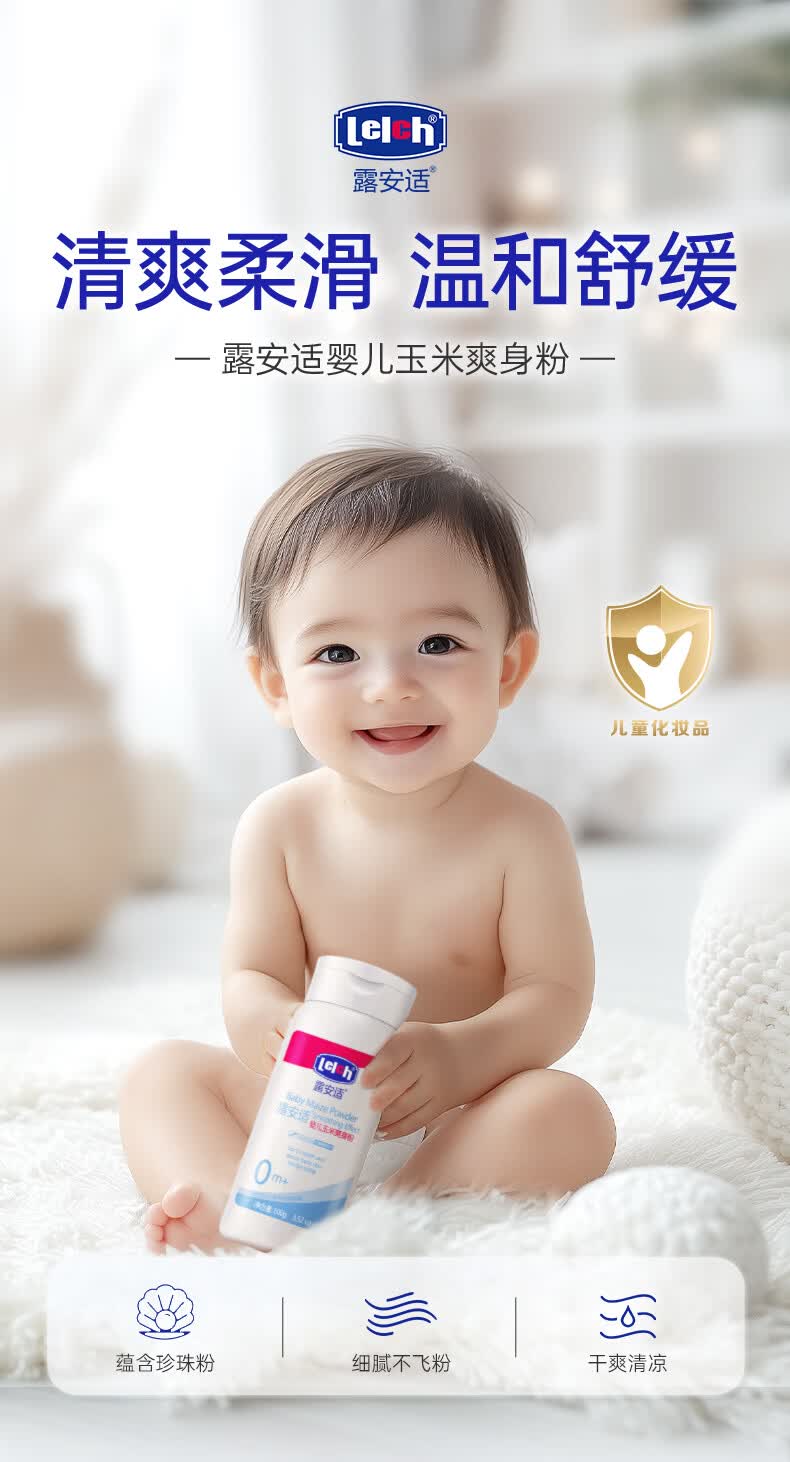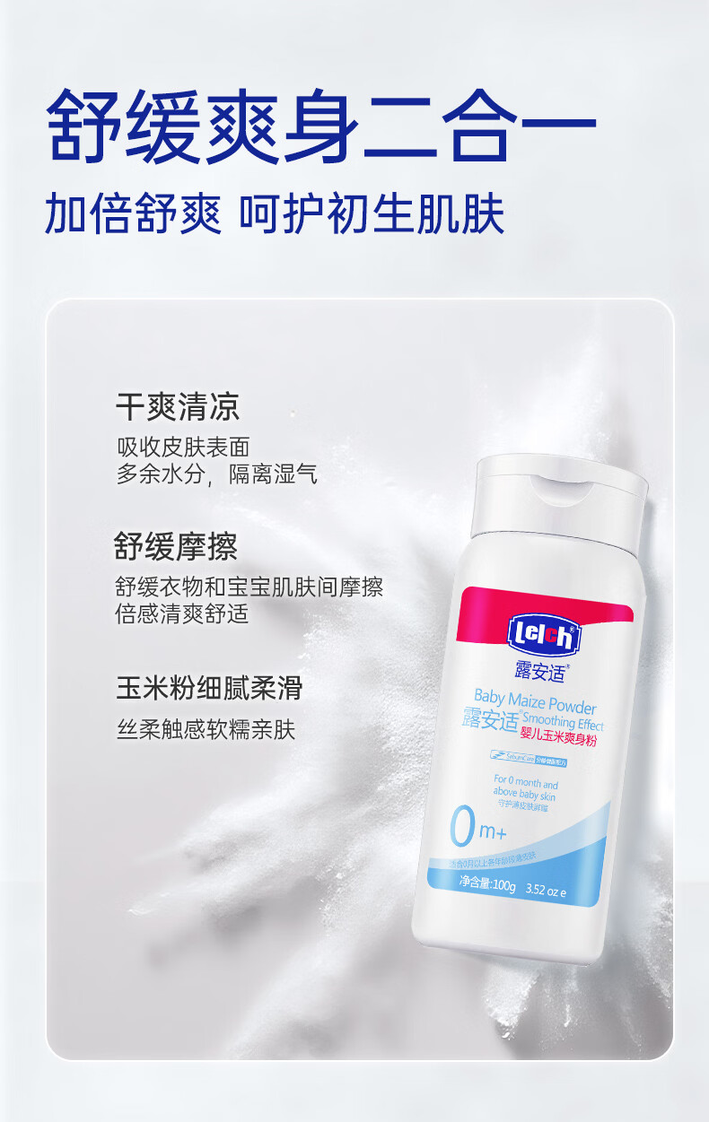 露安适(Lelch)婴儿植物爽身粉 热痱粉 宝宝舒缓 不含滑石粉祛痱清凉 婴儿玉米爽身粉100g