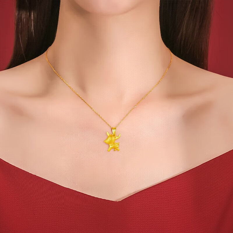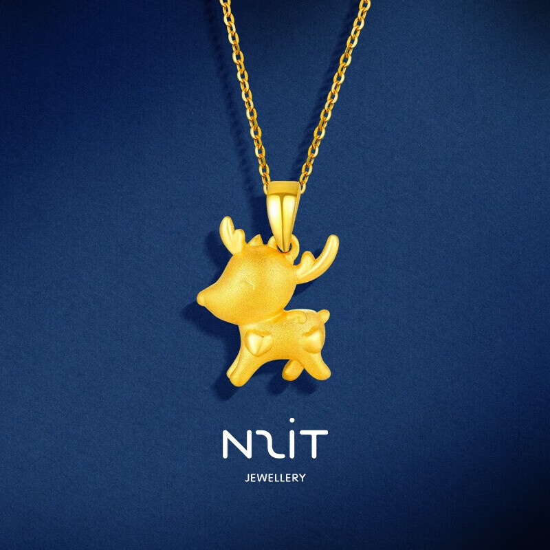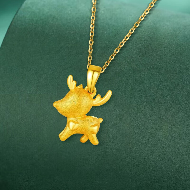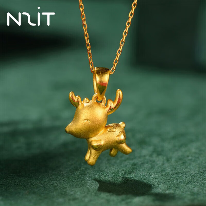 N2it 圣诞麋鹿项链女3D合金镀金黄色款新年圣诞节礼物送女友老婆 圣诞麋鹿项链