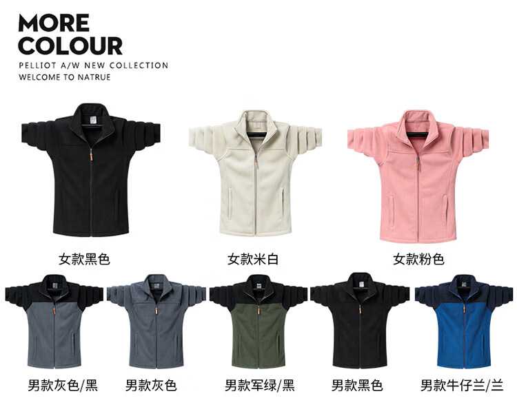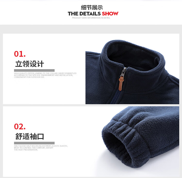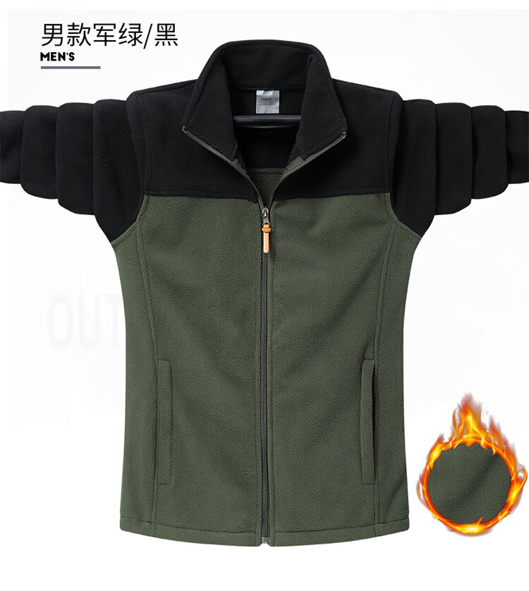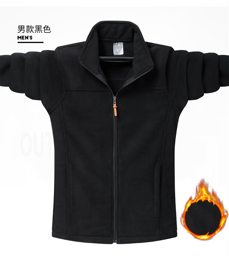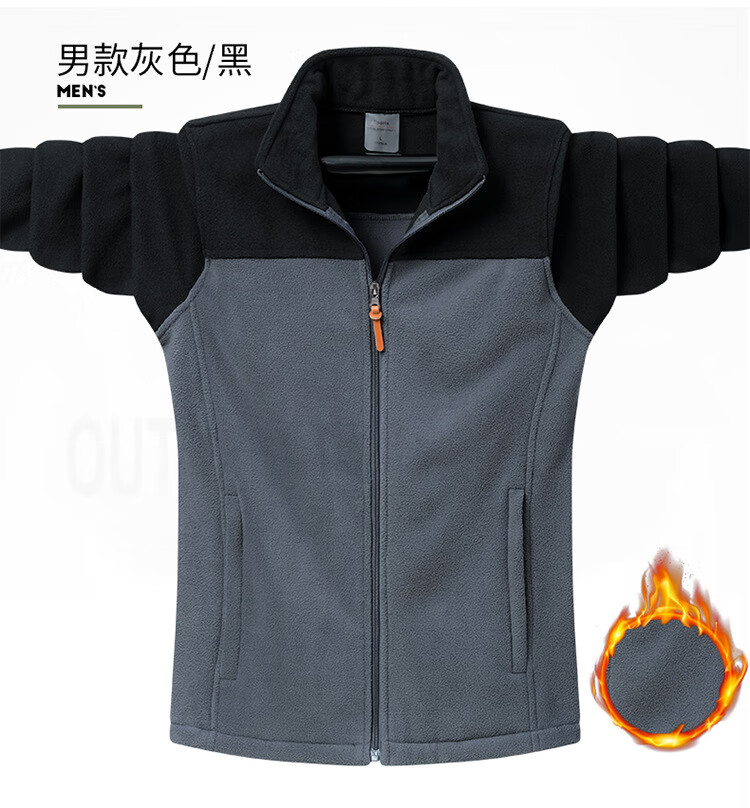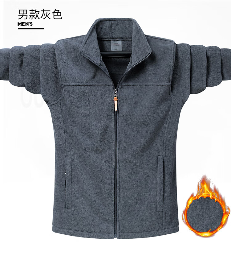 德尔.默克(Delmerk)户外大码抓绒衣男女防寒保暖透气冲锋衣内胆加厚摇粒绒外套 男款-灰色 XXL
