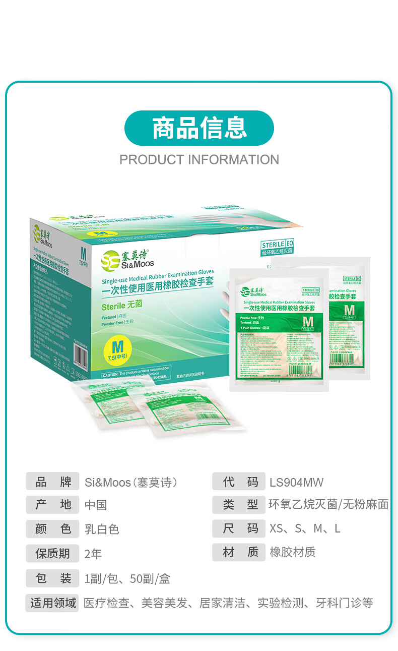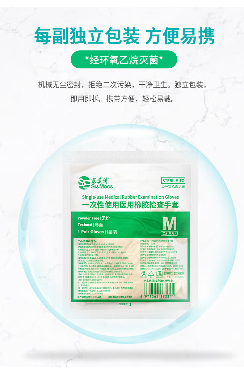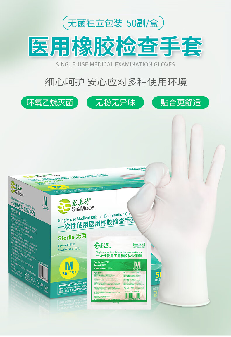 塞莫诗一次性手套医用橡胶检查手套无菌独立包装无粉麻面医疗检查实验室 无菌独立装20副BLS902 L大号
