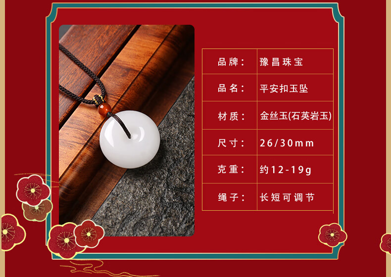 豫昌新疆金丝玉羊脂级白玉平安扣吊坠女和田天然玉石挂件男玉坠情侣款 品牌礼盒+手提袋+鉴定证书+赠品 中款/约25mm适合女士及青少年戴
