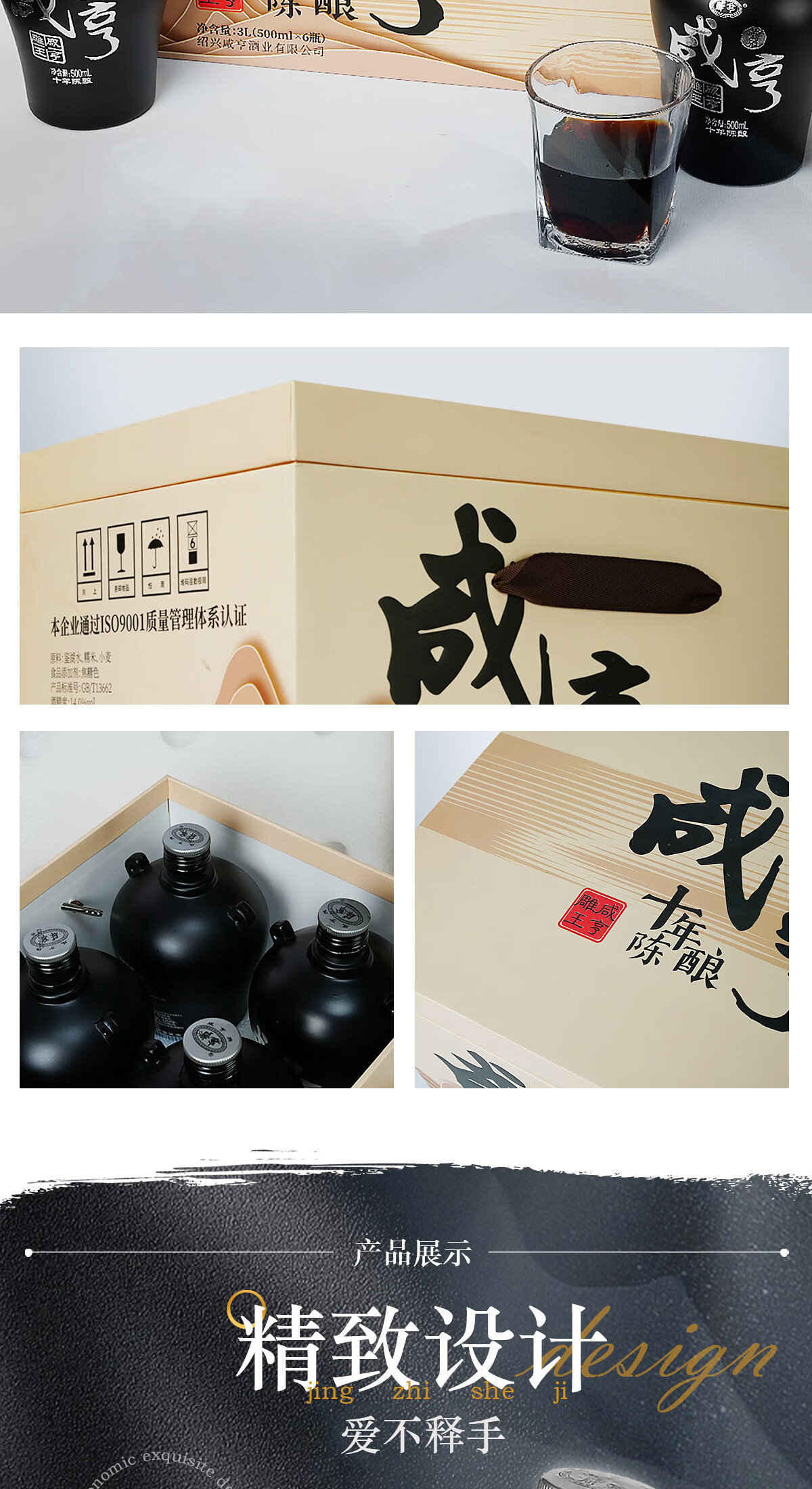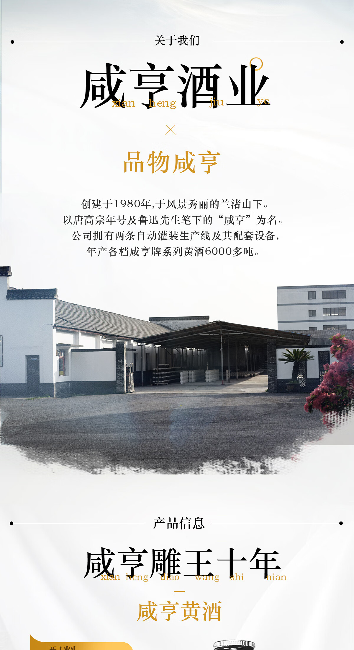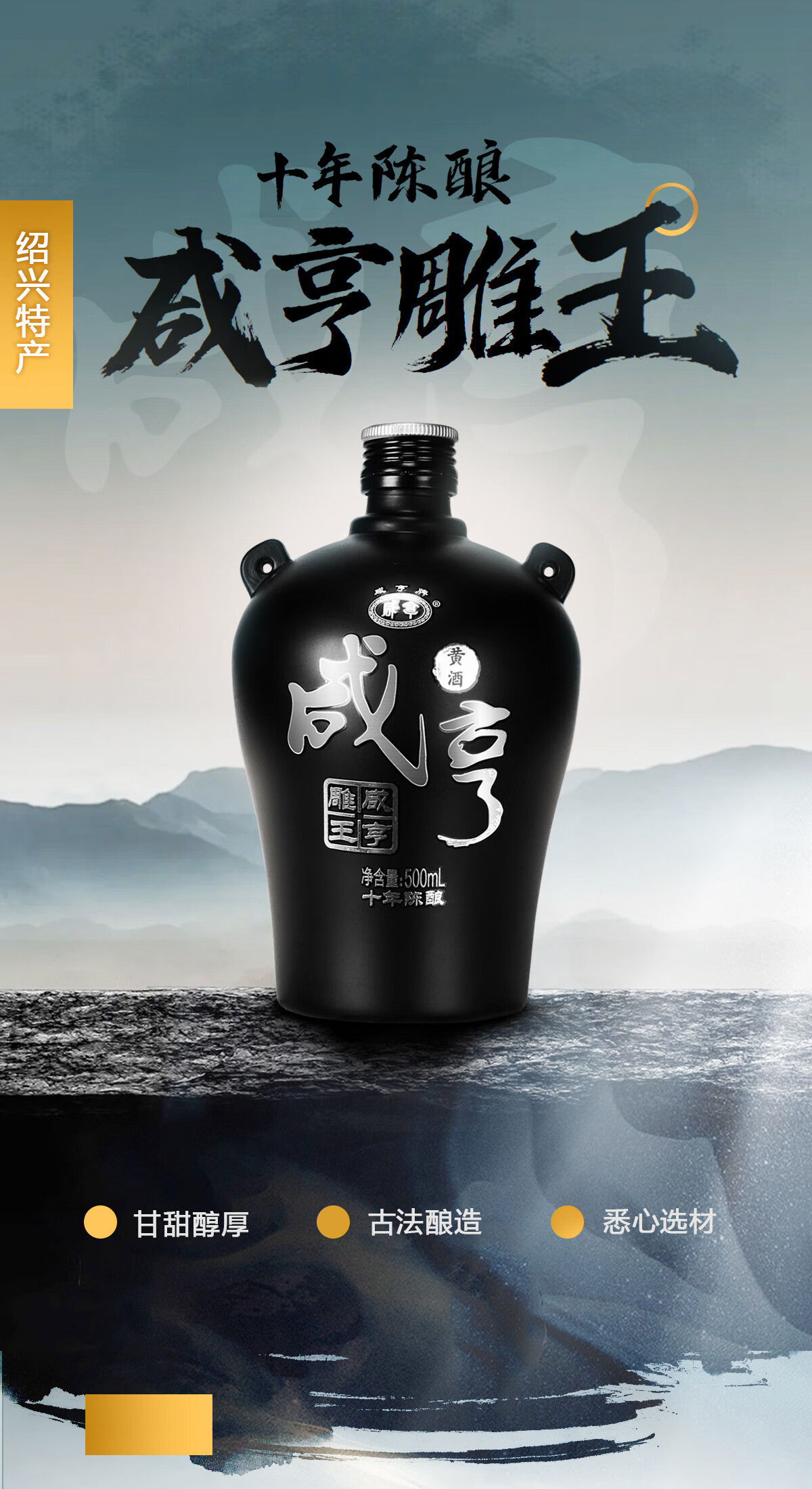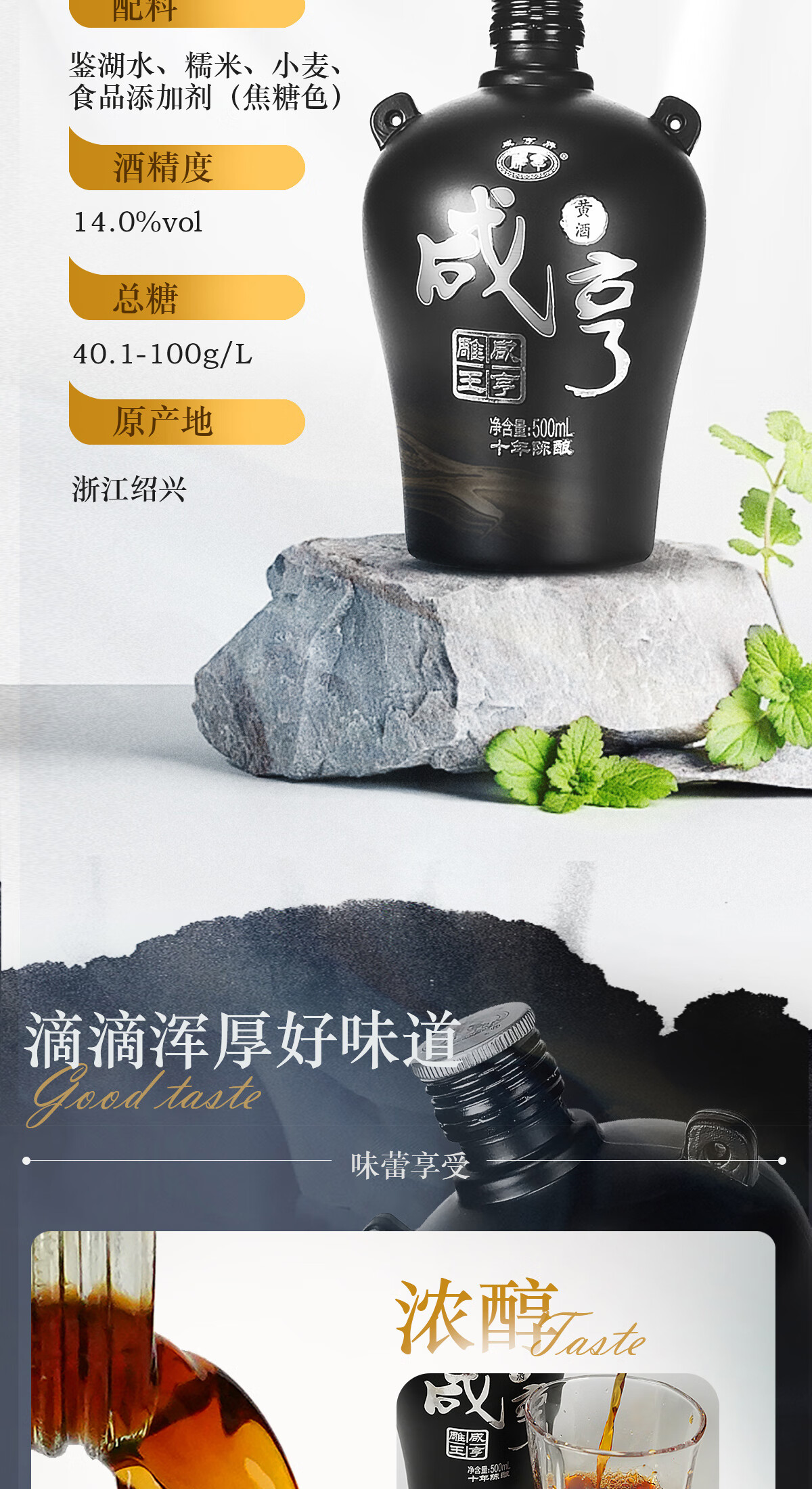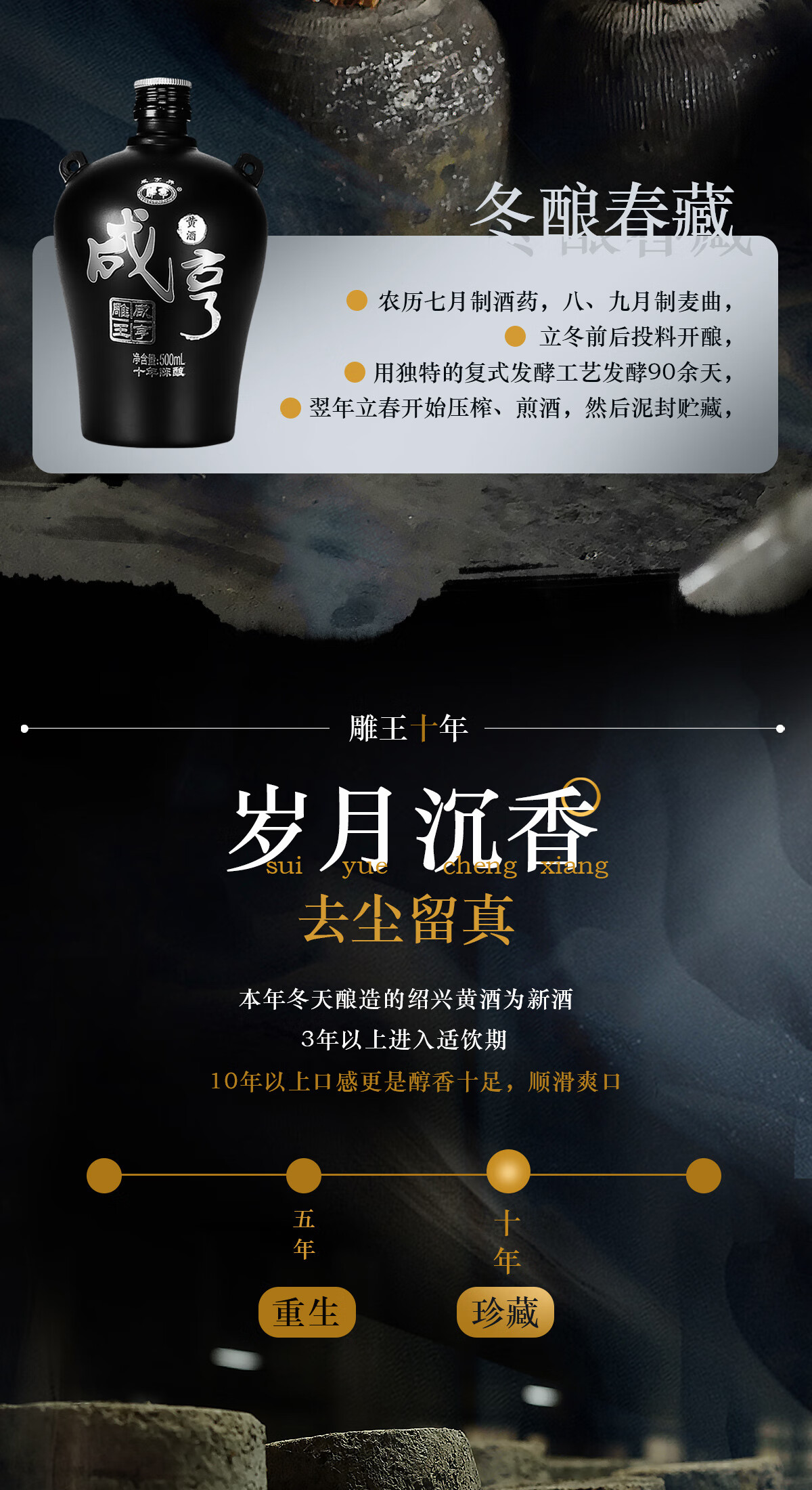 咸亨牌雕王十年陈酿绍兴特产黄酒花雕酒黄酒糯米酒送长辈送女士美酒佳酿 雕王十年陈 500mL 6瓶 礼盒装