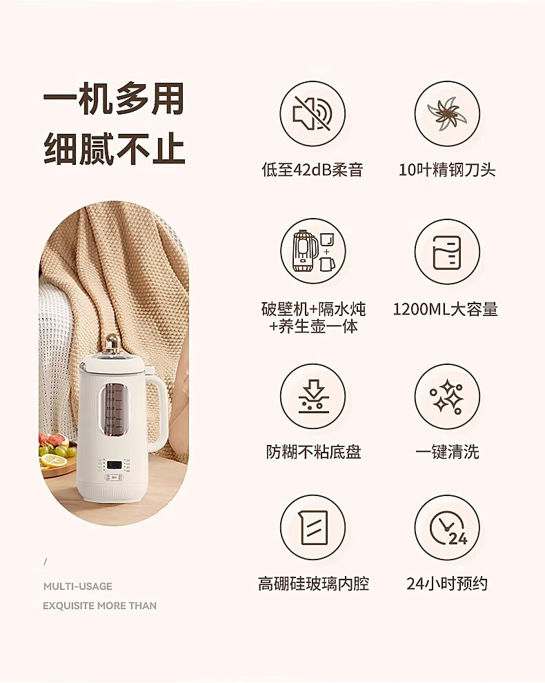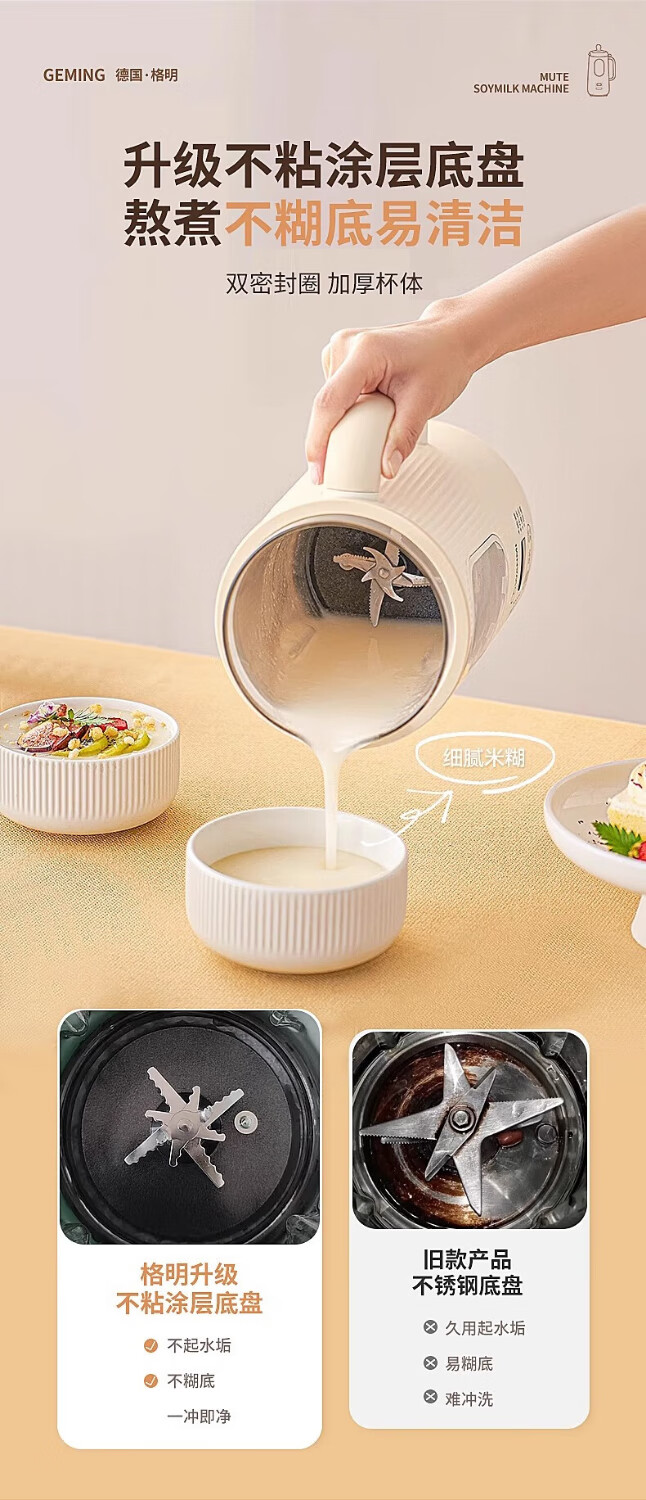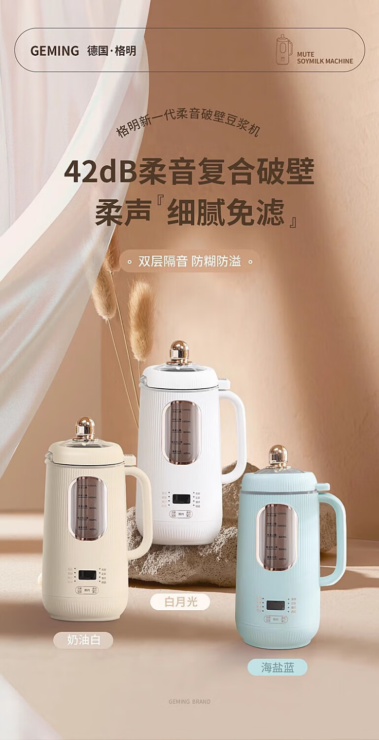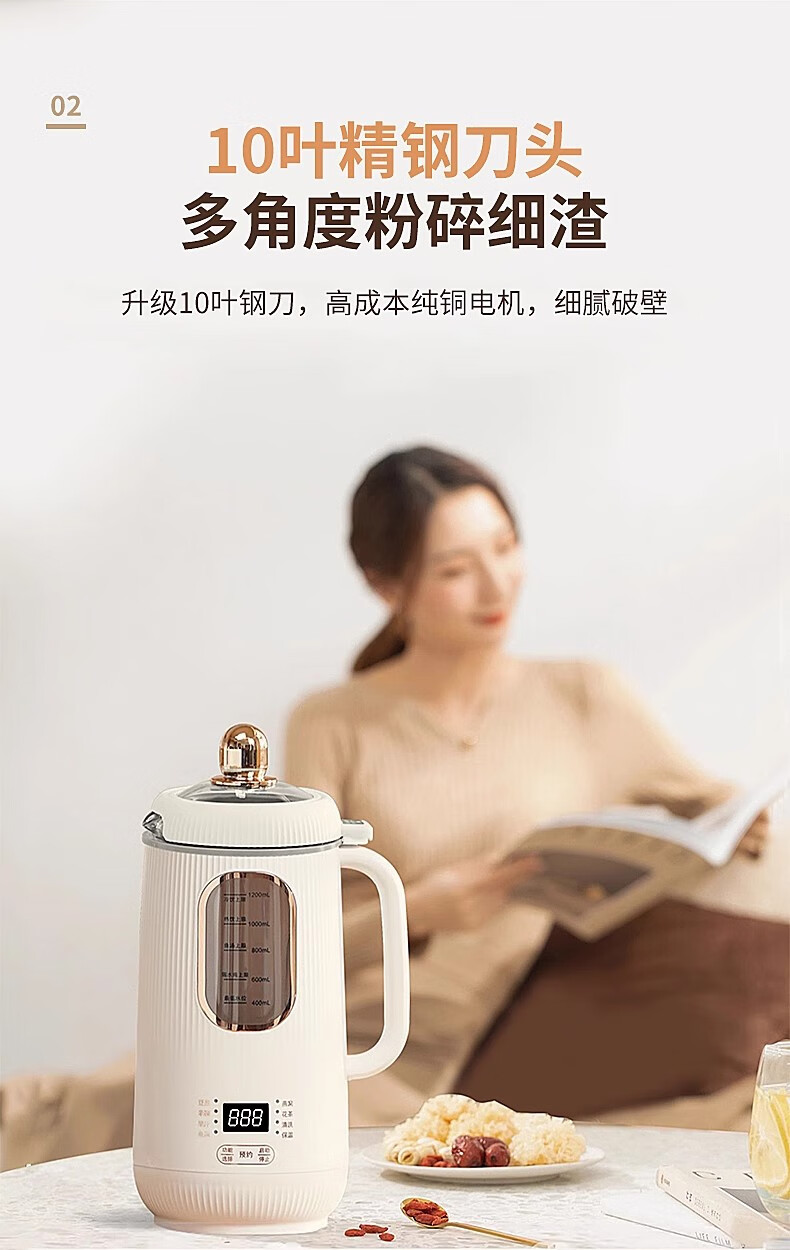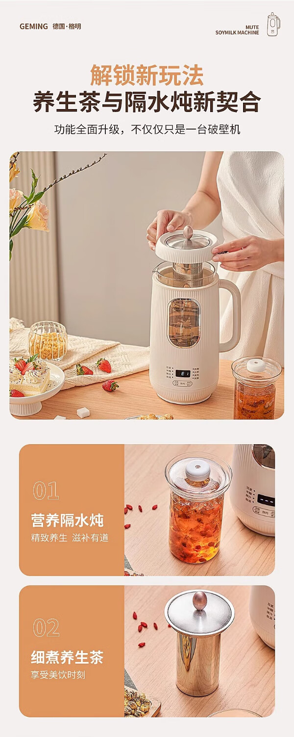 格明家用破壁豆浆机迷你小型多功能 清新绿1200ml+炖盅茶滤【店长推荐】