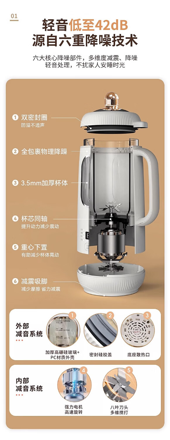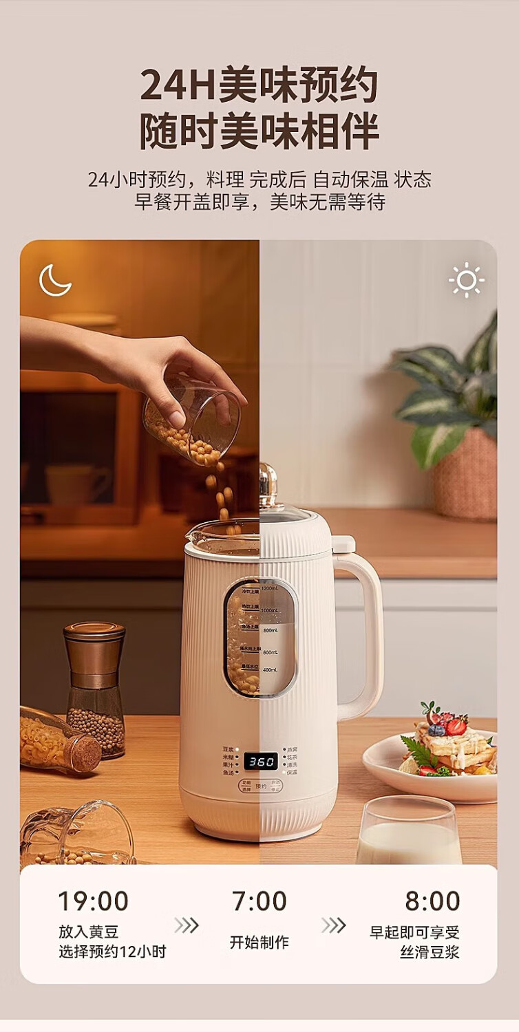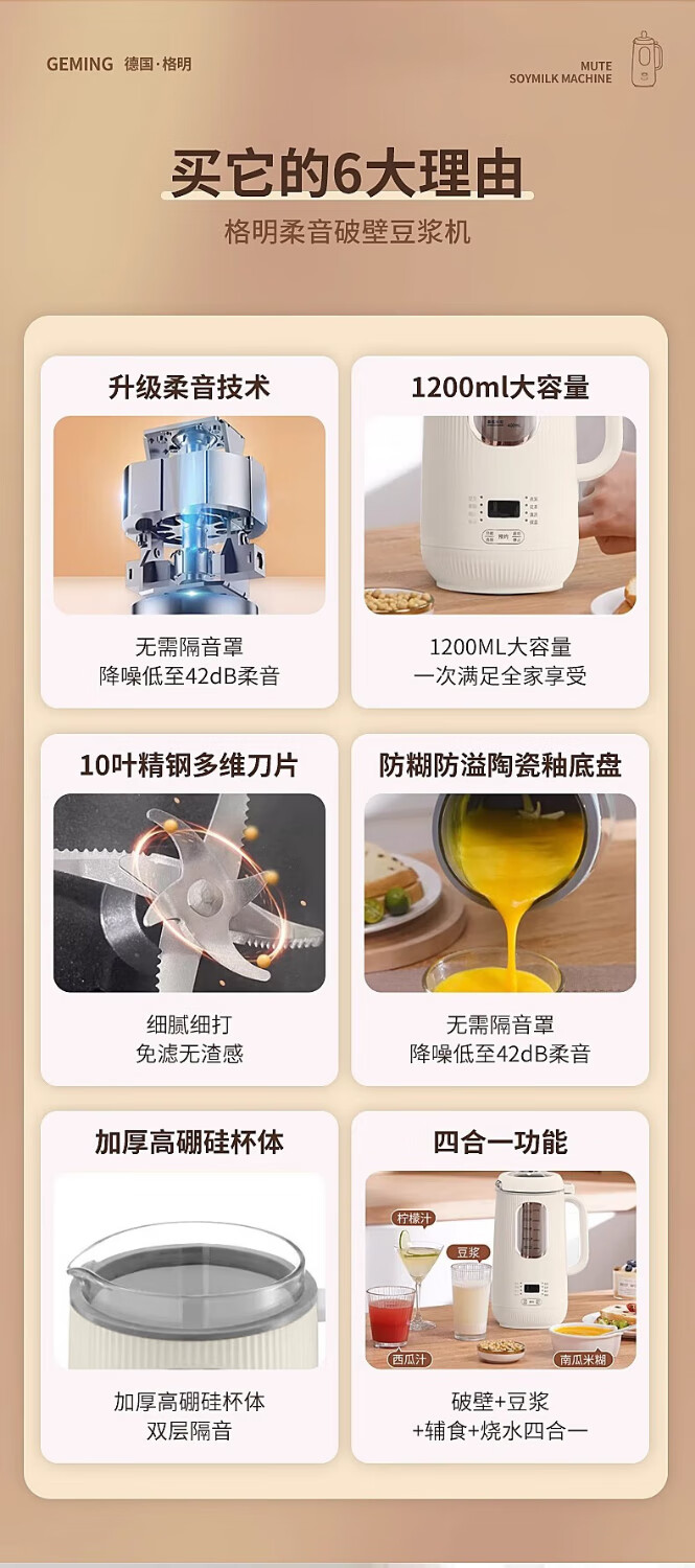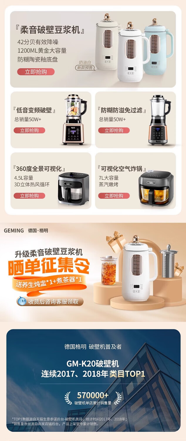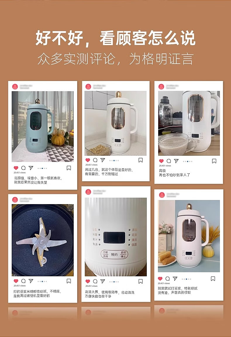 格明家用破壁豆浆机迷你小型多功能 清新绿1200ml+炖盅茶滤【店长推荐】