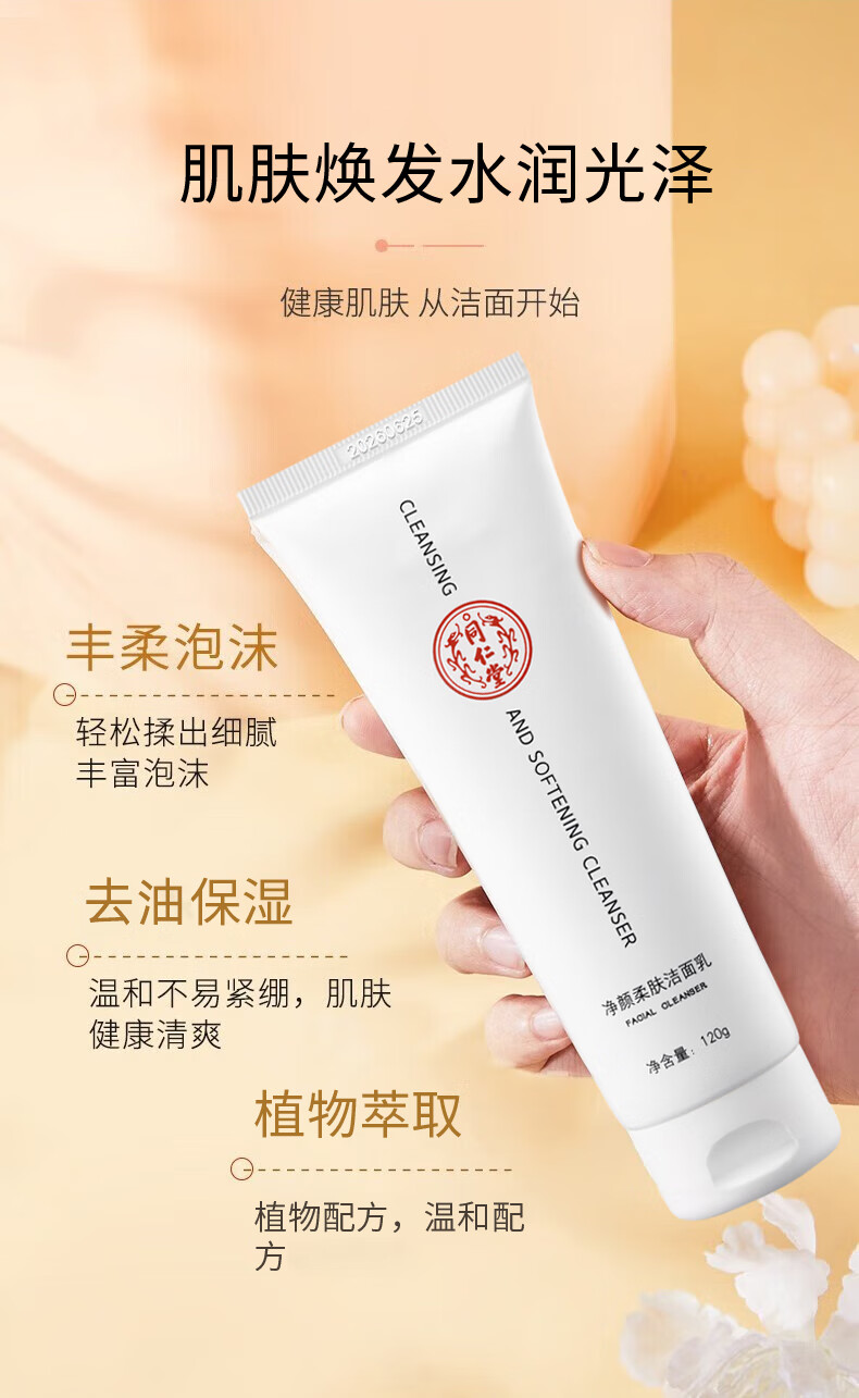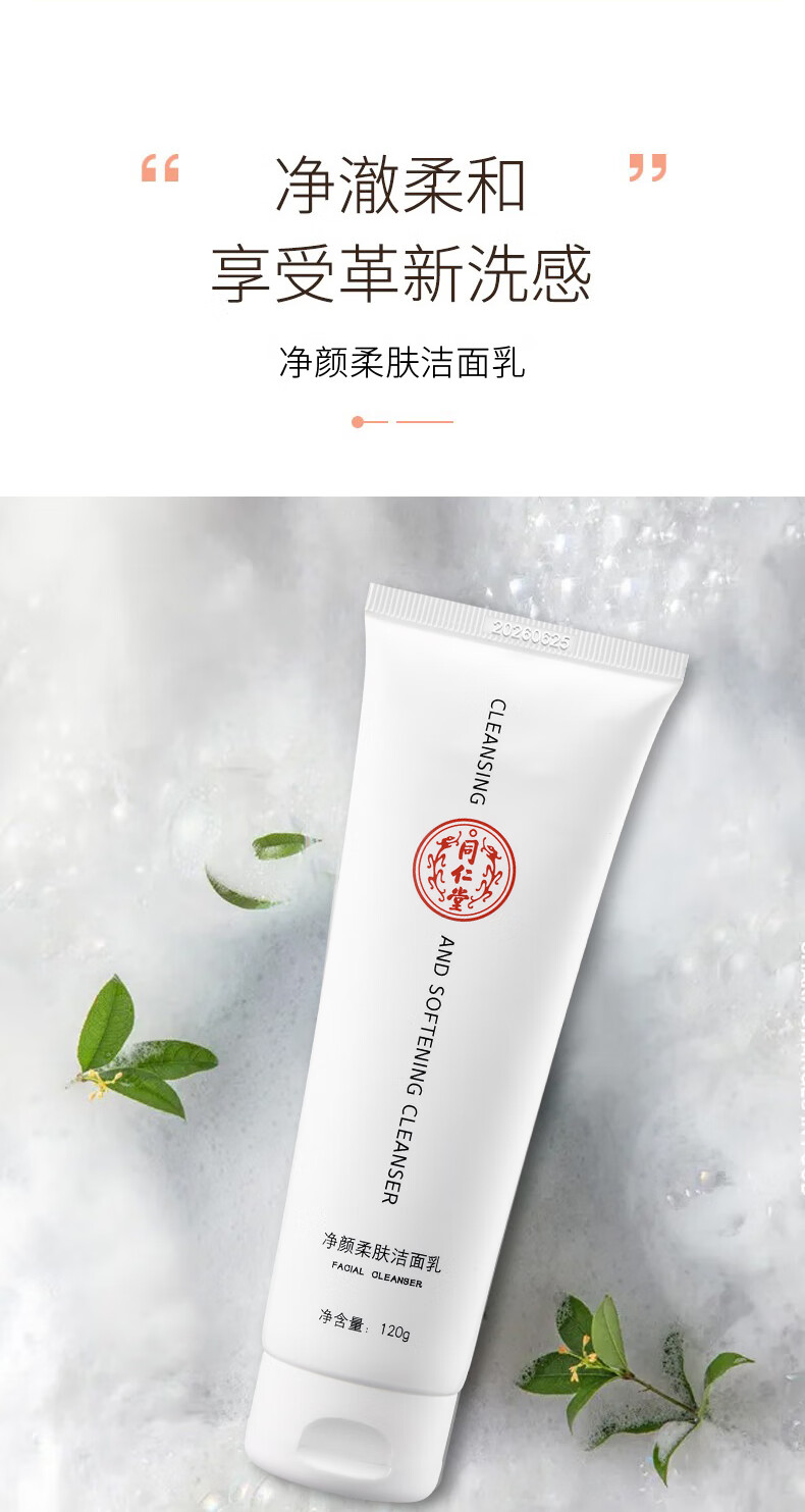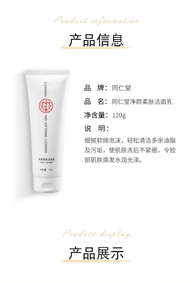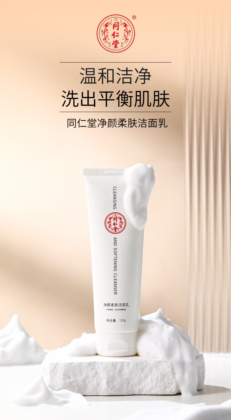 同仁堂(TRT)氨基酸洗面奶深层清洁毛孔温和保湿净颜初高中生男女士净颜洁面乳 120g*2支装