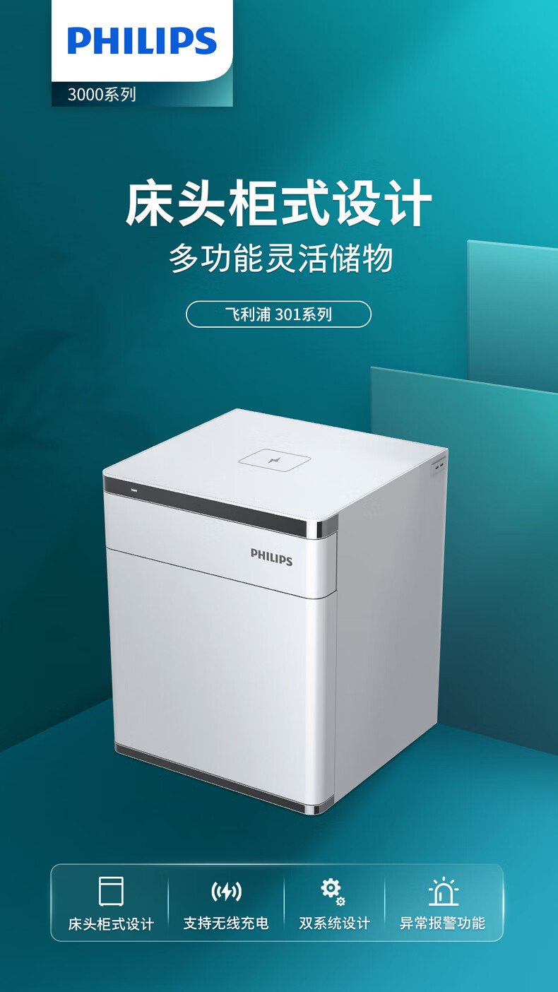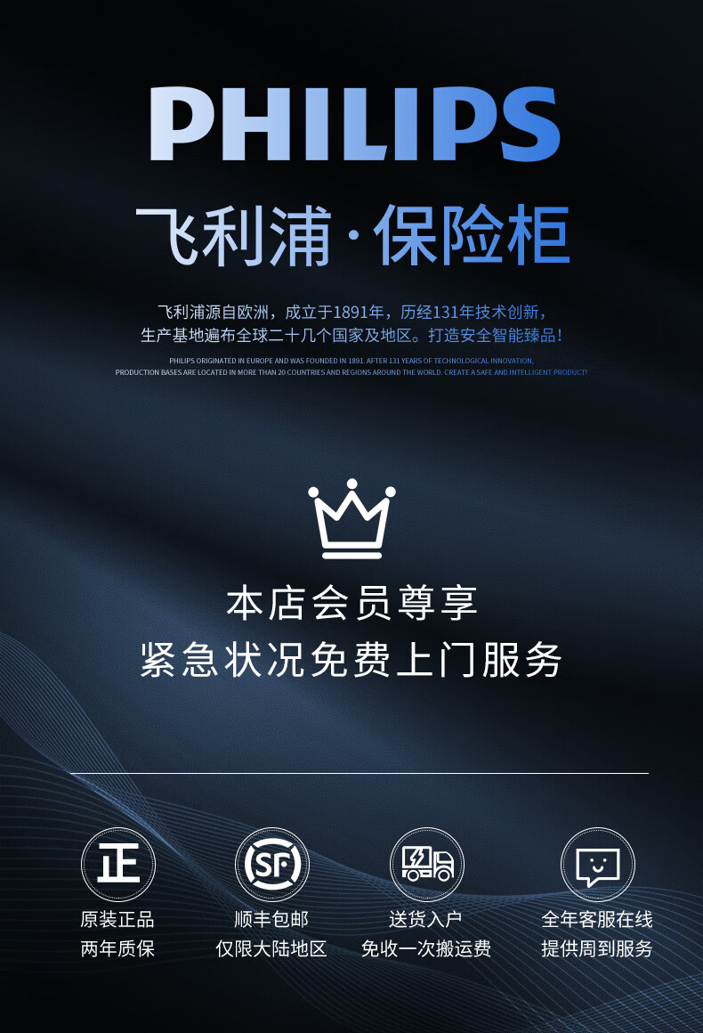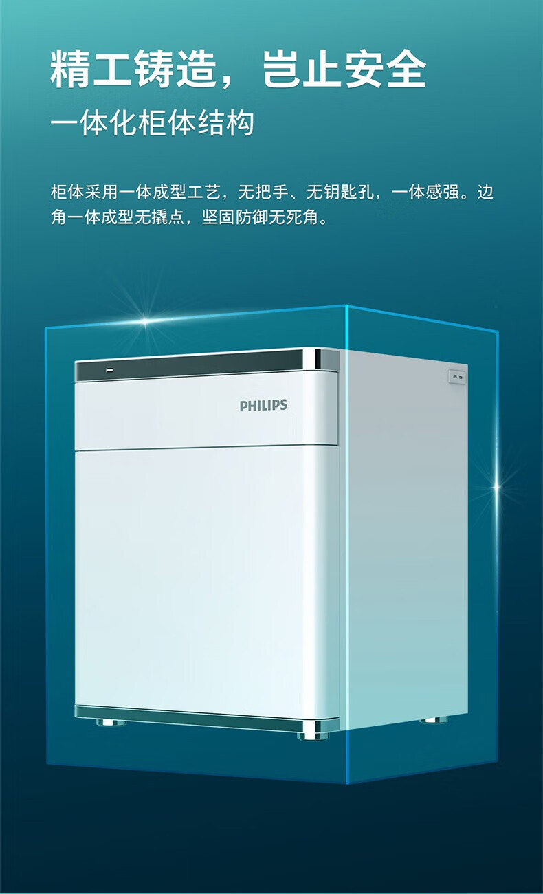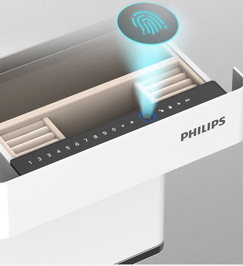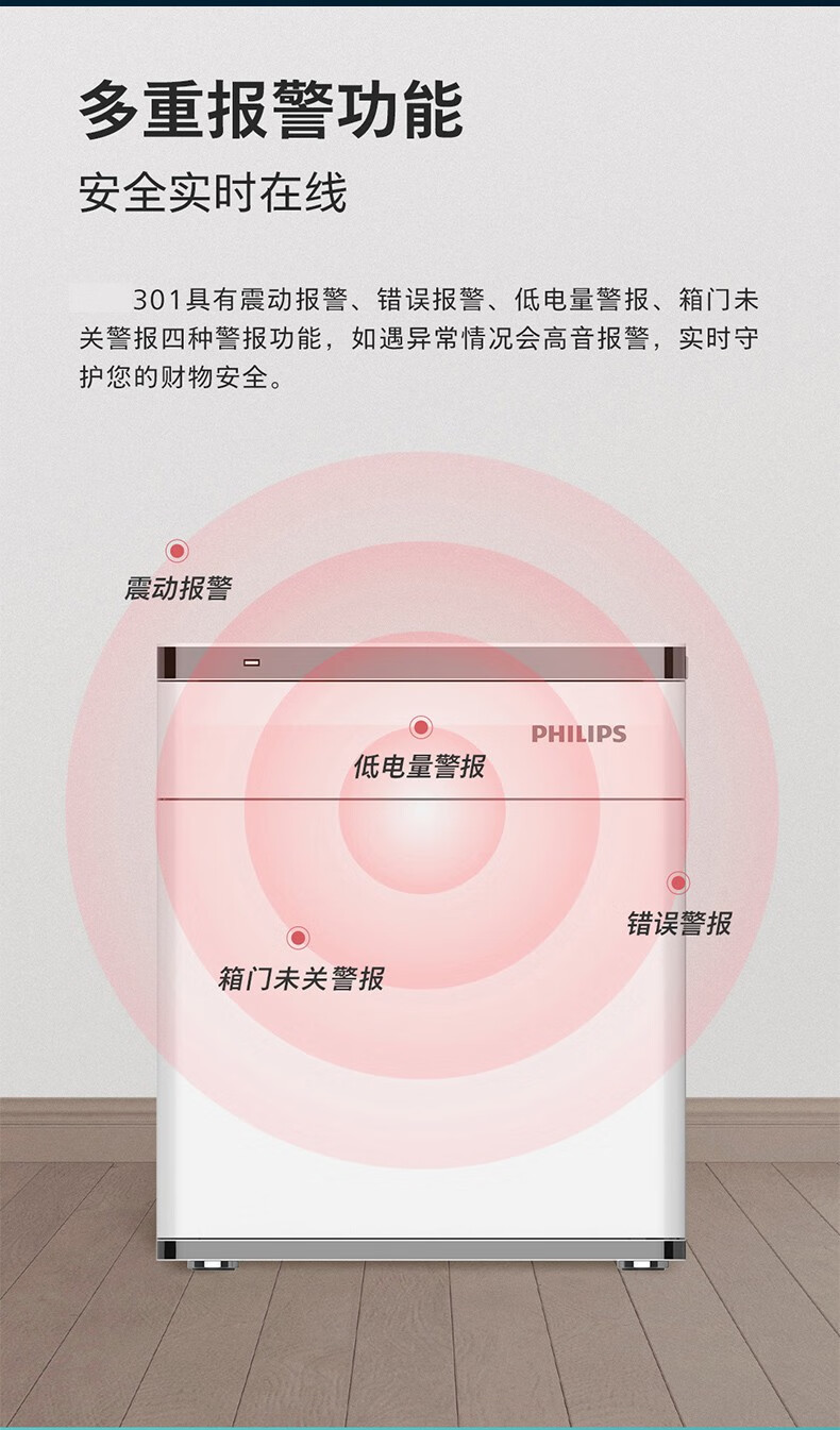 飞利浦保险柜50cm高 可无线充电 指纹保险箱电子密码保管箱家用小型床头入衣柜式保管箱智能保管盒 皓月白