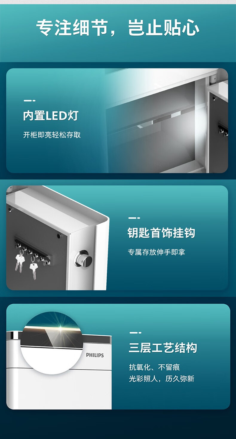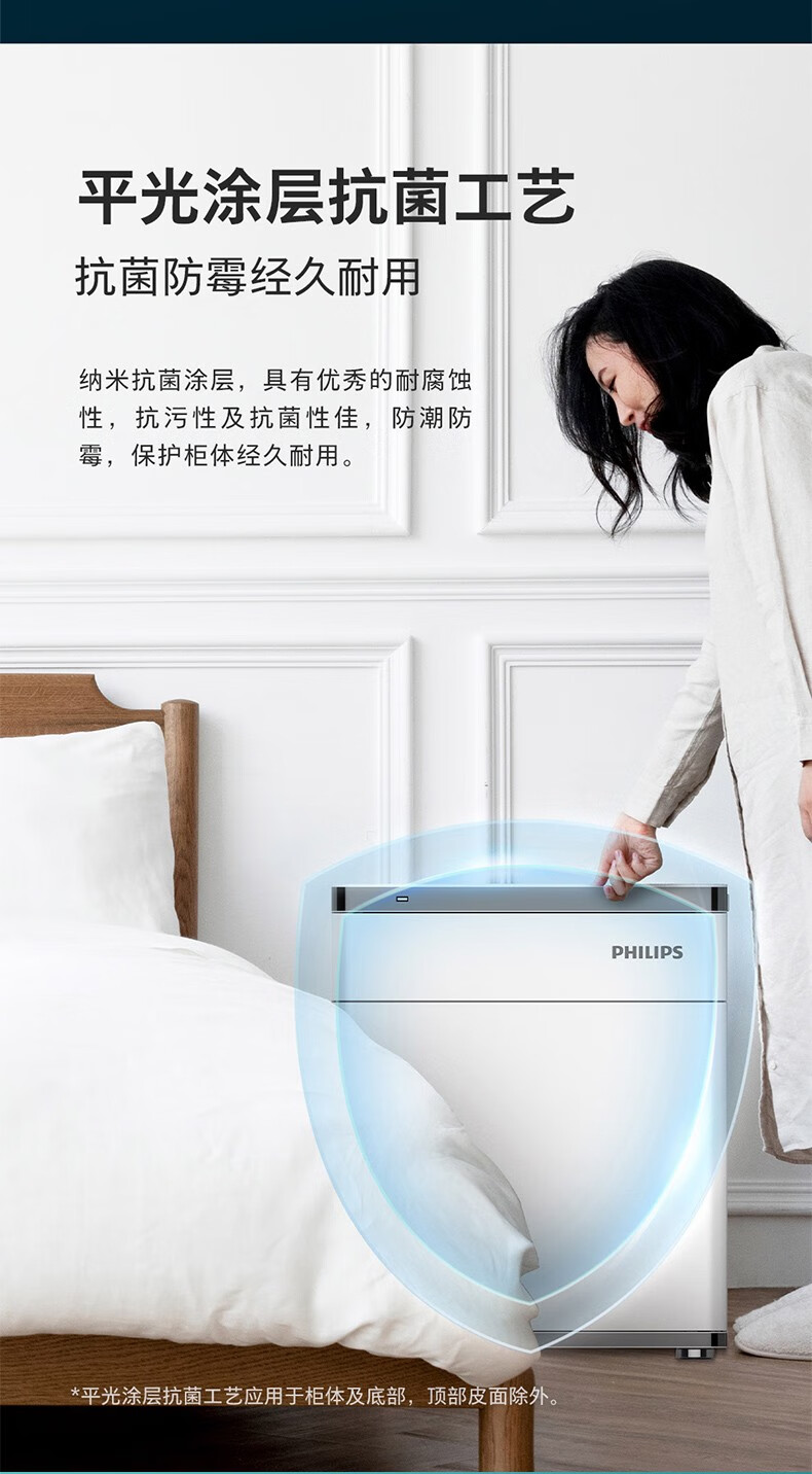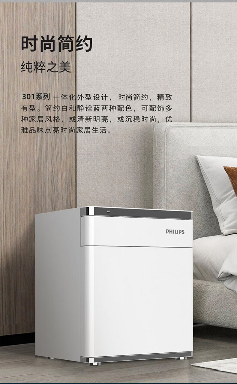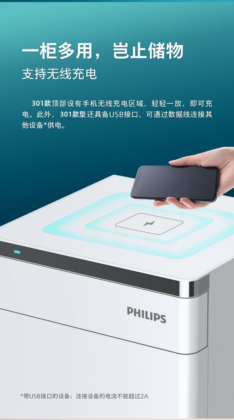 飞利浦保险柜50cm高 可无线充电 指纹保险箱电子密码保管箱家用小型床头入衣柜式保管箱智能保管盒 皓月白