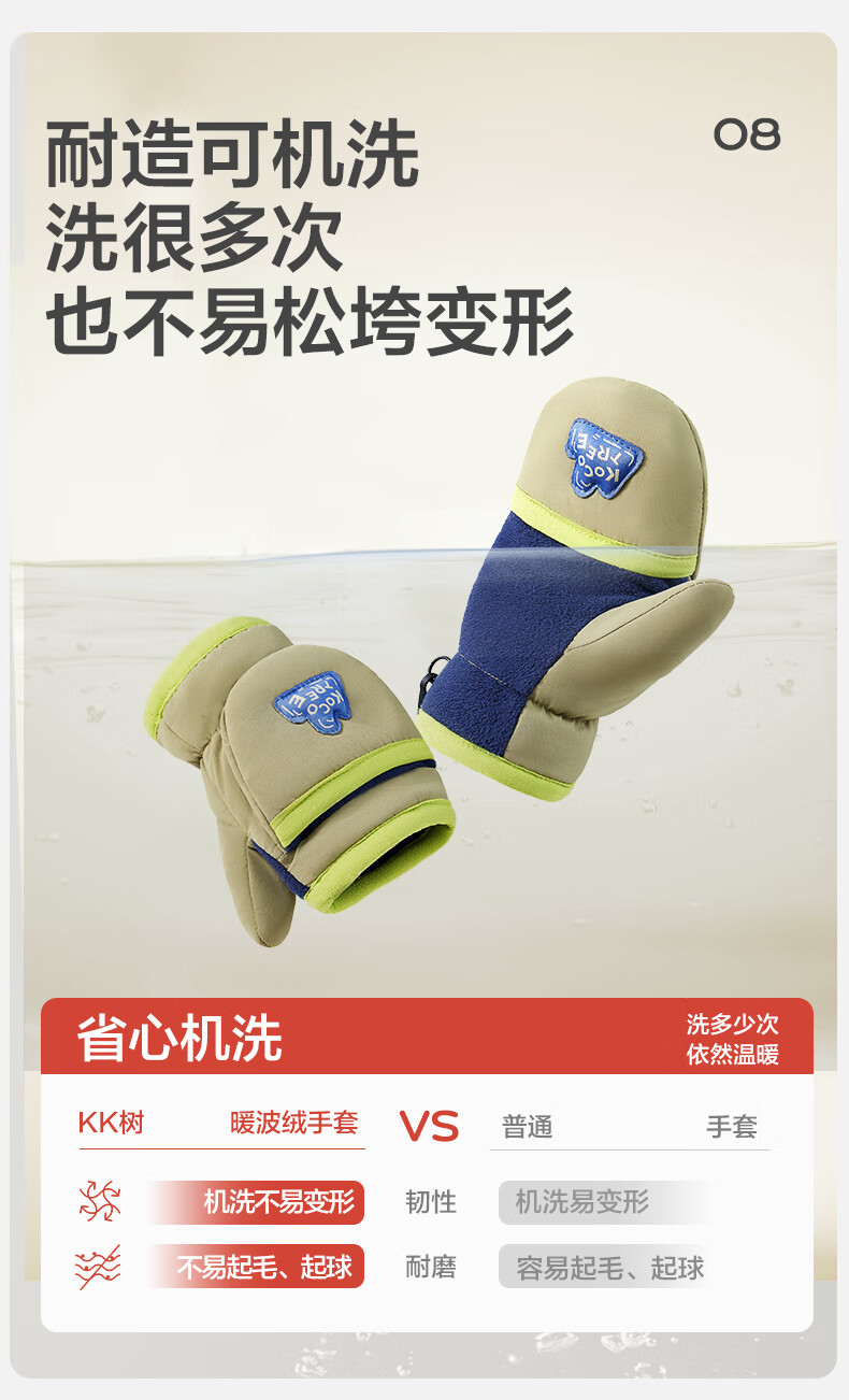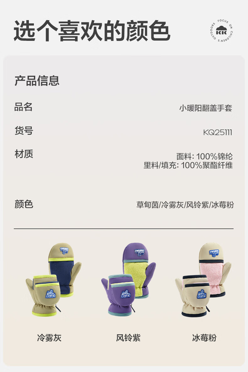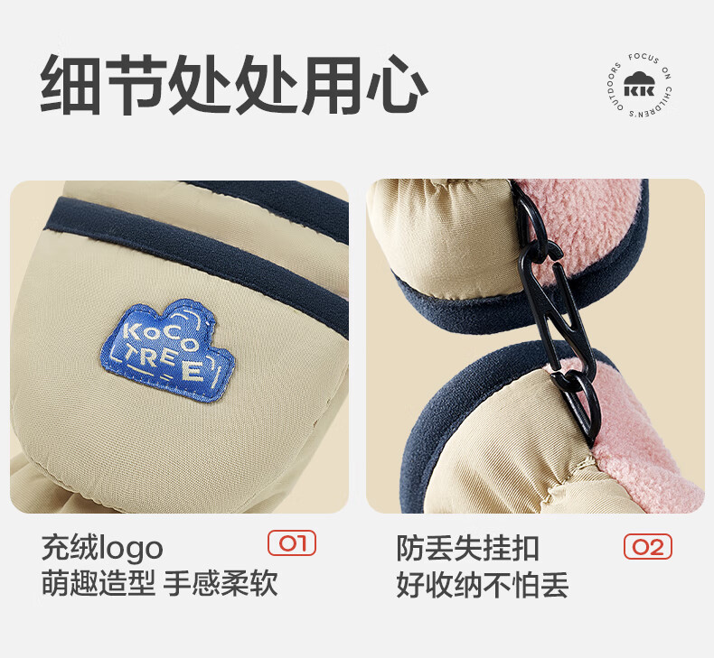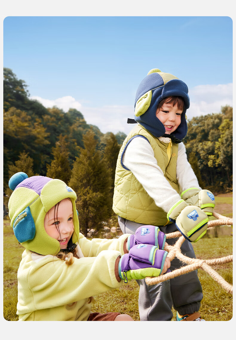 KocotreeKK树儿童手套秋冬季男童女孩宝宝翻盖全指小学生专用加厚冬天保暖 星夜蓝 均码:1-5岁