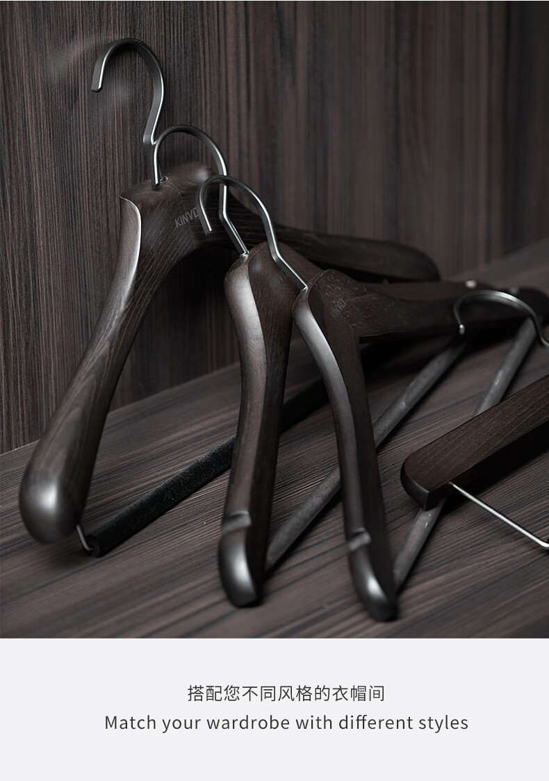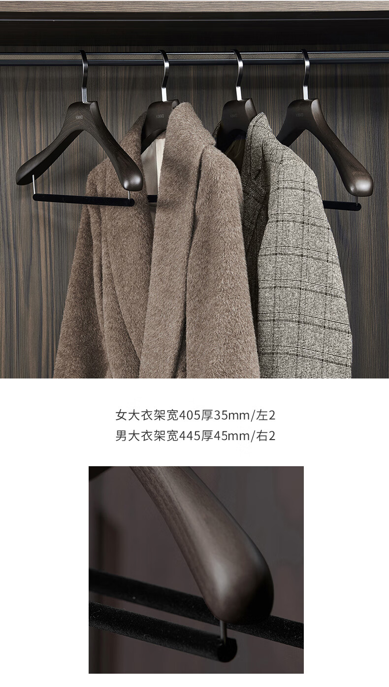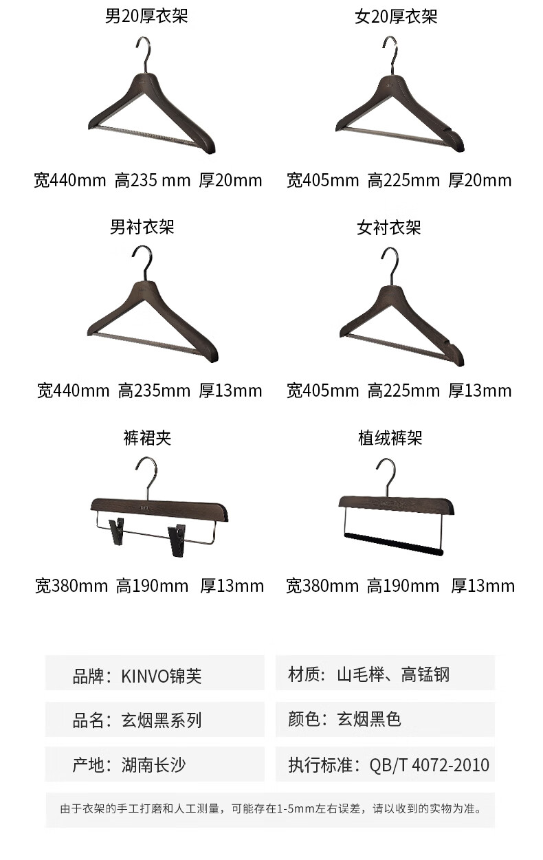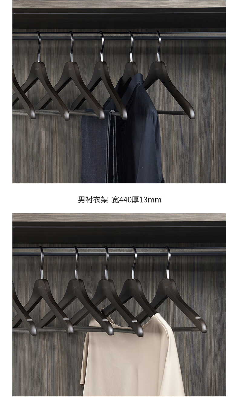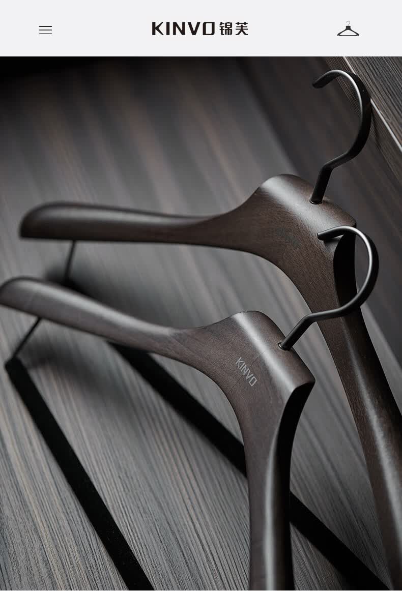 锦芙高端榉木实木衣架子大衣西服专用衣撑高档衣柜衣帽间卧室黑色衣挂 9【玄烟黑】女无痕衣架10支