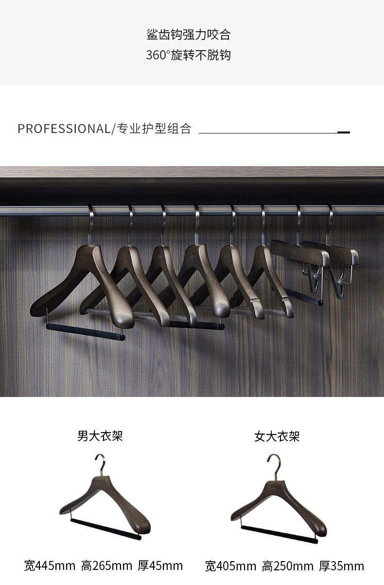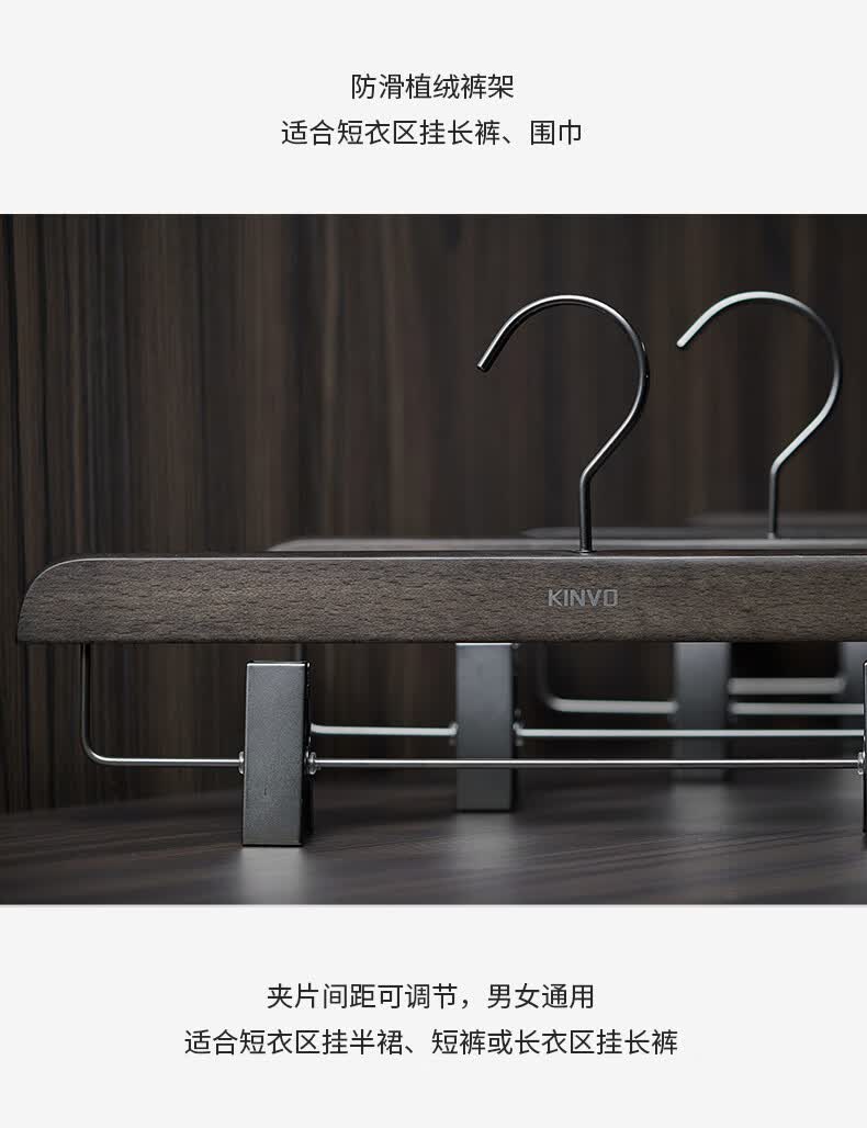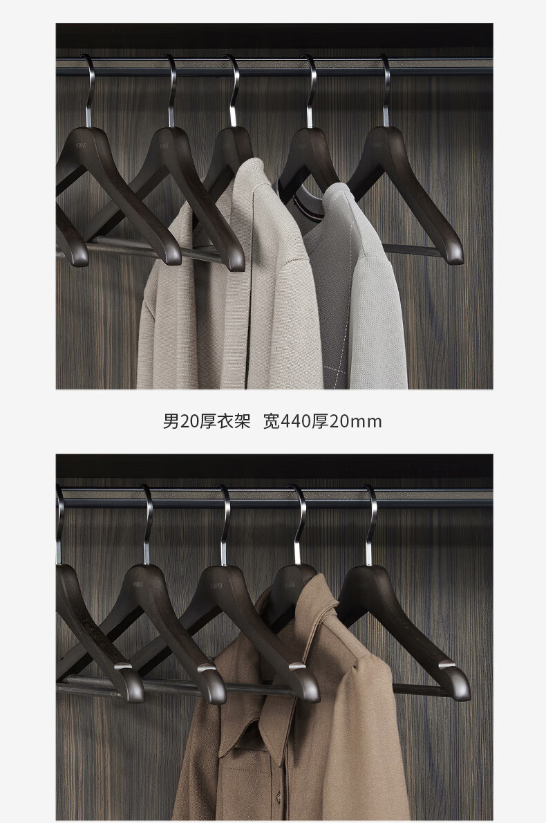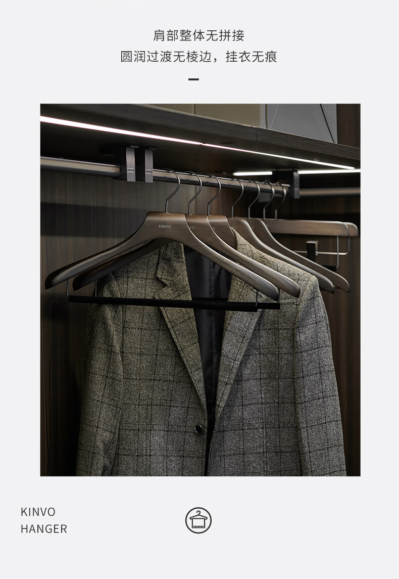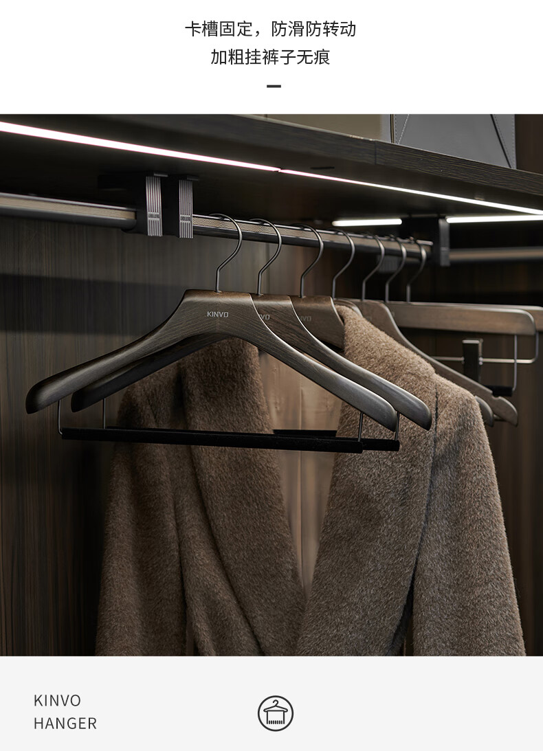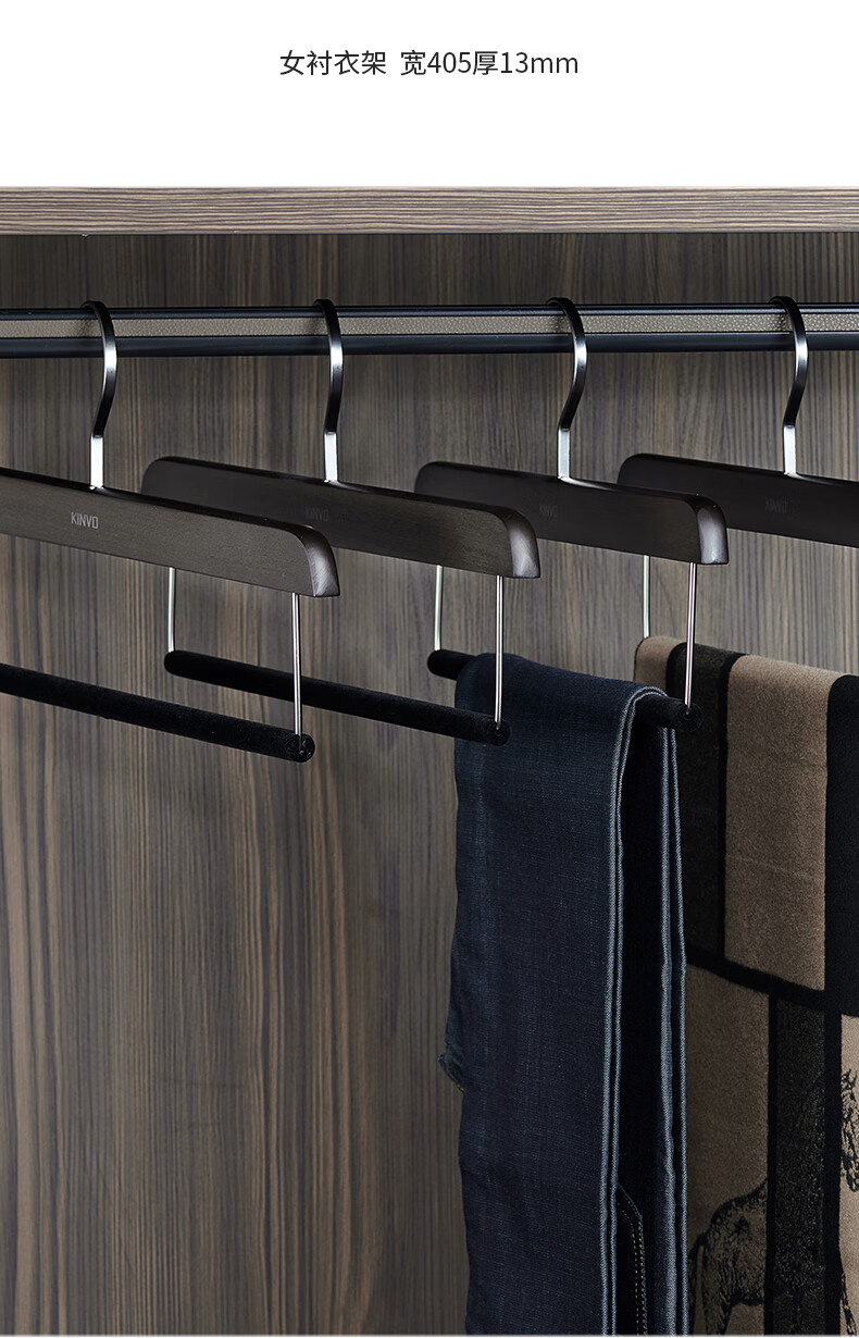 锦芙高端榉木实木衣架子大衣西服专用衣撑高档衣柜衣帽间卧室黑色衣挂 9【玄烟黑】女无痕衣架10支