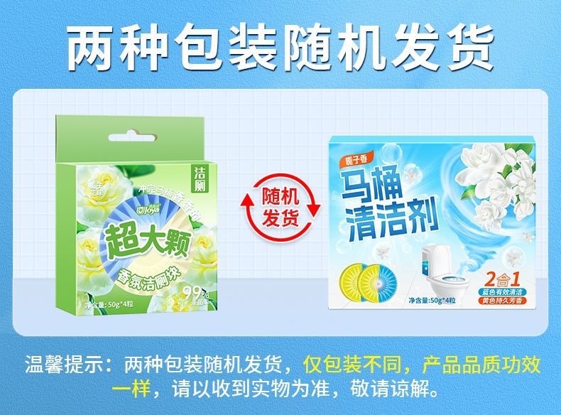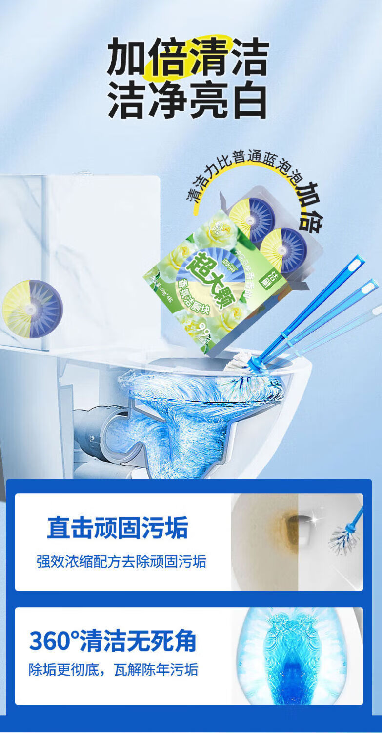 超威【严选直发】洁厕宝马桶清洁剂花香型蓝泡泡厕所祛污垢洁厕灵 栀子香 2盒【8枚】