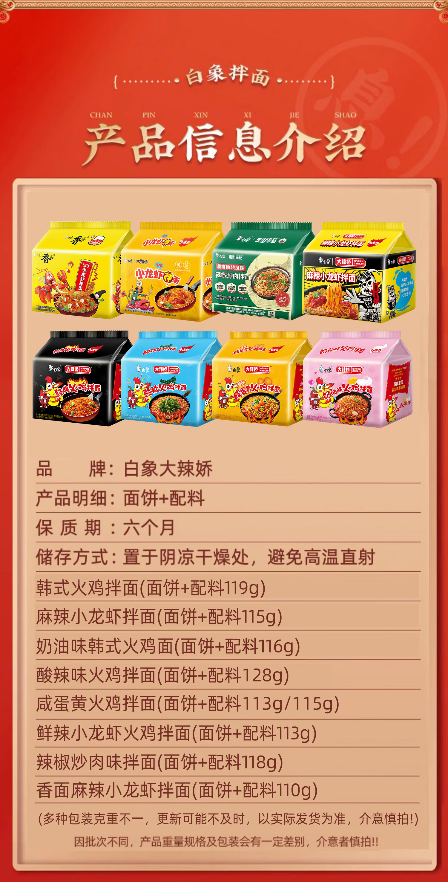 白象方便面火鸡面经典原味小龙虾味懒人速食食品寝室夜宵整箱袋装批发 【5包】经典火鸡119g