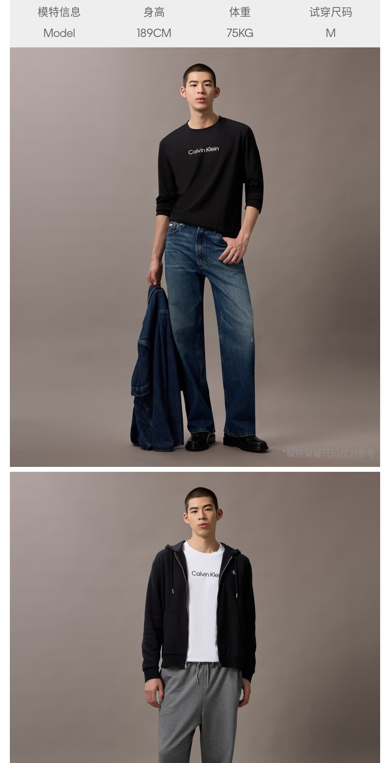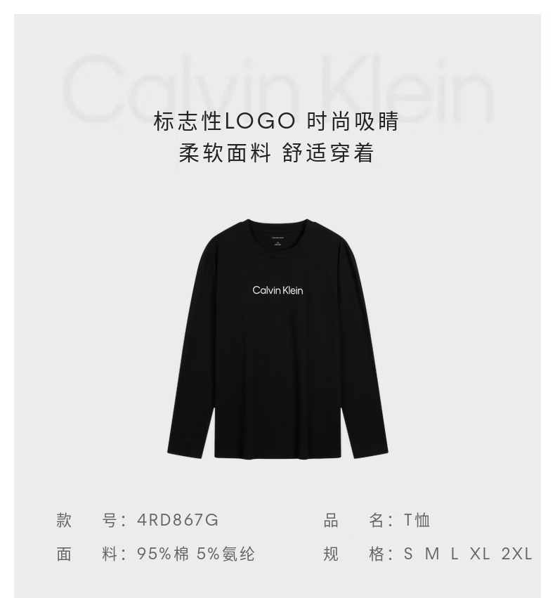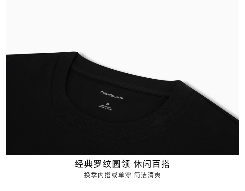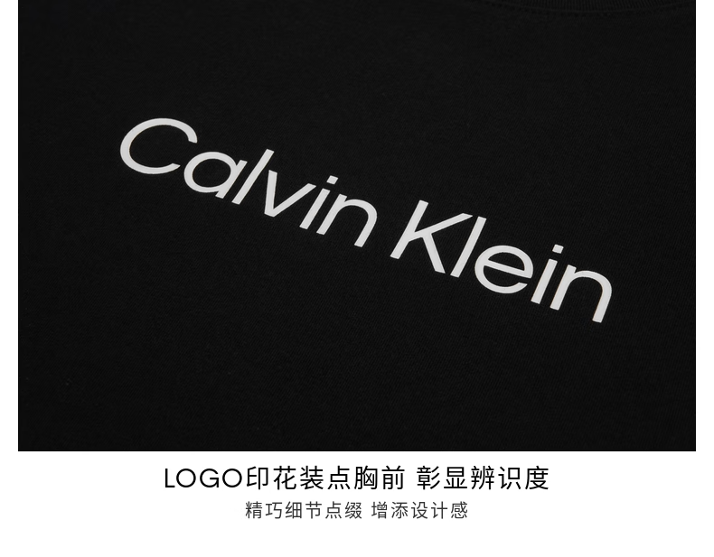 Calvin KleinJeans25秋季新款男士休闲通勤ck字母印花圆领打底衫长袖T恤上衣 UB1-太空黑 M