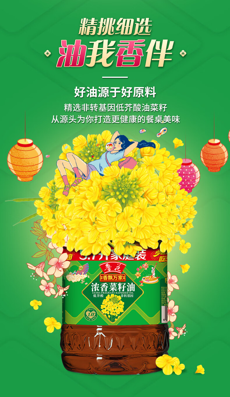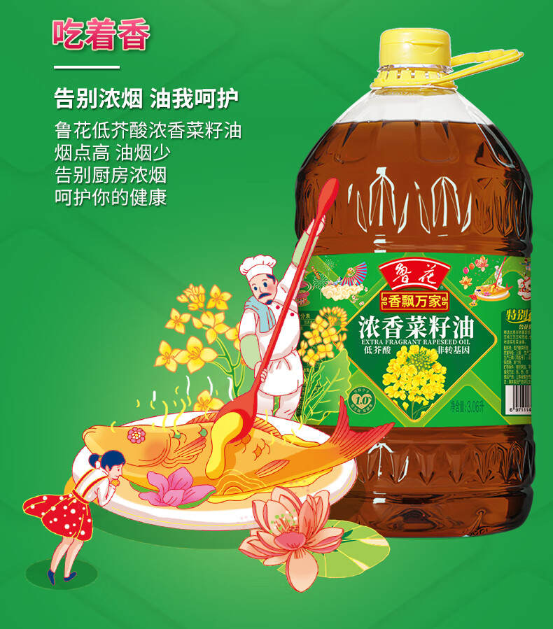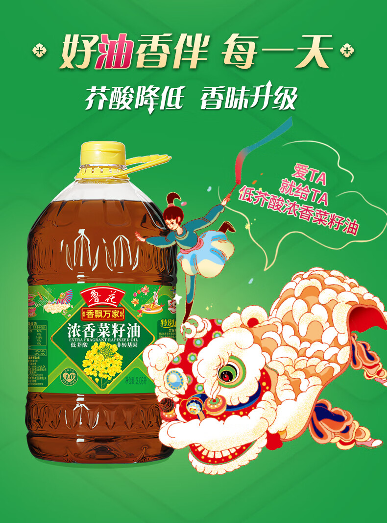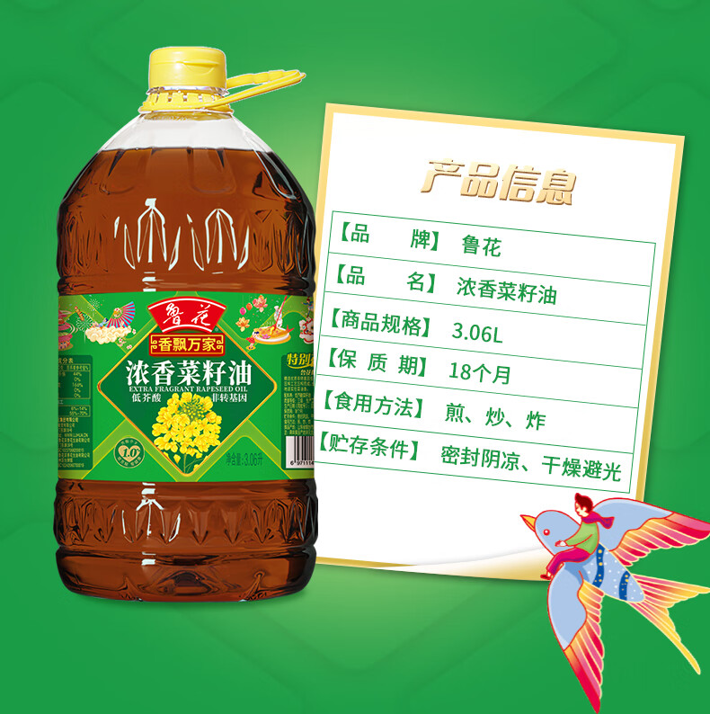 鲁花【直销】香飘万家低芥酸浓香菜籽油3.06L