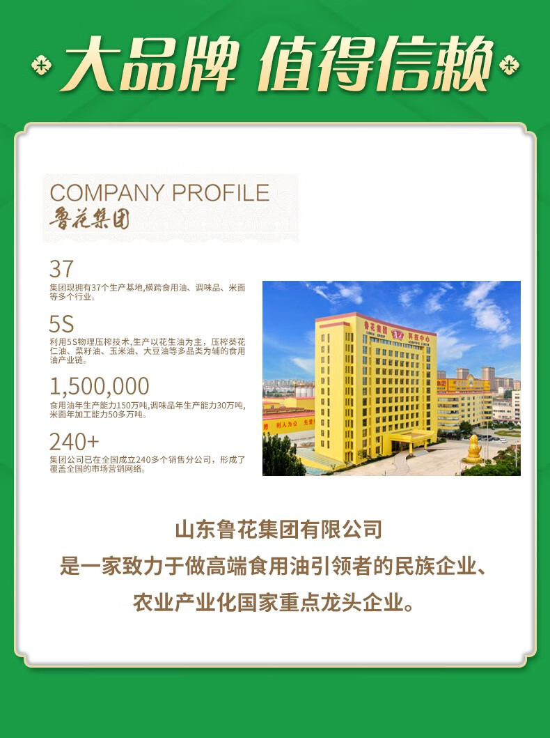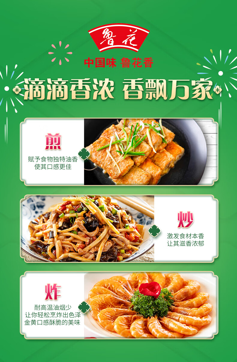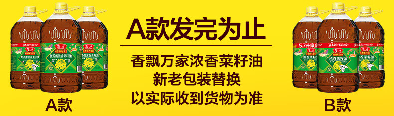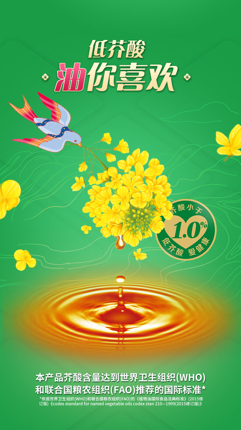 鲁花【直销】香飘万家低芥酸浓香菜籽油3.06L