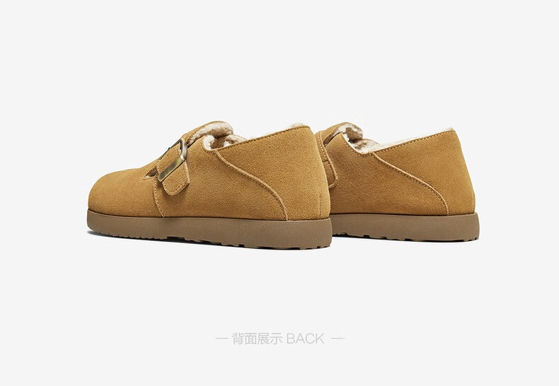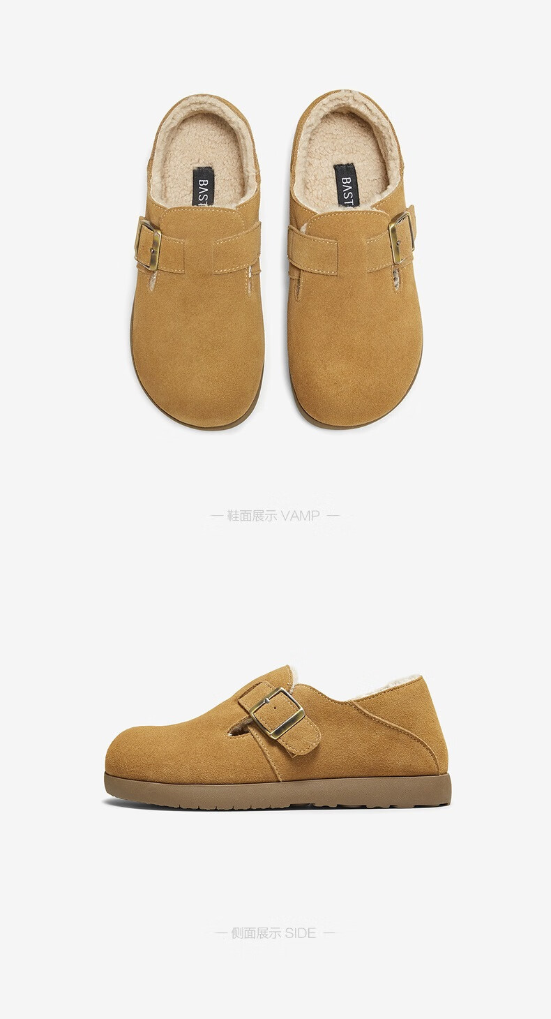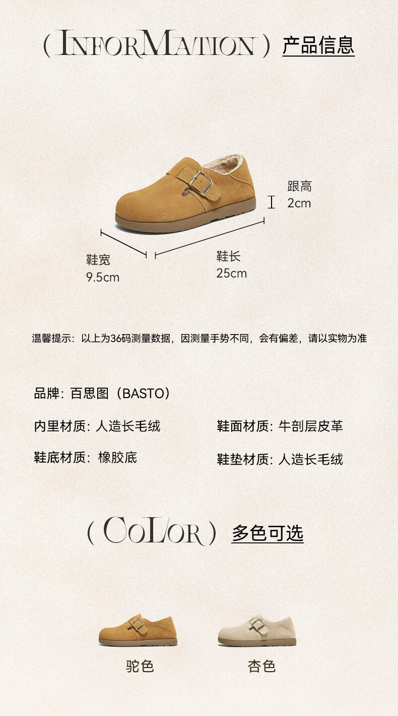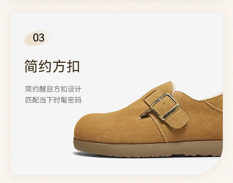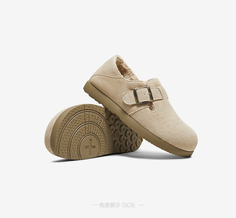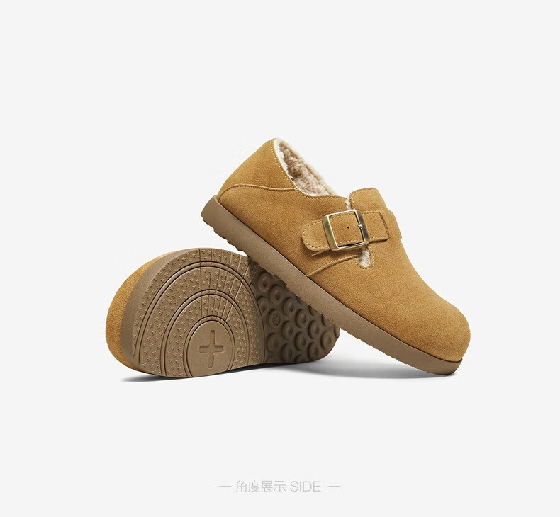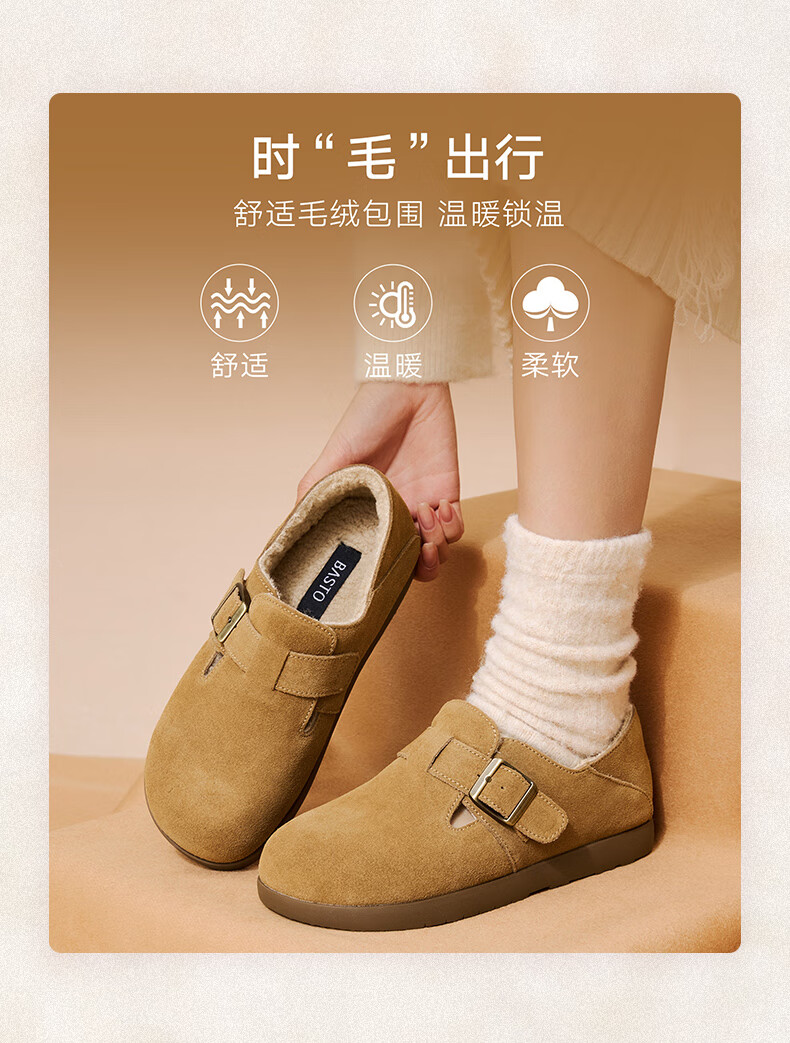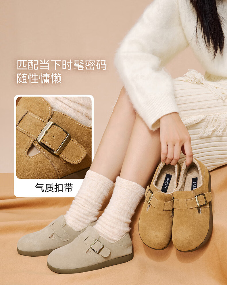 百思图2025冬季新款勃肯鞋时尚复古休闲加绒保暖女单鞋D3097DM5 驼色 37