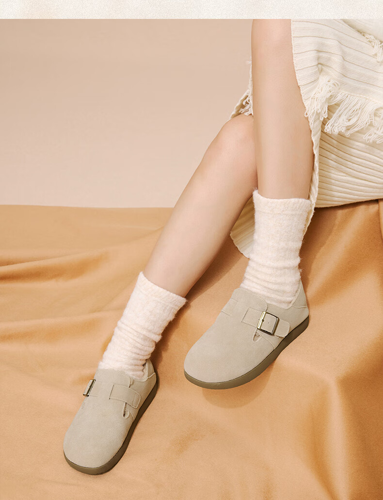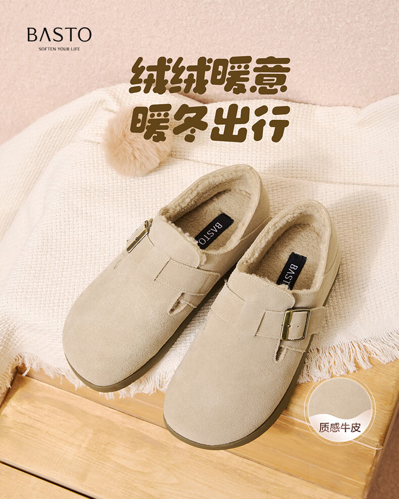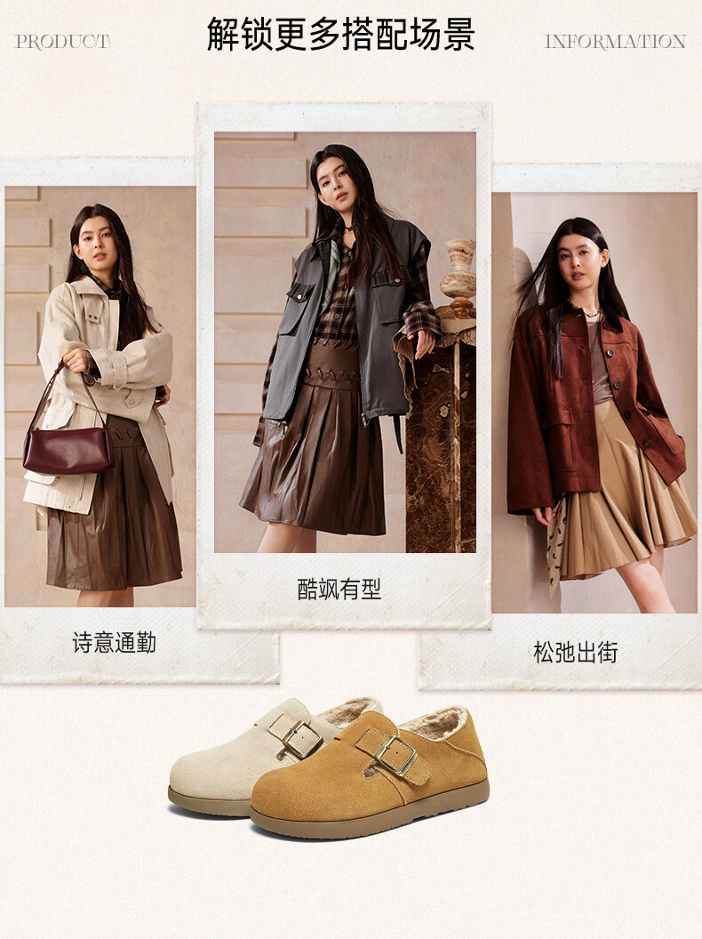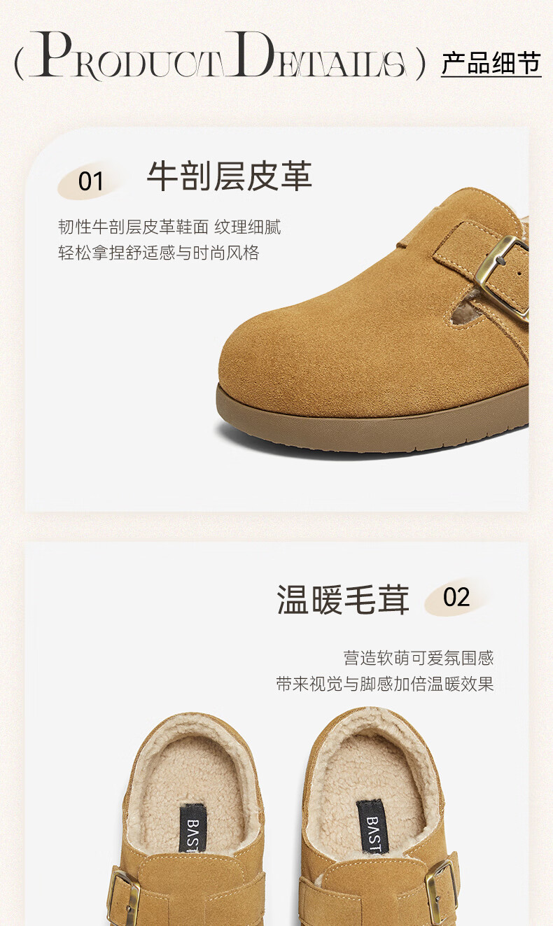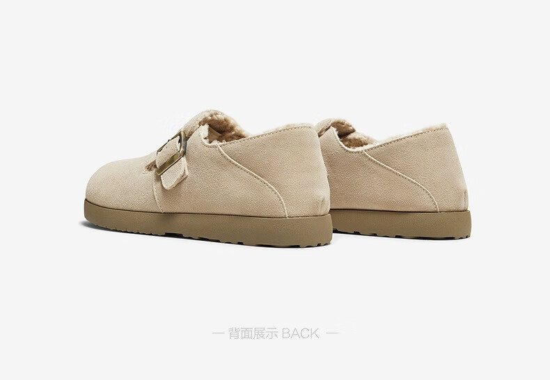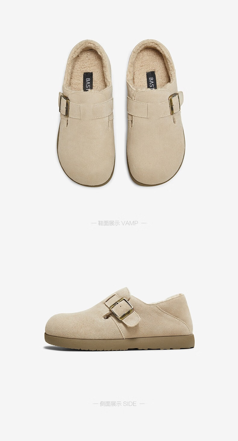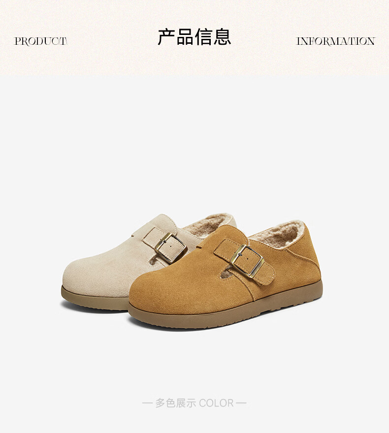 百思图2025冬季新款勃肯鞋时尚复古休闲加绒保暖女单鞋D3097DM5 驼色 37