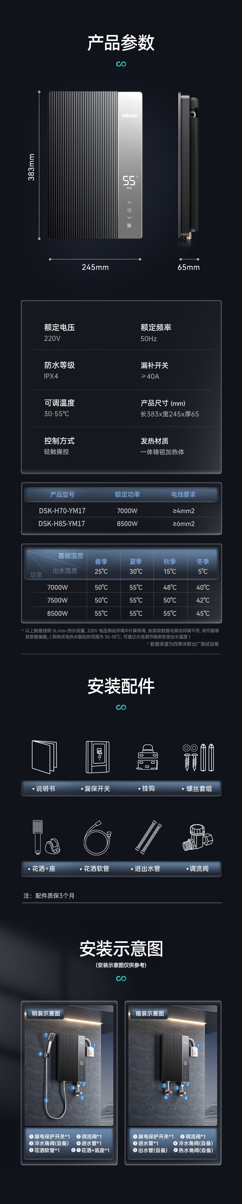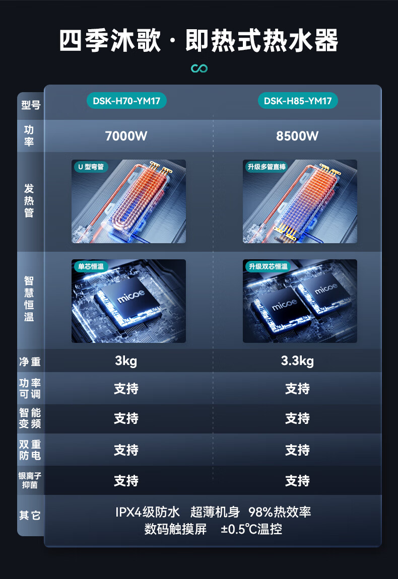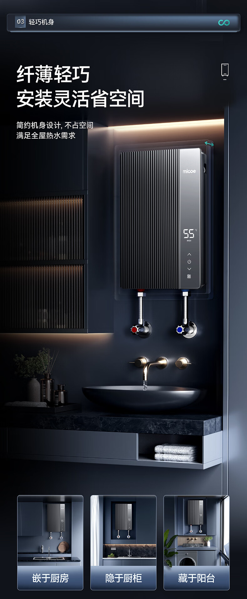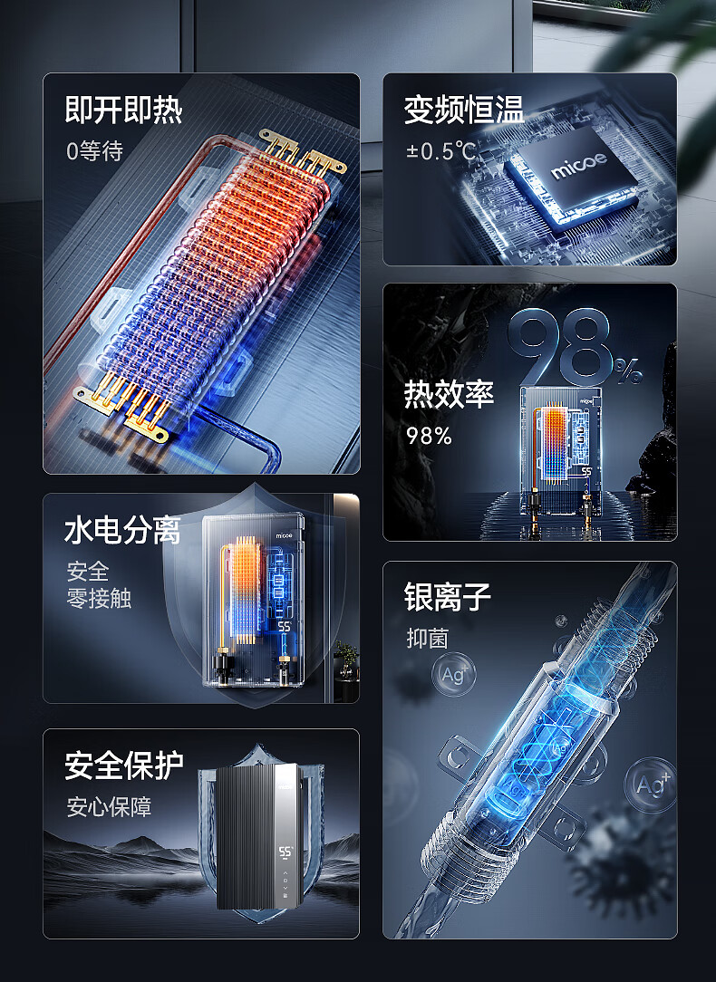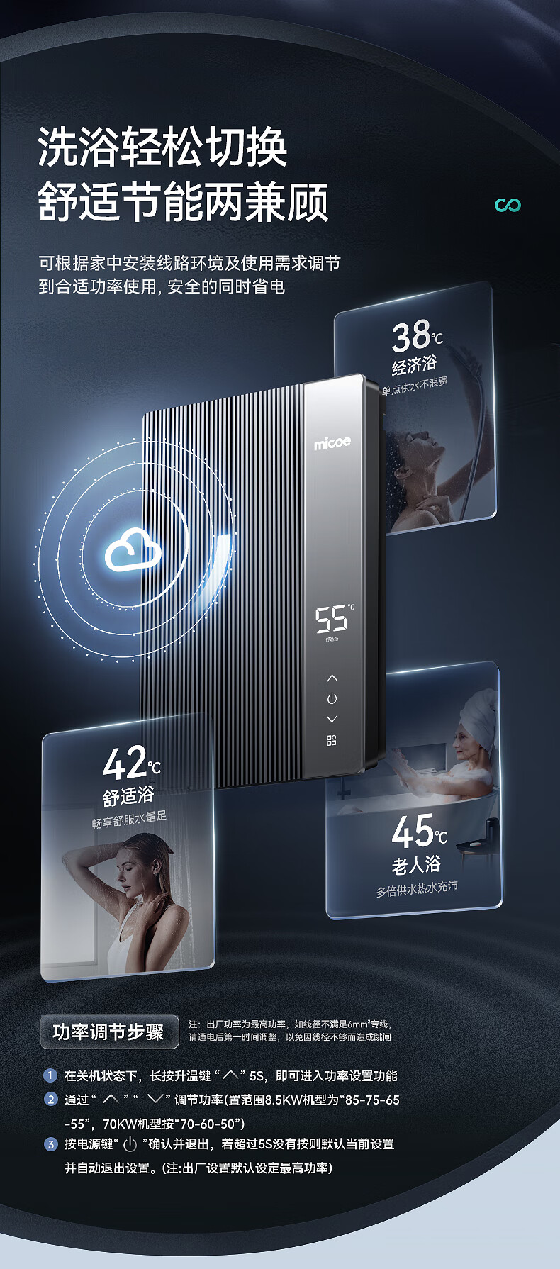 四季沐歌(MICOE)电热水器即热式 速热家用快热型7000W8500W变频智能恒温无胆免储水小型洗澡淋浴加热机器上门安装 7000W 银离子抑菌+内置防电墙