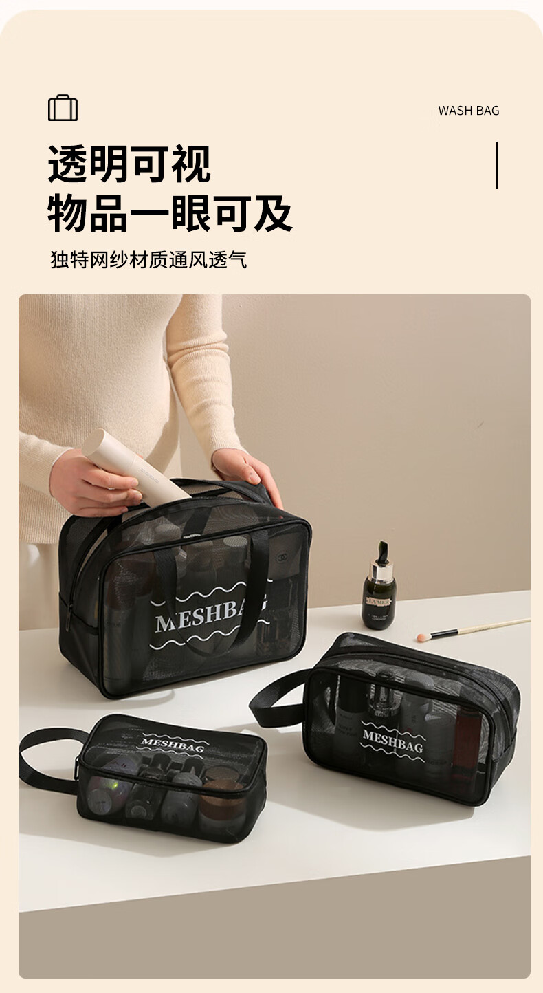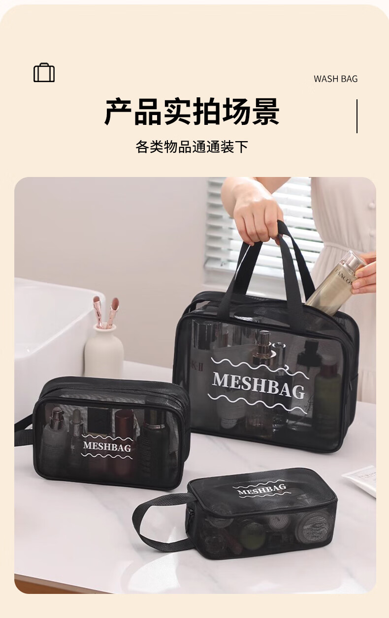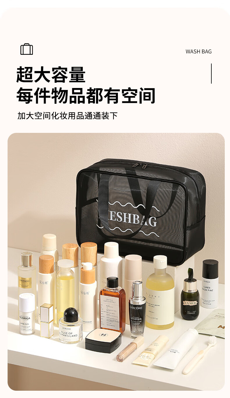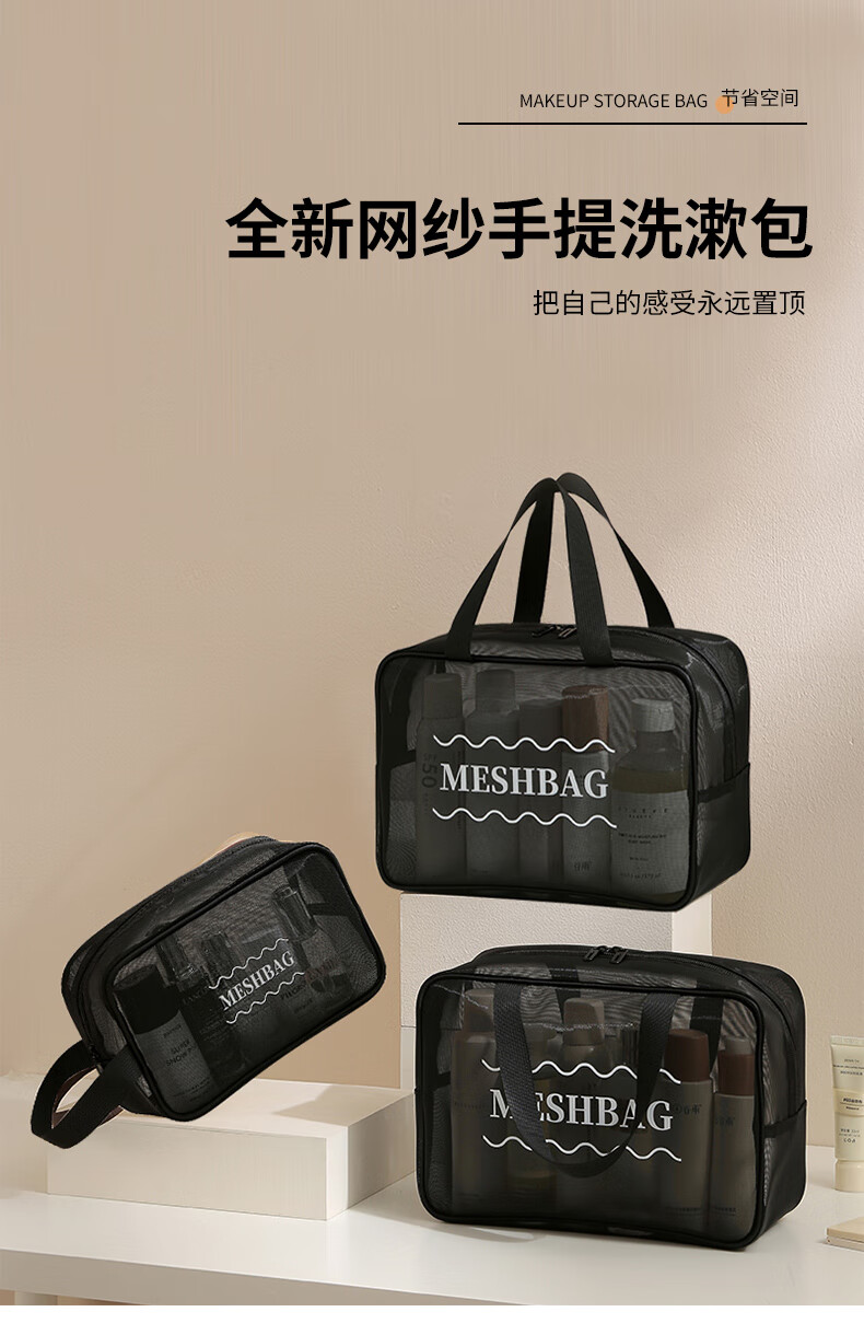 四万公里网纱洗漱包袋手提游泳包大容量沙滩包沥水洗澡健身泳衣收纳网眼