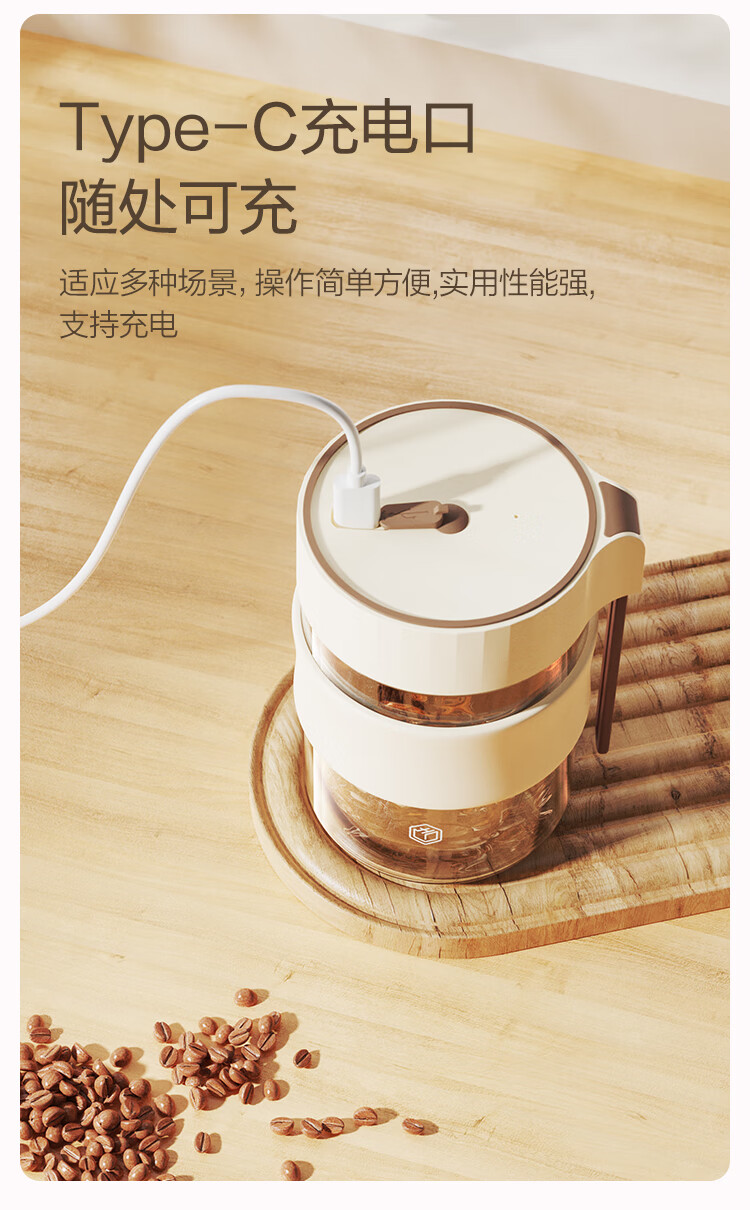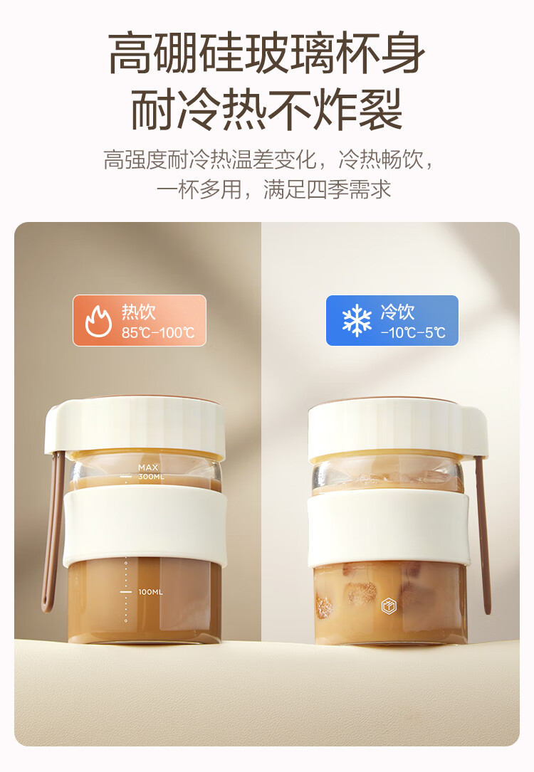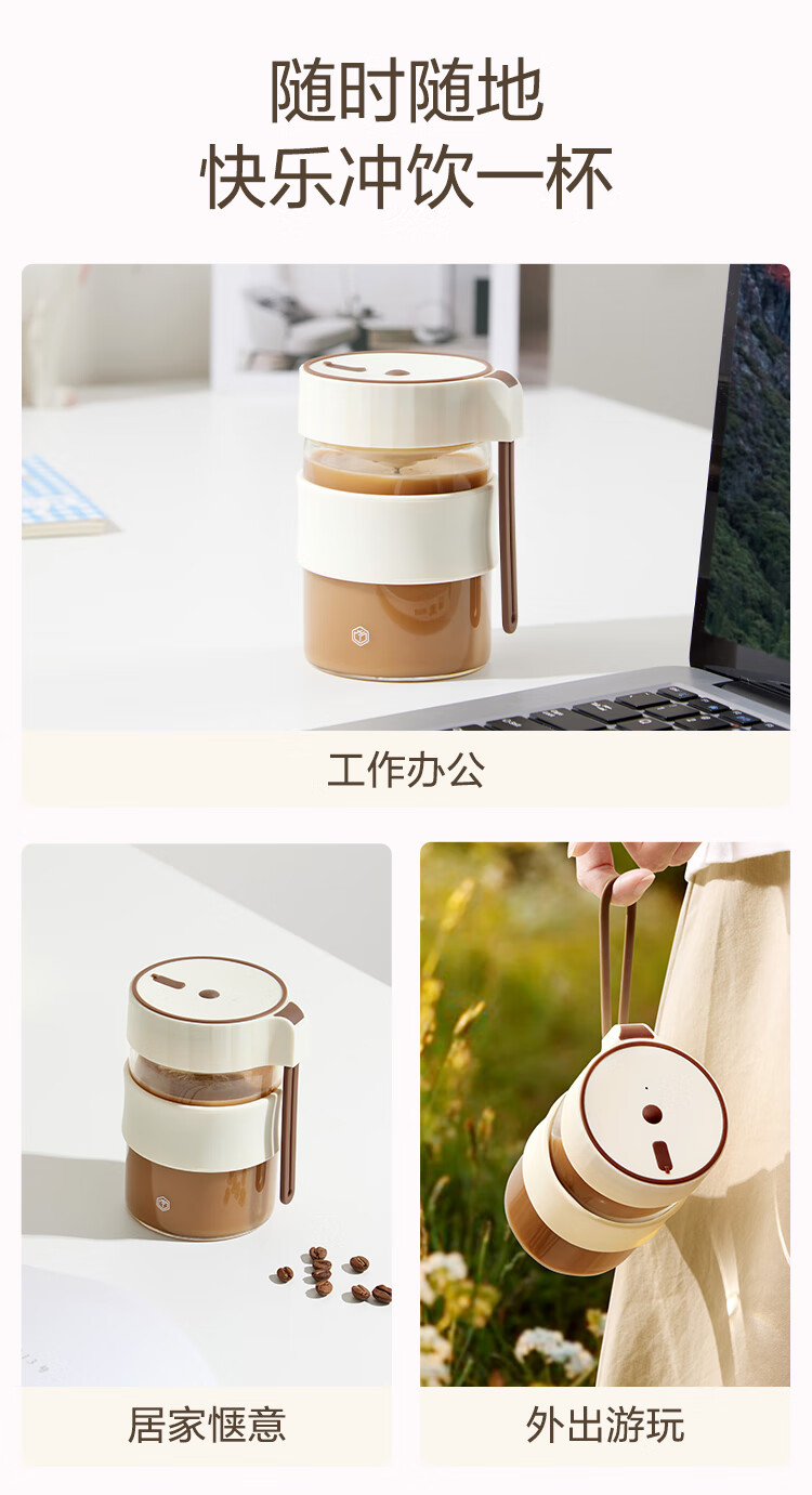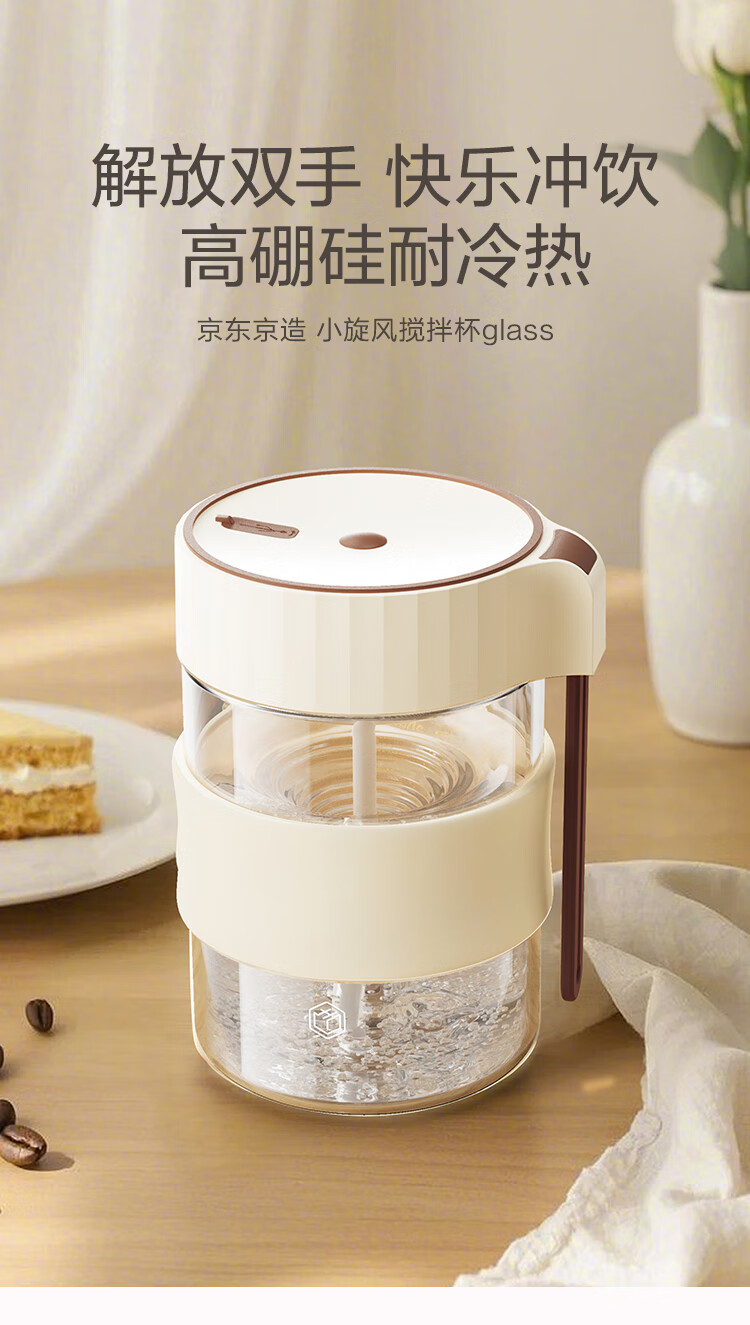 京东京造 小旋风电动搅拌杯GLASS 自动咖啡杯充电【高硼硅玻璃】350ml