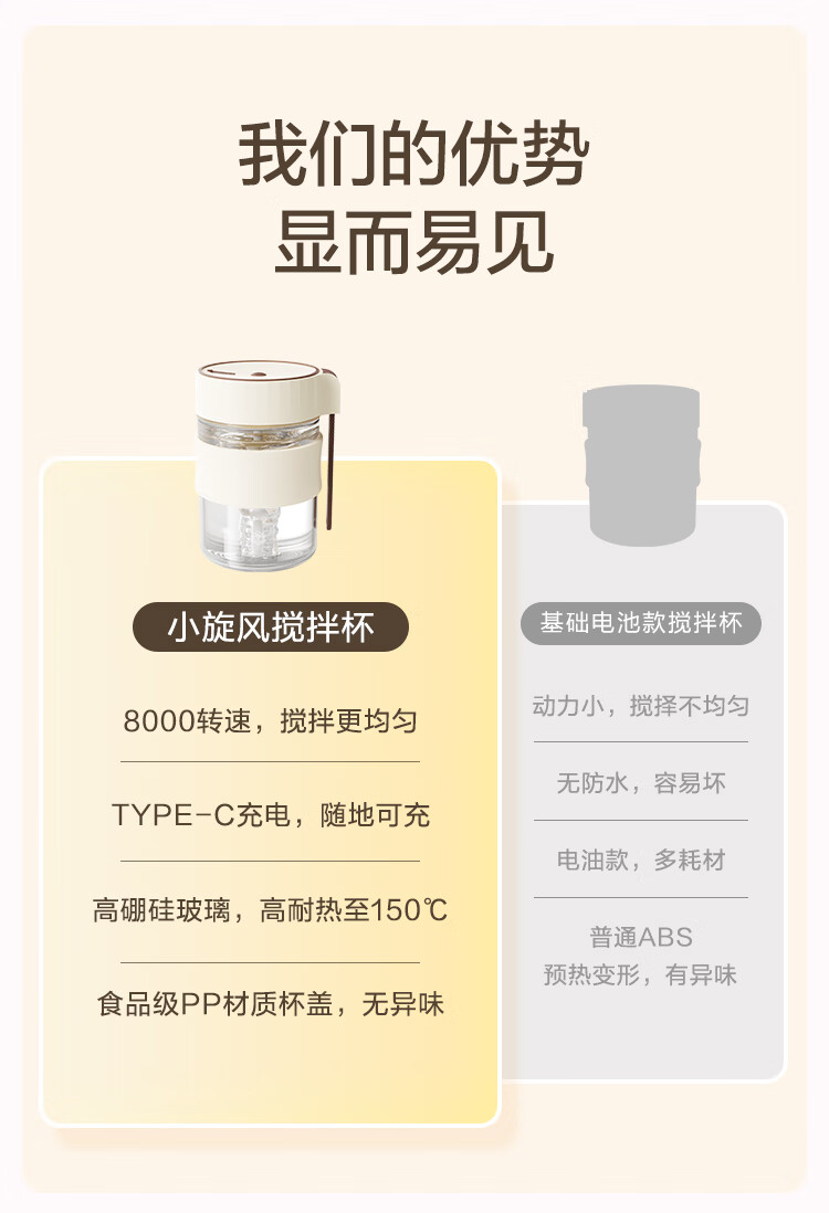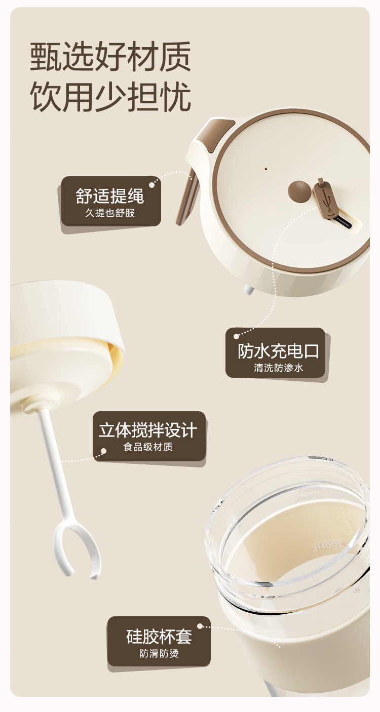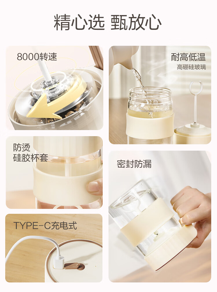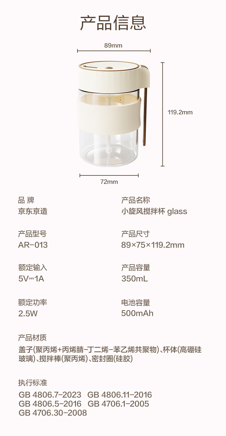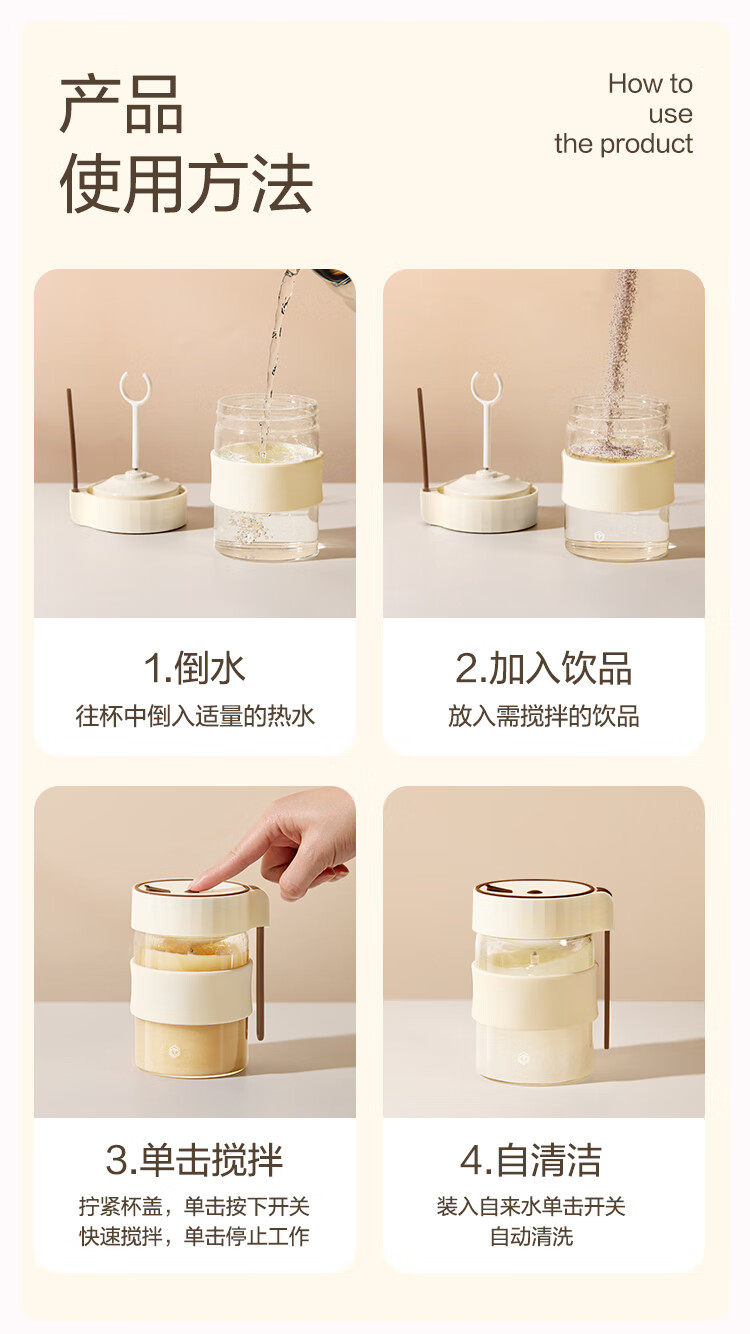 京东京造 小旋风电动搅拌杯GLASS 自动咖啡杯充电【高硼硅玻璃】350ml