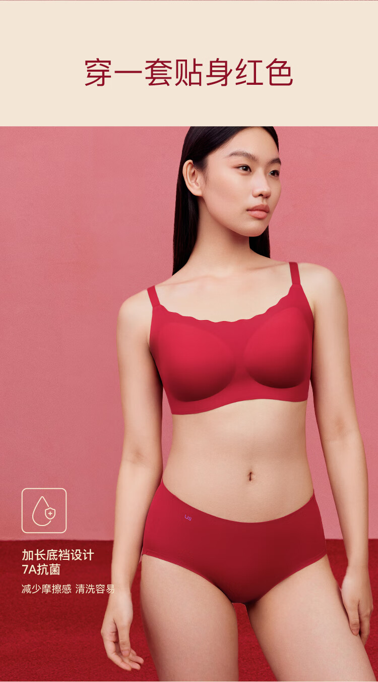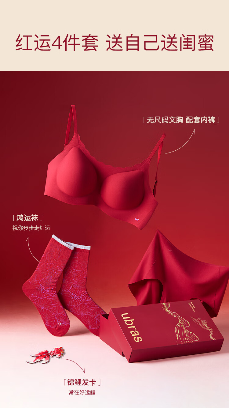 ubras刘雯同款26迎新骐骥红无尺码本命年结婚礼物红文胸女内衣裤马上红 幸运红 均码 马上红A-C杯100-130斤