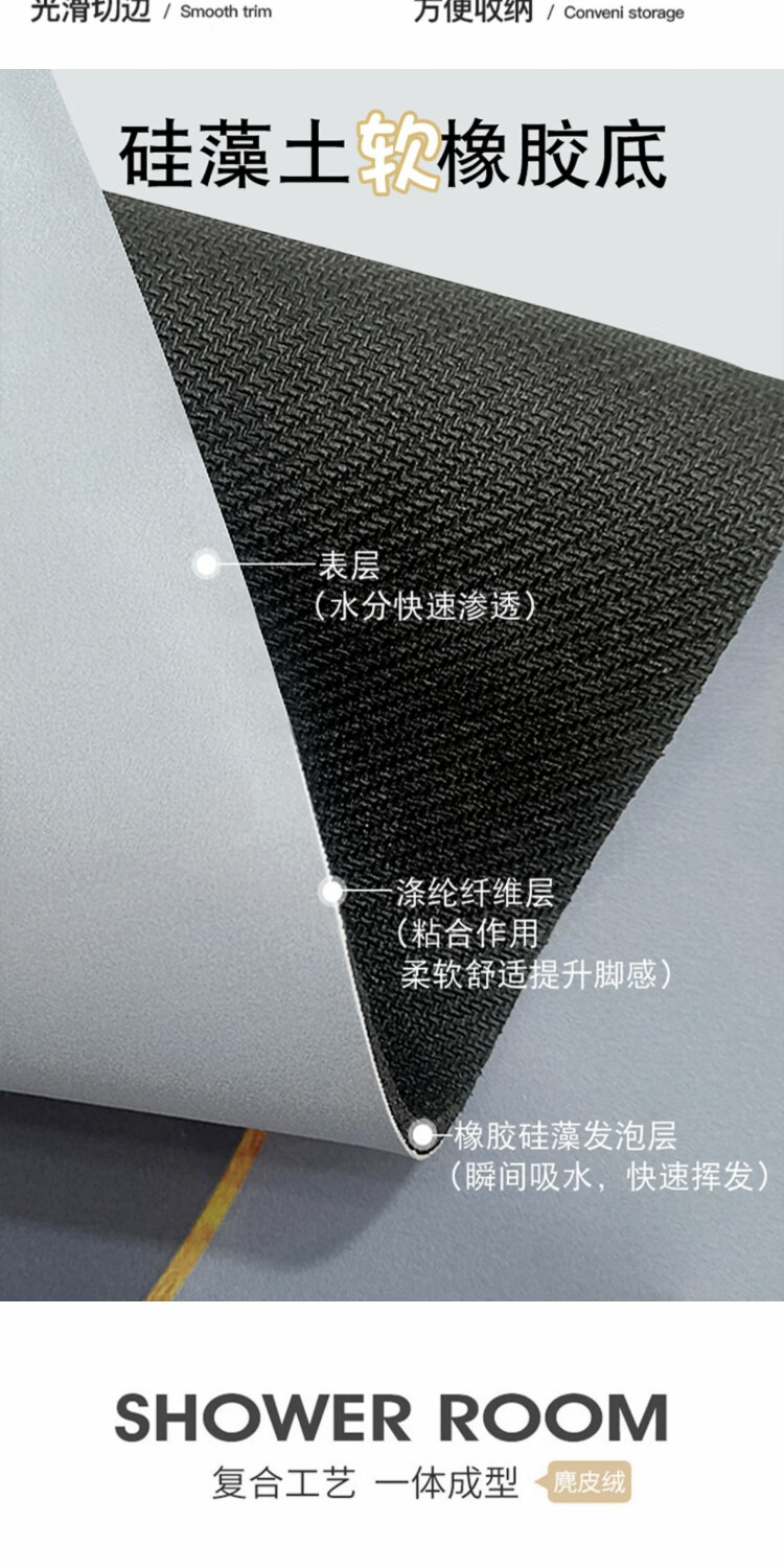 京华软硅藻吸水浴室地垫厕所洗手间防滑垫卫生间轻奢门口垫子脚垫门垫 迎海(半圆) 40cm*60cm