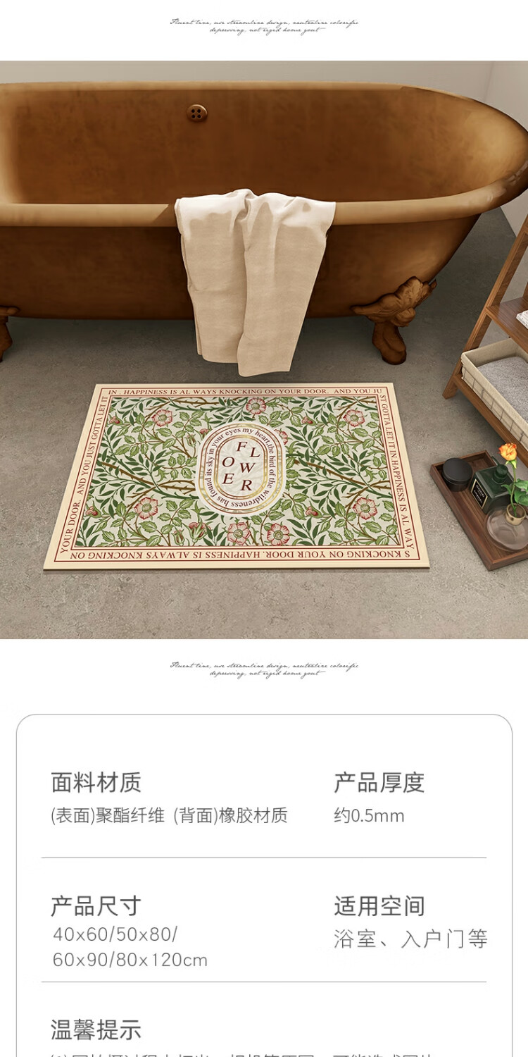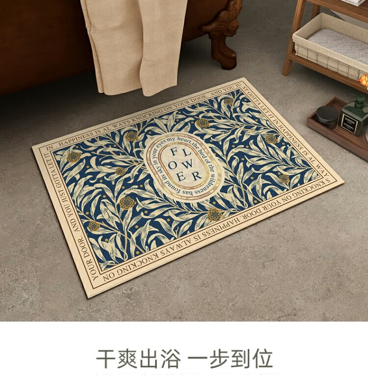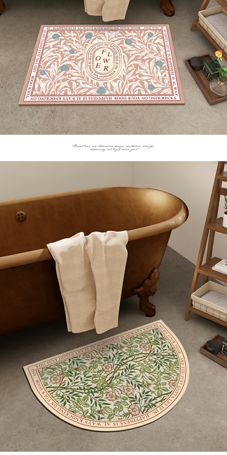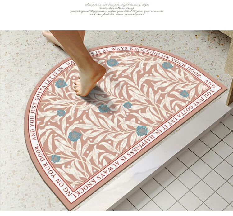 KAYE硅藻泥软垫浴室防滑吸水地垫厕所卫生间速干脚垫门口厨房入户垫子 GZN-繁花-椭圆 40x60 cm