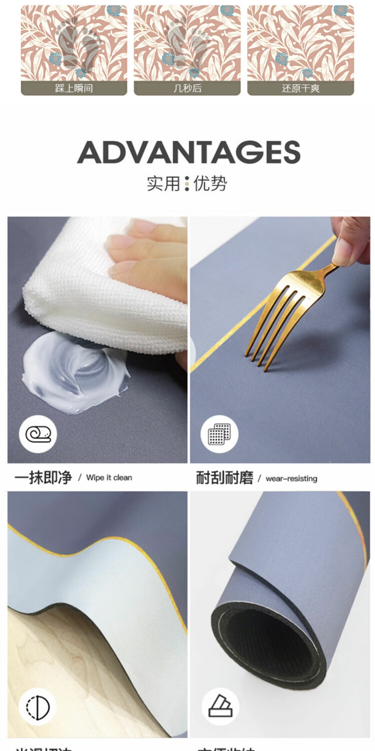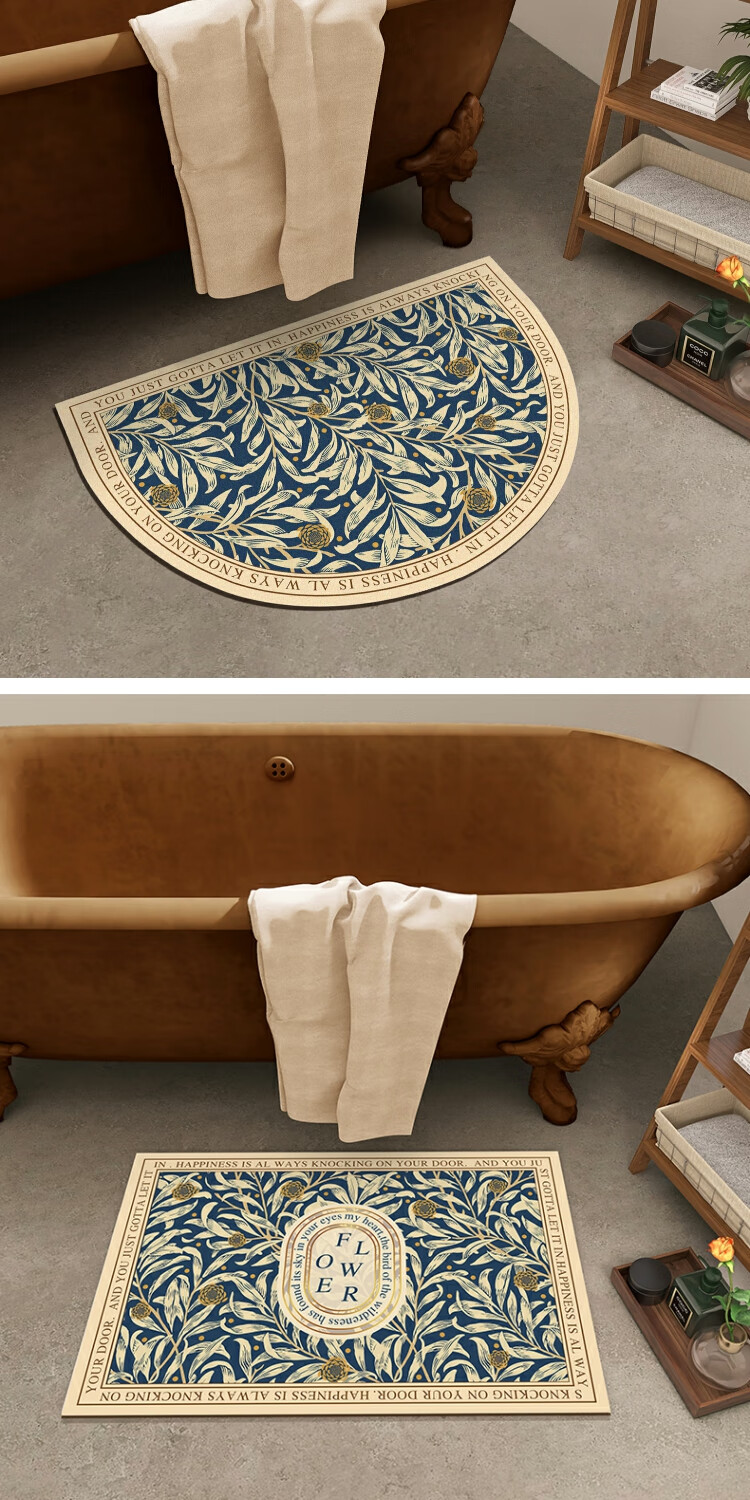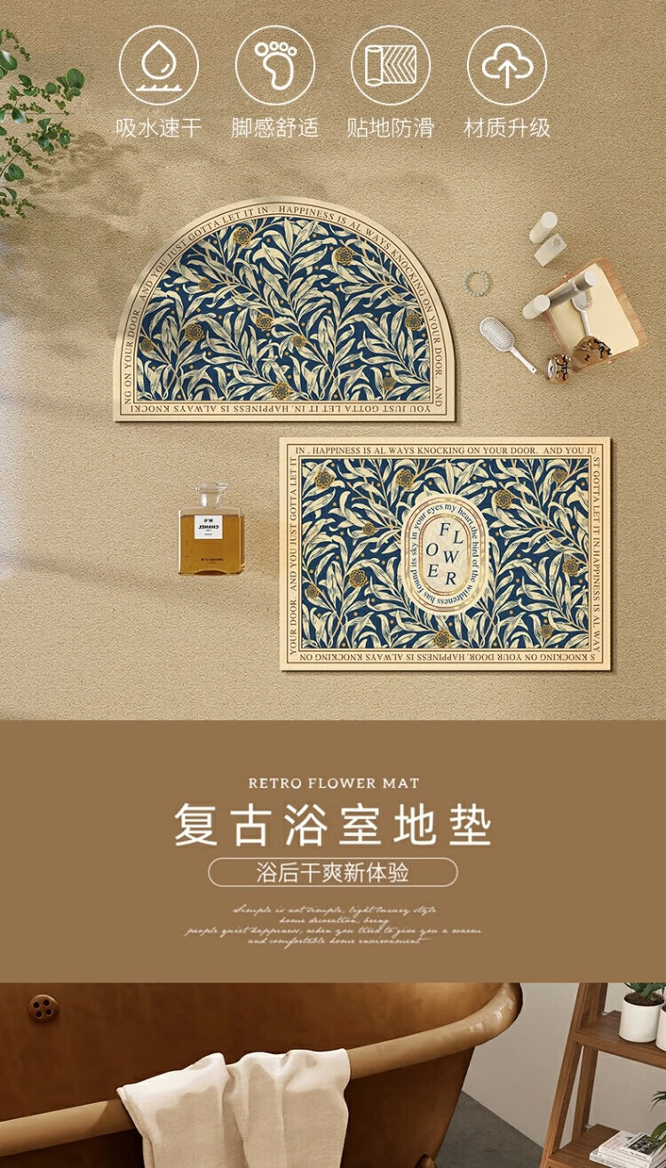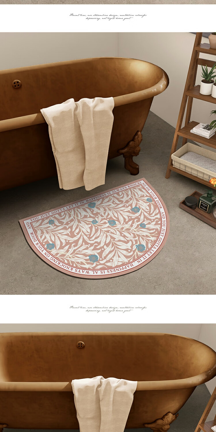 KAYE硅藻泥软垫浴室防滑吸水地垫厕所卫生间速干脚垫门口厨房入户垫子 GZN-繁花-椭圆 40x60 cm
