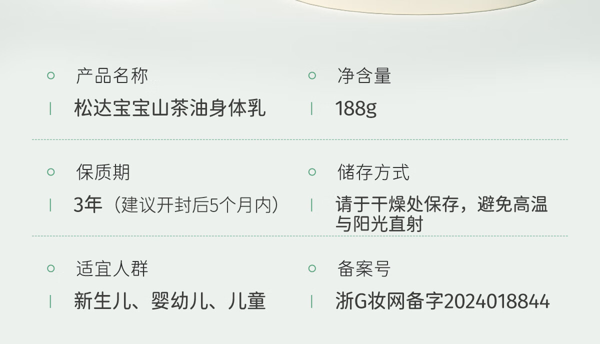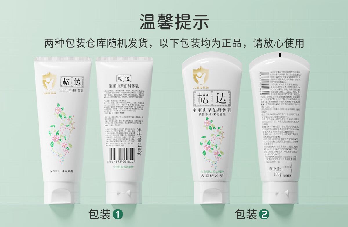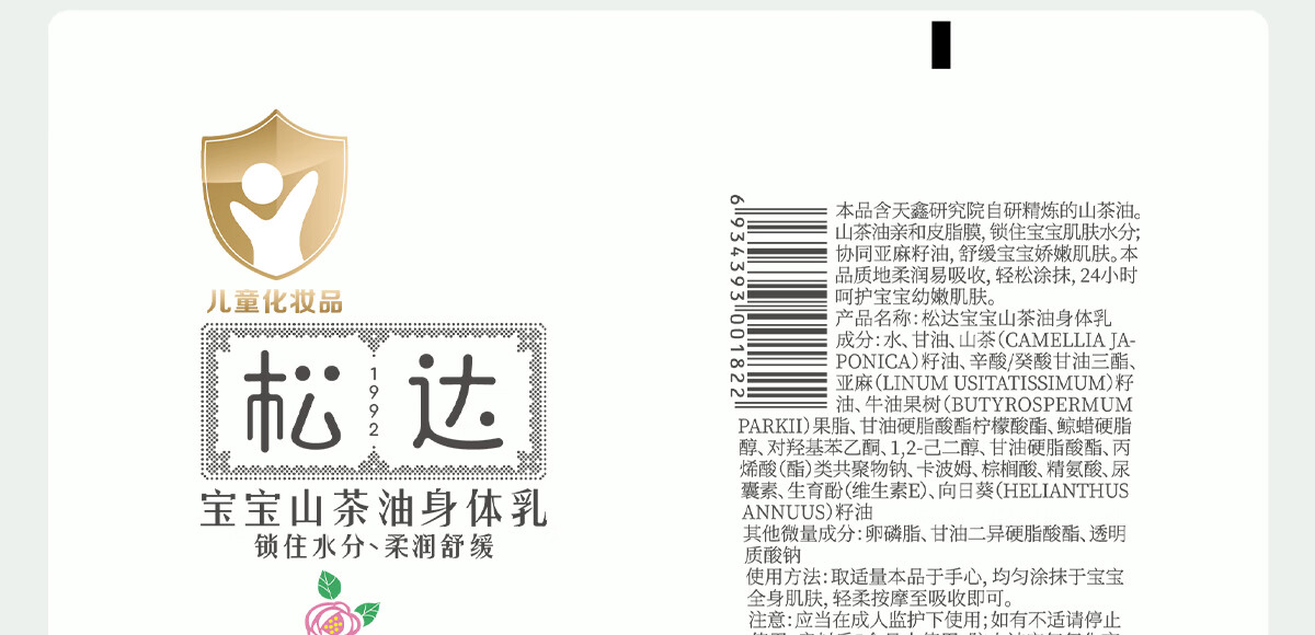 松达宝宝身体乳儿童润肤乳护肤露山茶油滋润保湿补水乳188g