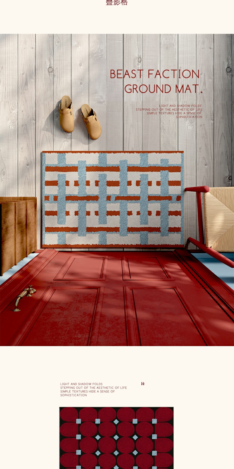 京华入户门地垫轻奢高级感丝圈进门门口玄关脚垫免洗可擦耐磨耐脏门垫 叠影格80用户的选择 50cm*80cm 蹭土除尘