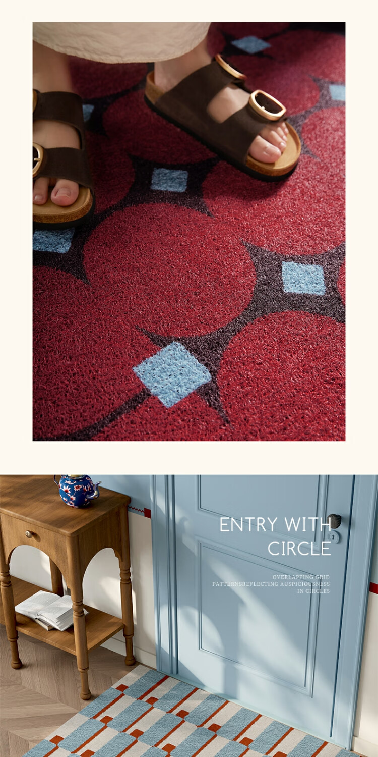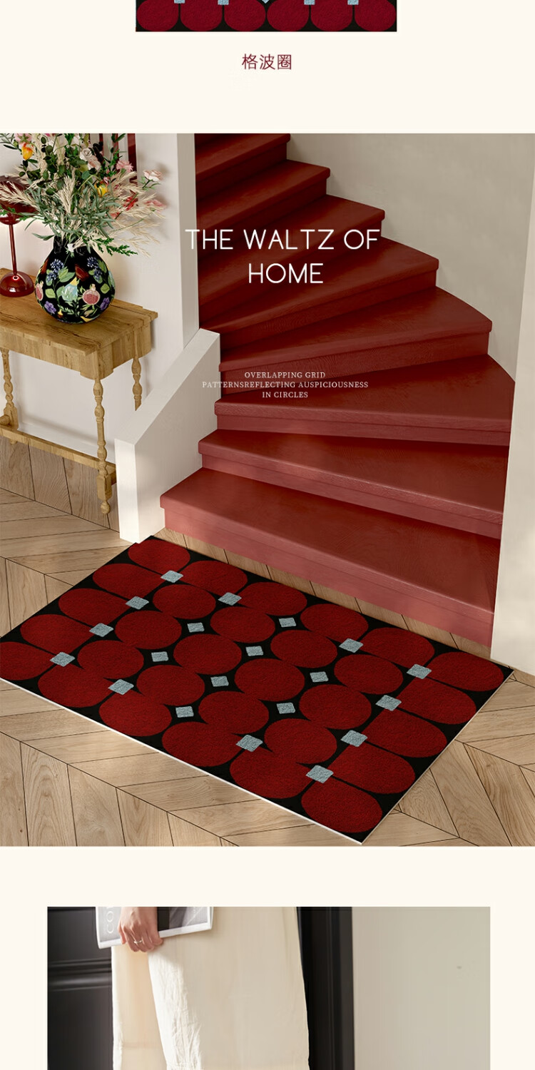 KAYE迎新年马年地垫入户门垫门口进门喜庆红地垫家用过年吸水防滑垫子 SJR-平安喜乐 50x80 cm(卧室专用)