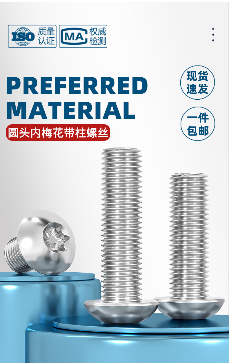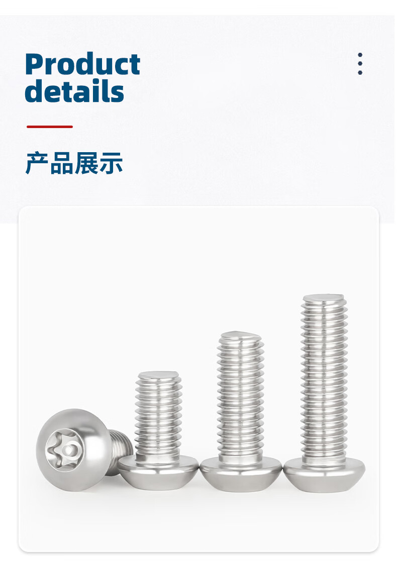 天卓五金防盗螺丝钉304不锈钢圆头梅花带针柱芯防卸螺栓M3M4M5M6M8M10M12 ---以下为【带柱】---