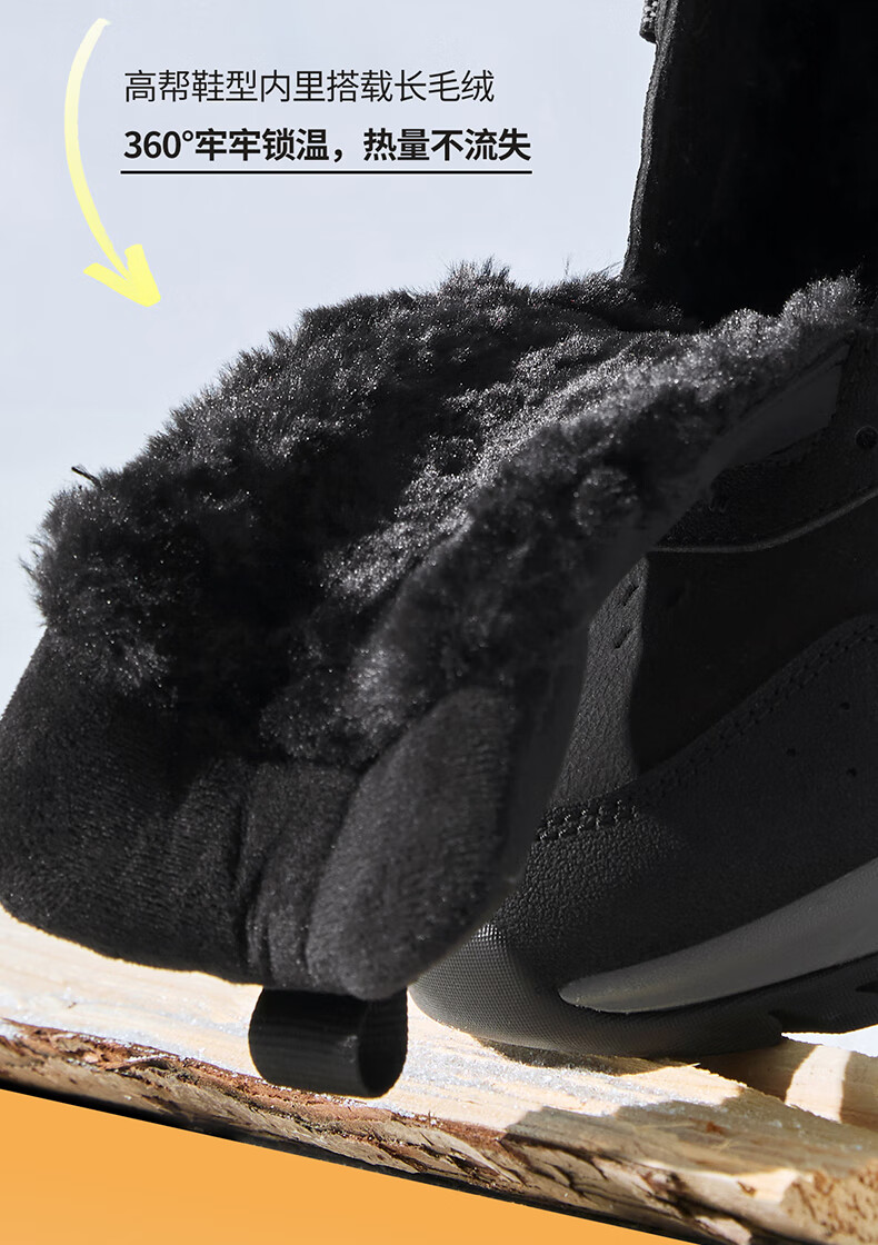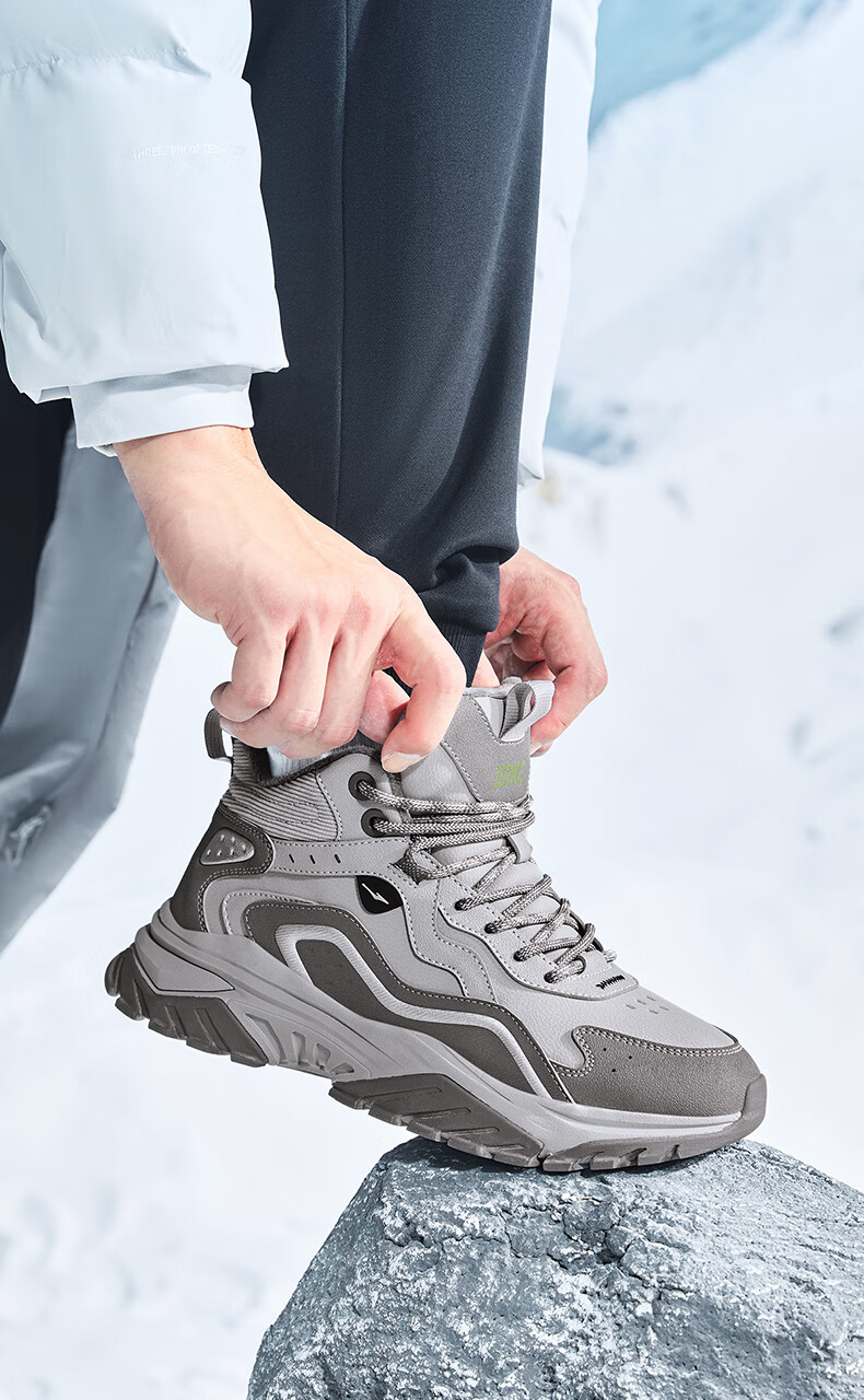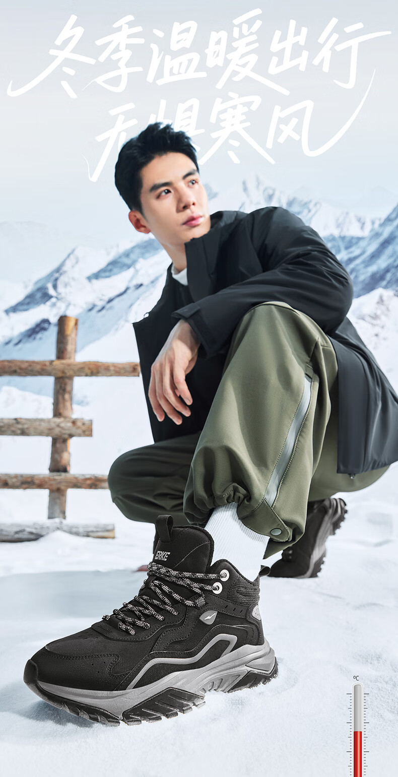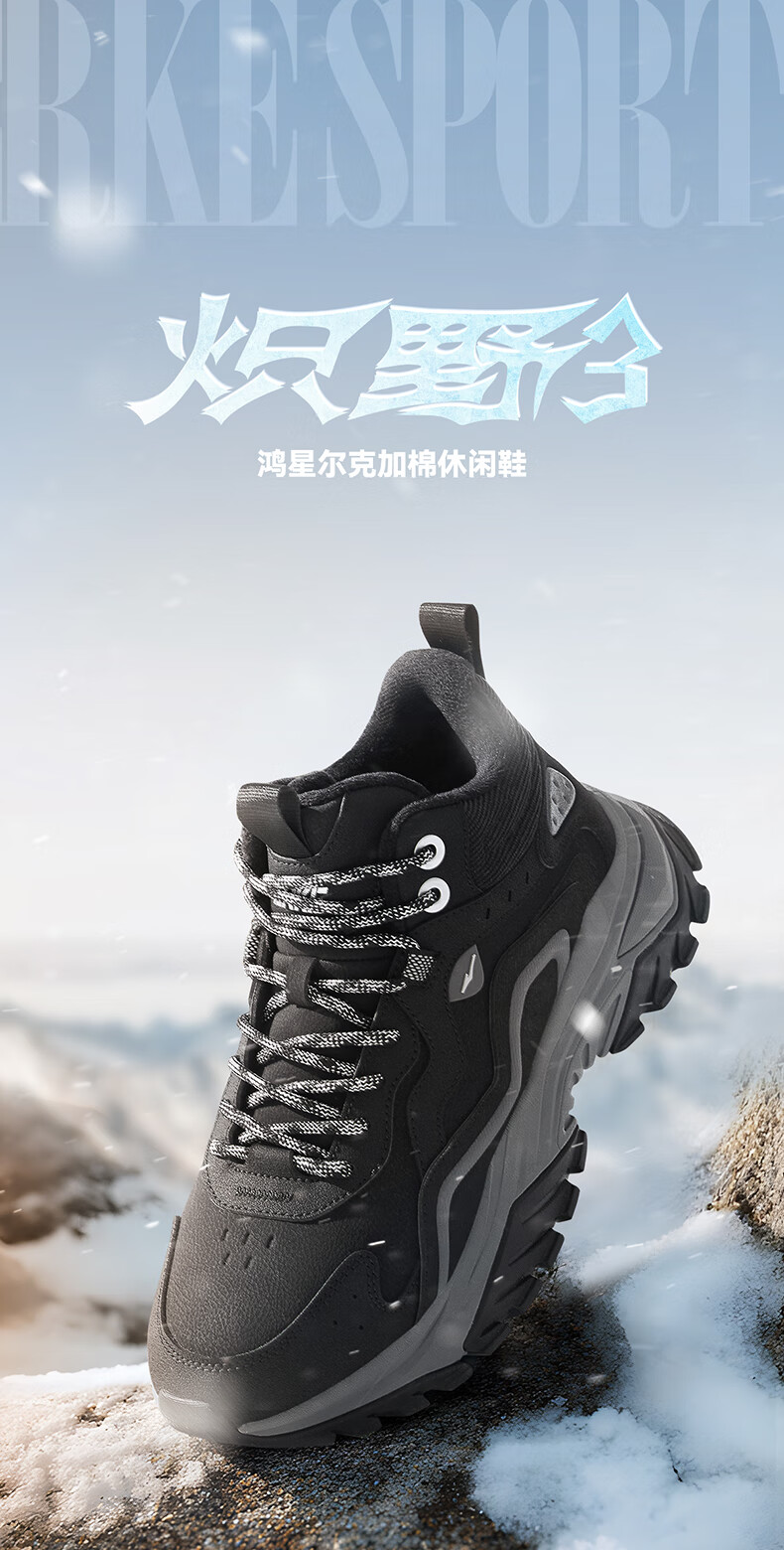 鸿星尔克炽野3加棉休闲鞋男鞋冬季新款棉鞋户外防滑保暖加厚雪地靴运动鞋 正黑/碳灰 41
