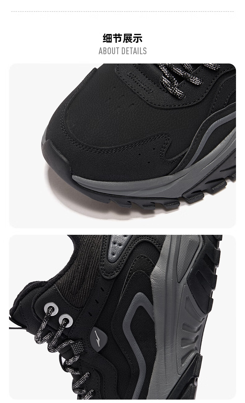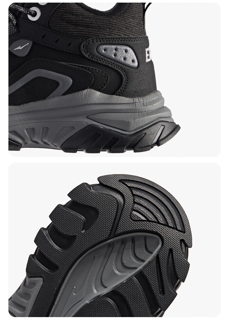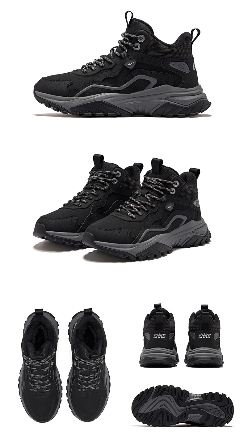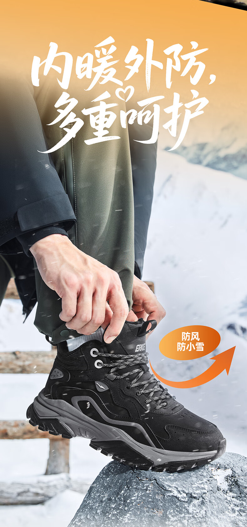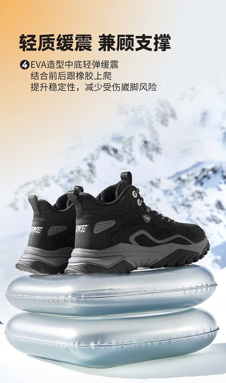 鸿星尔克炽野3加棉休闲鞋男鞋冬季新款棉鞋户外防滑保暖加厚雪地靴运动鞋 正黑/碳灰 41