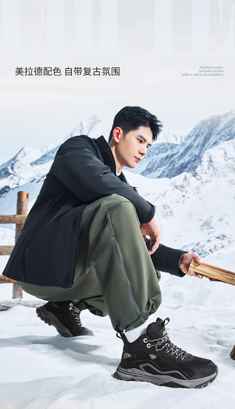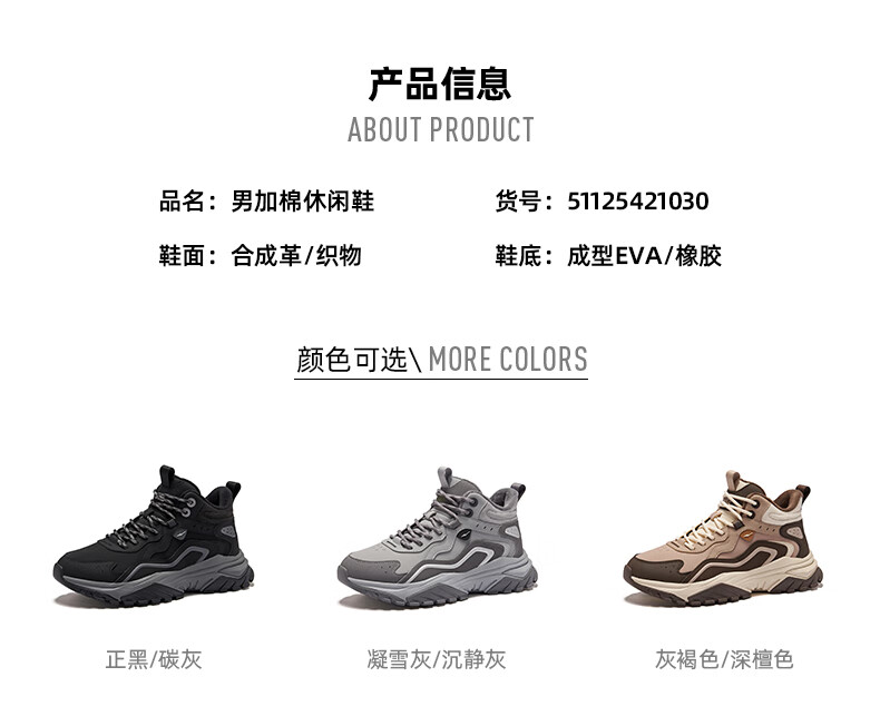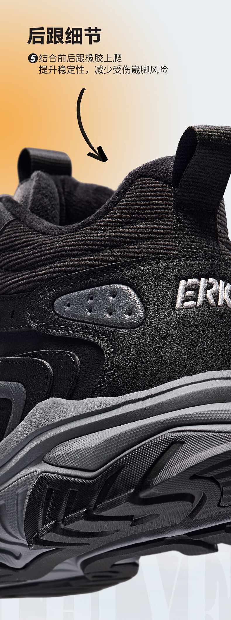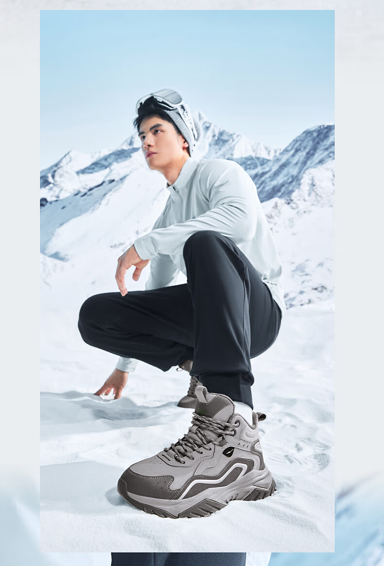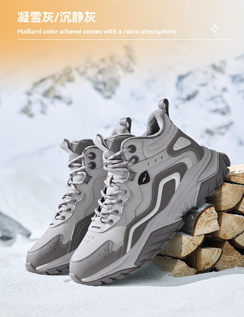 鸿星尔克炽野3加棉休闲鞋男鞋冬季新款棉鞋户外防滑保暖加厚雪地靴运动鞋 正黑/碳灰 41
