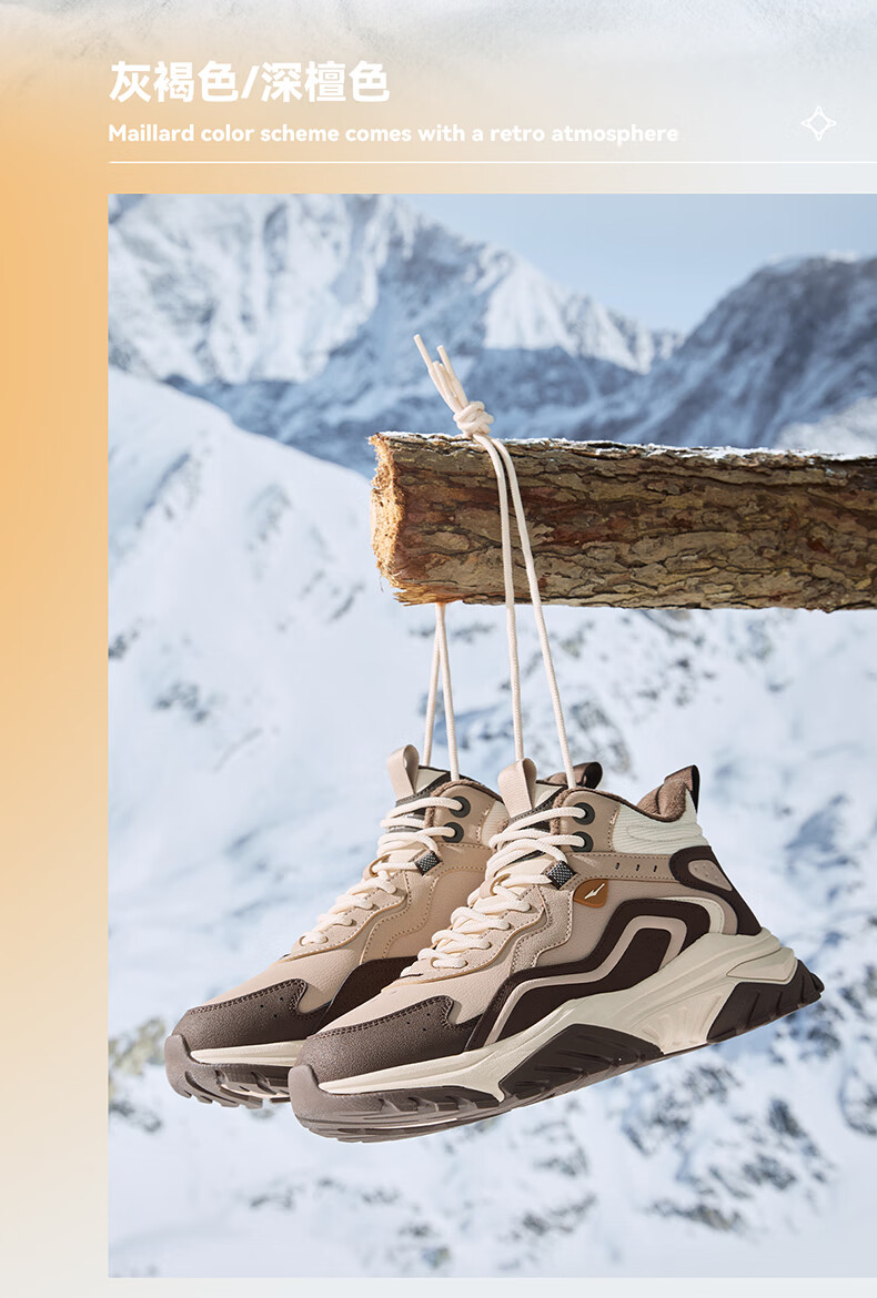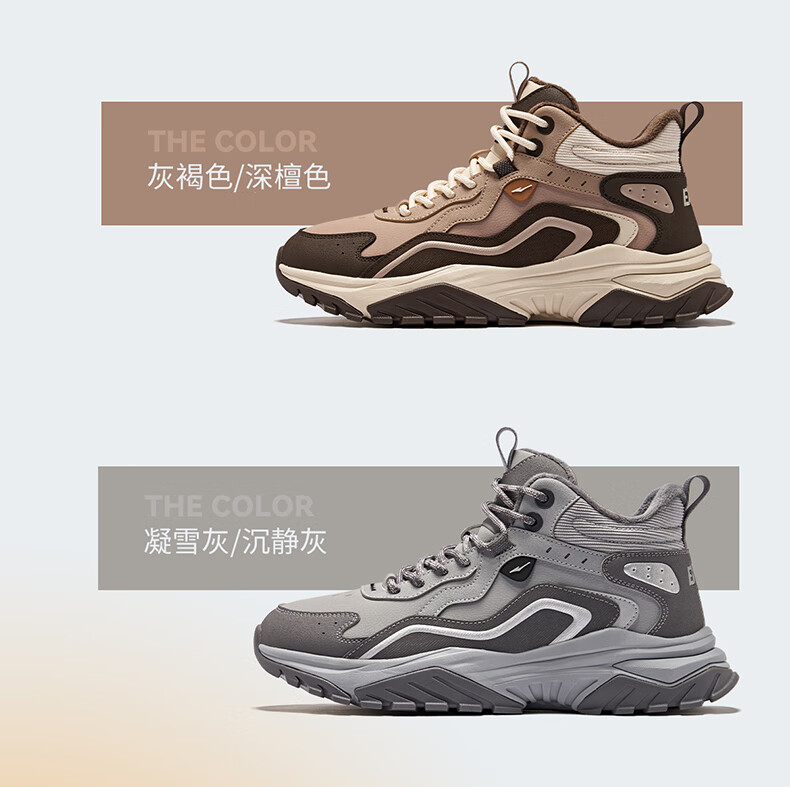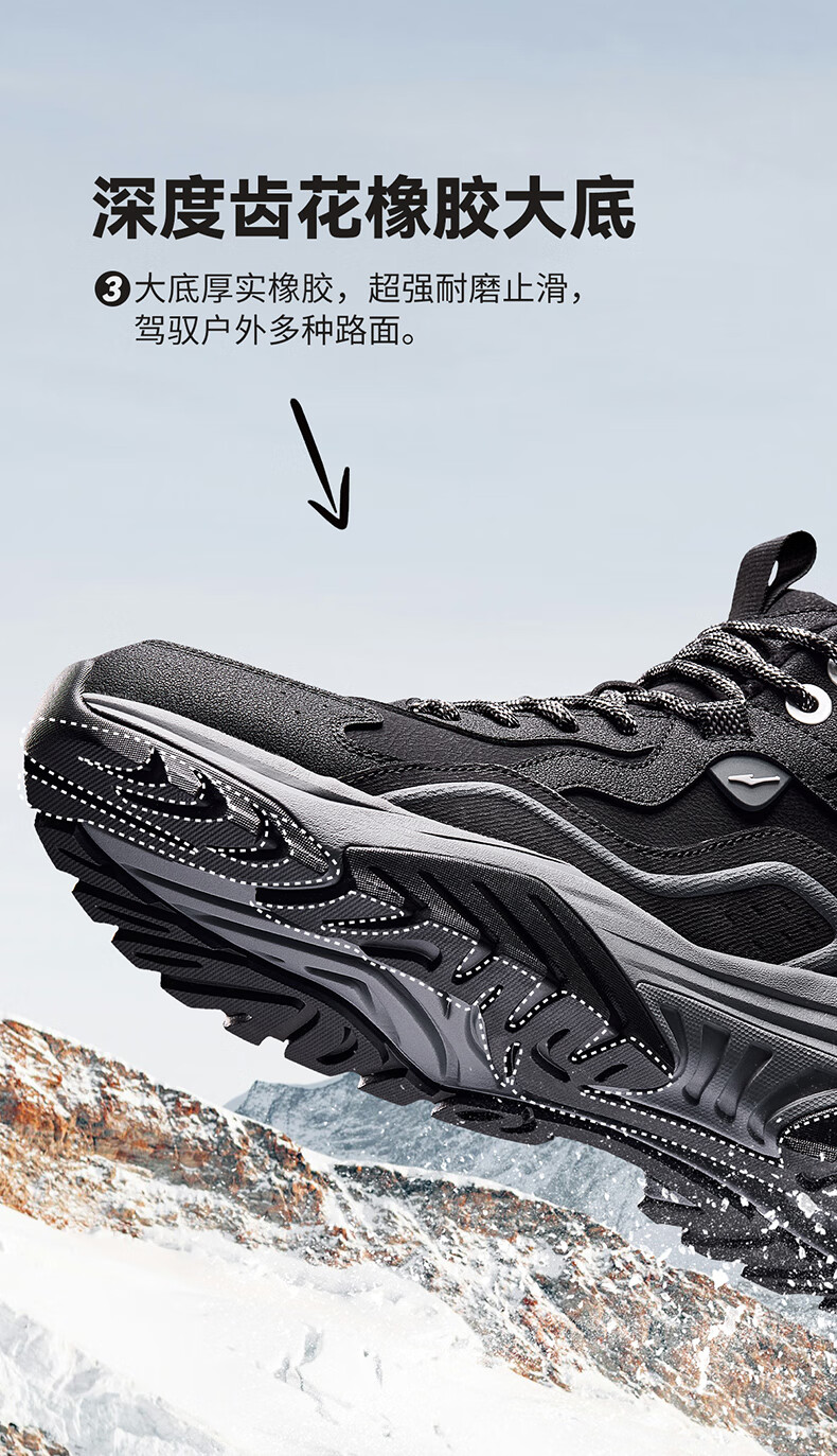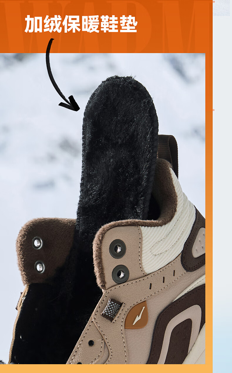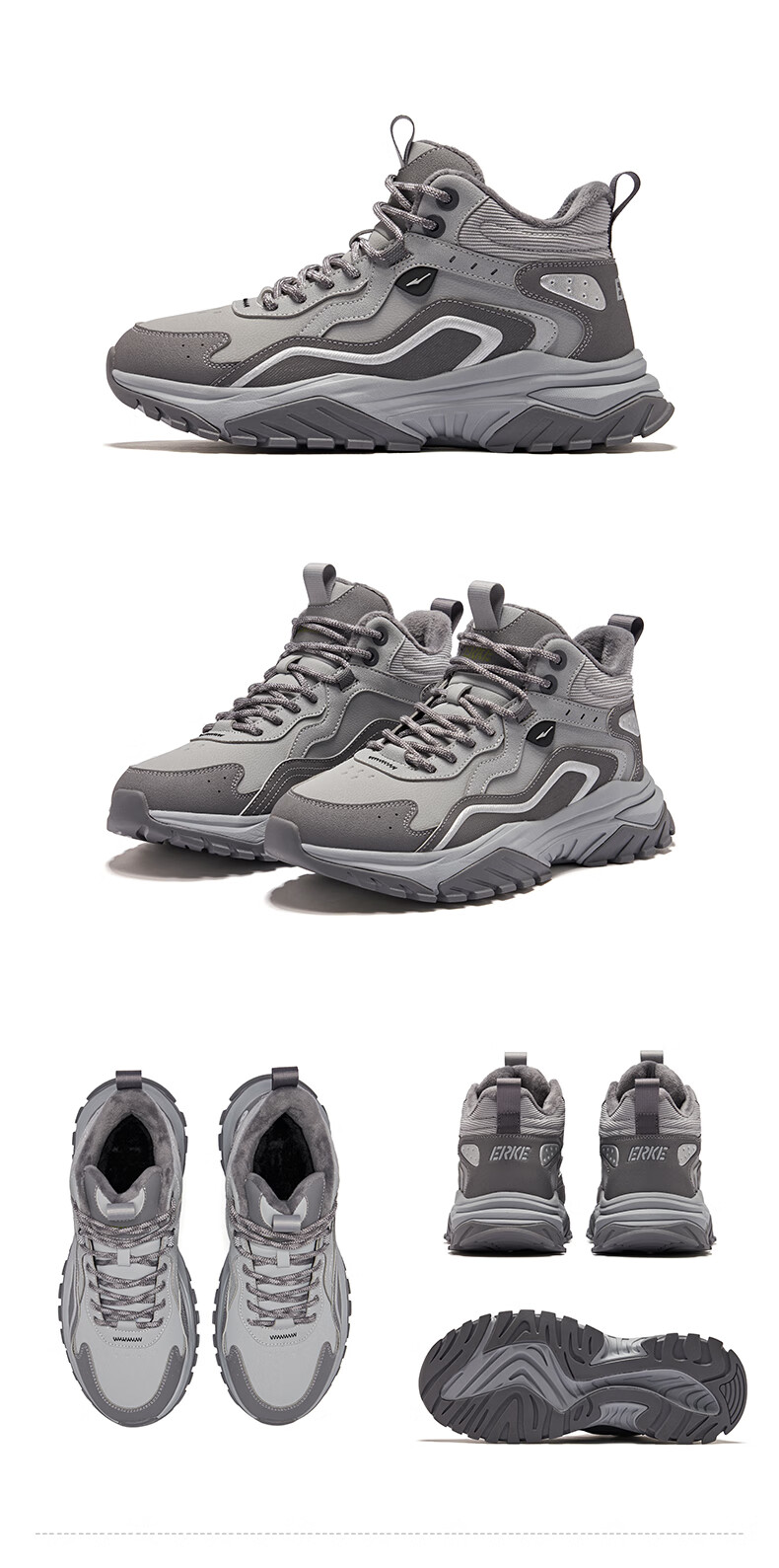 鸿星尔克炽野3加棉休闲鞋男鞋冬季新款棉鞋户外防滑保暖加厚雪地靴运动鞋 正黑/碳灰 41