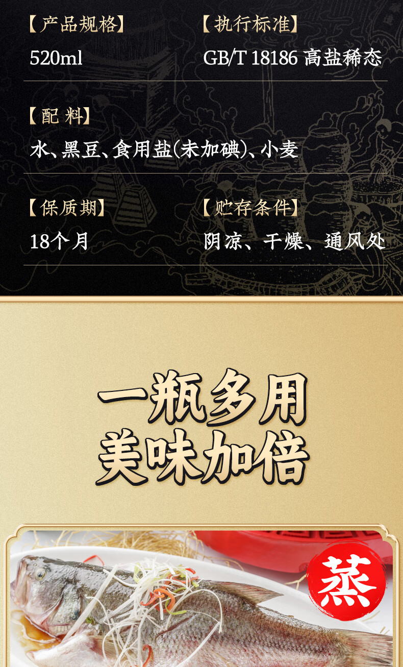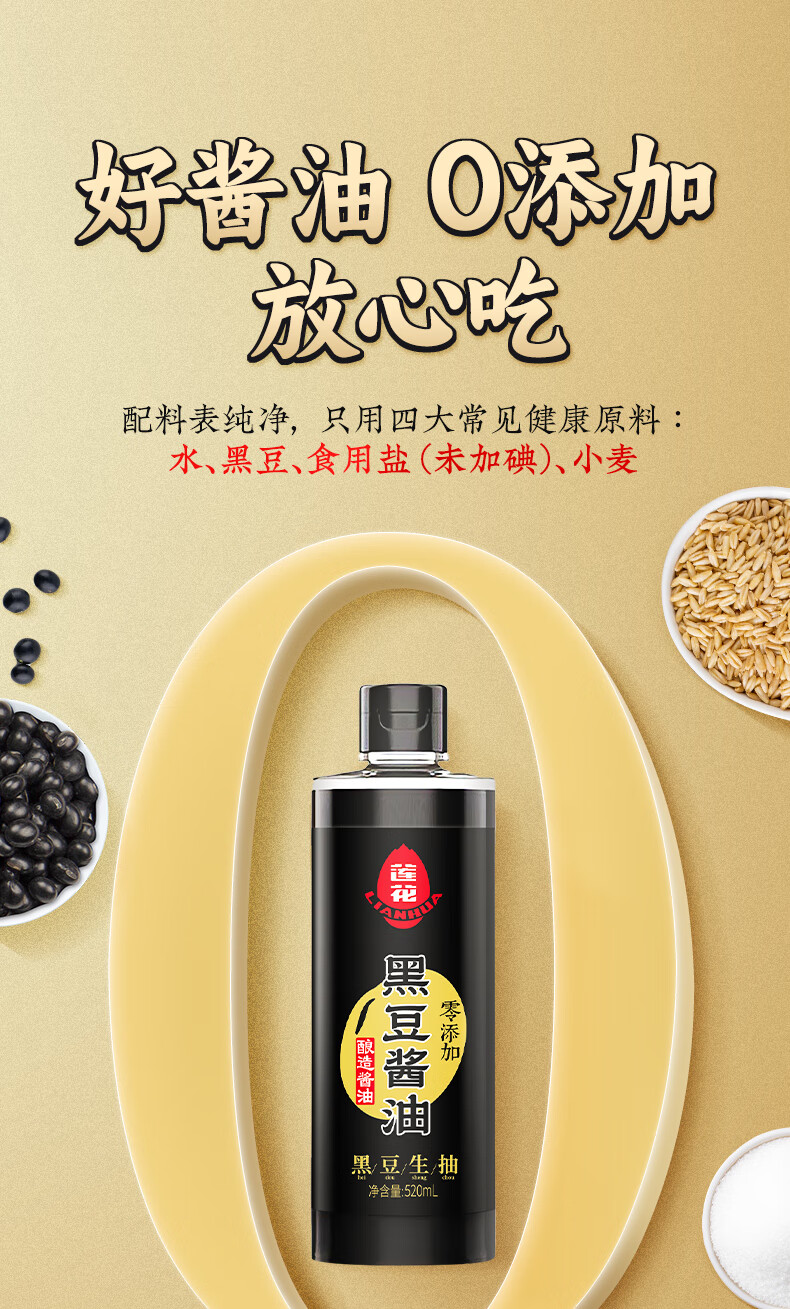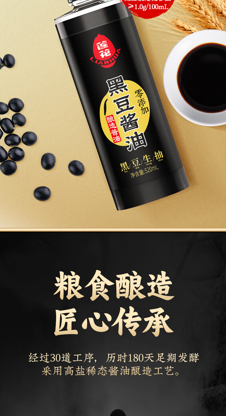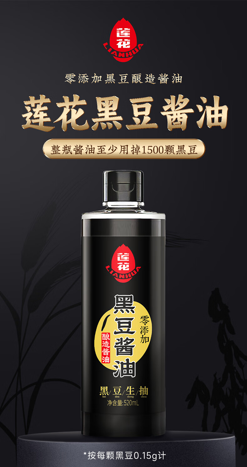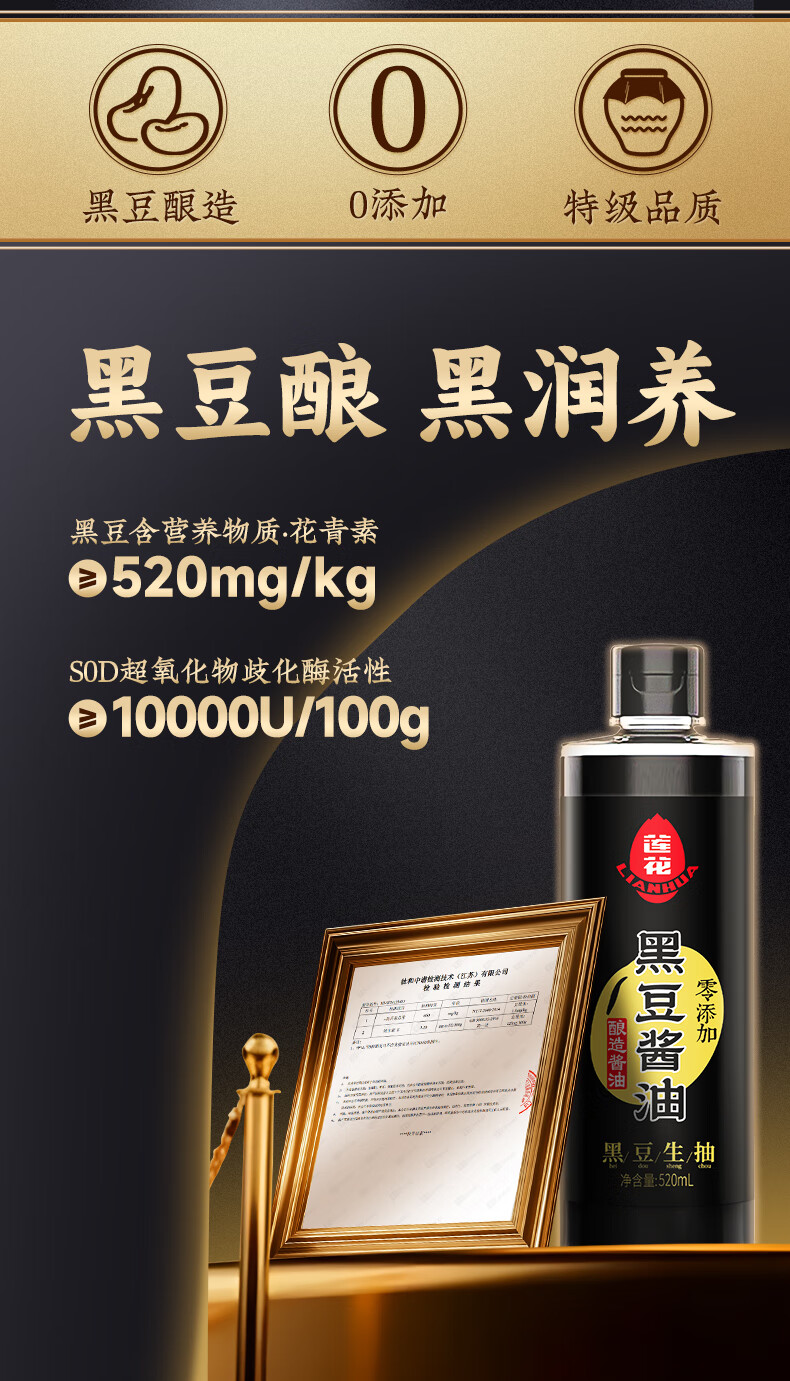 莲花黑豆酱油520ml生抽0添加特级酿造酱油凉拌炒菜调味料 黑豆酱油520ml*1瓶