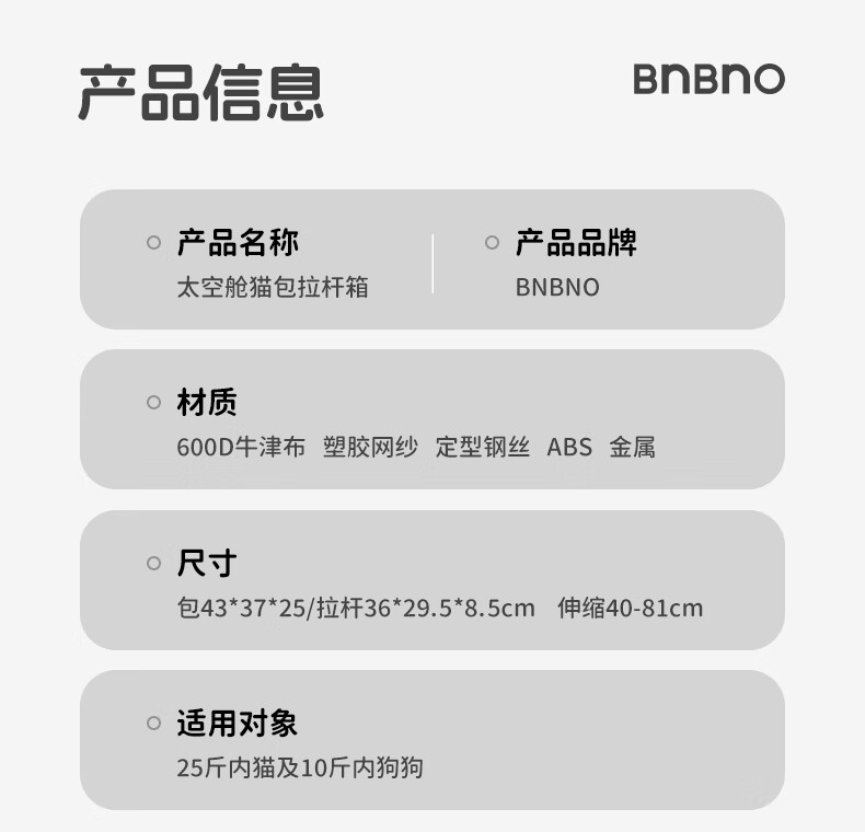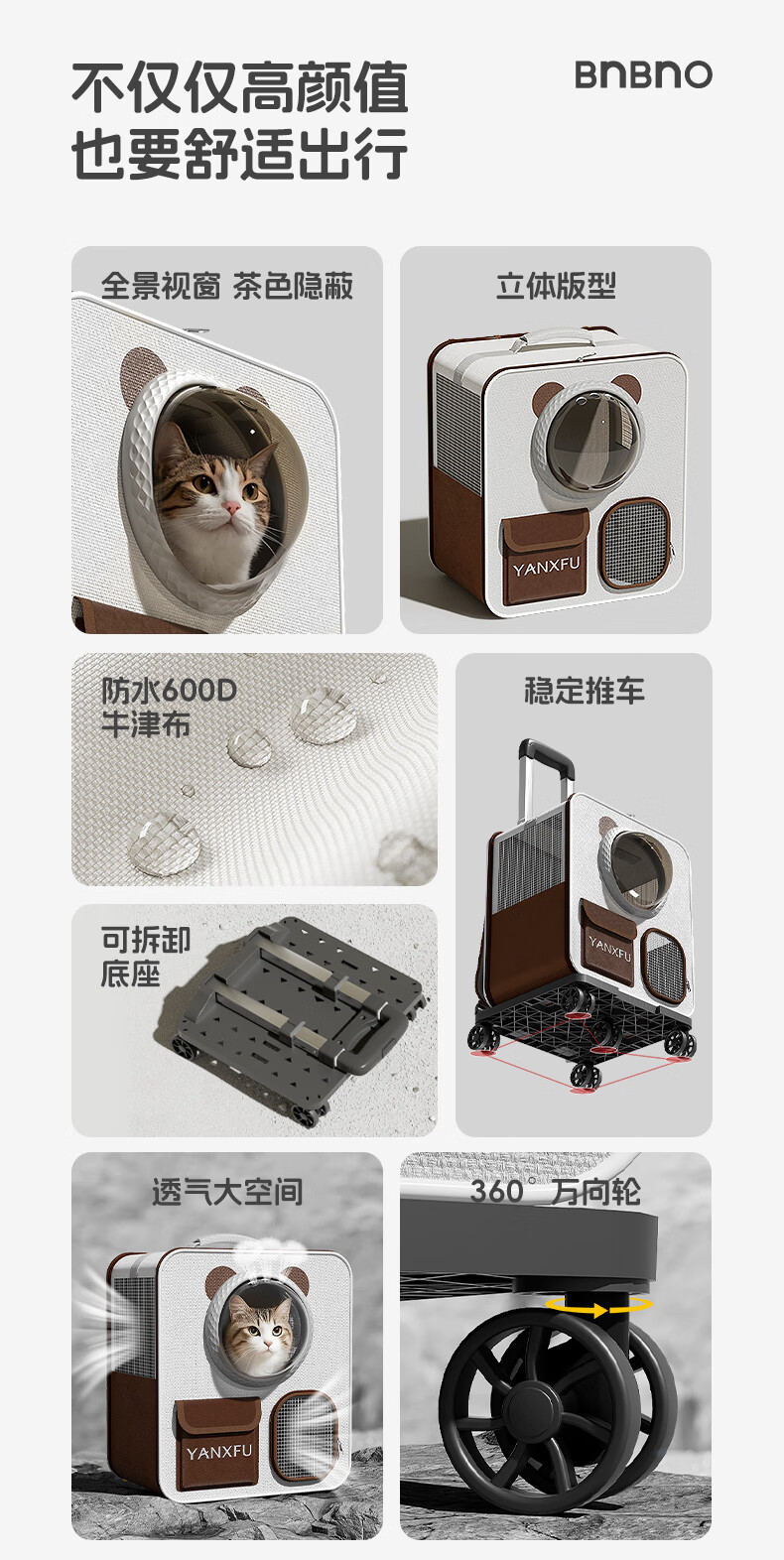 BNBNO猫包便携外出宠物拉杆箱猫咪双肩背包狗狗大容量行李箱猫笼子猫箱
