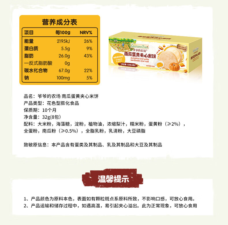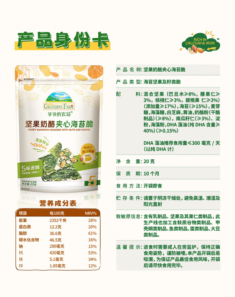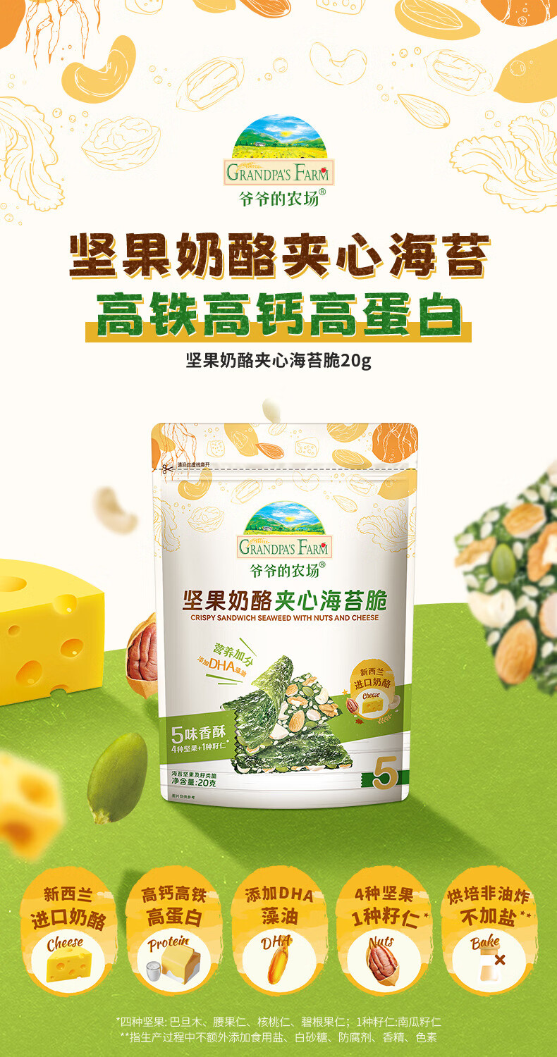 爷爷的农场儿童宝宝零食【99元任选5件】鳕鱼肠溶豆米饼干海苔脆磨牙棒虾片 【99元任选5件】牛油果夹心饼干