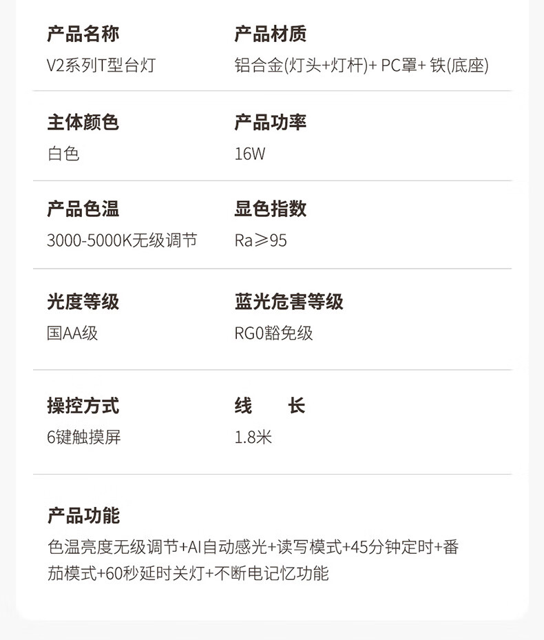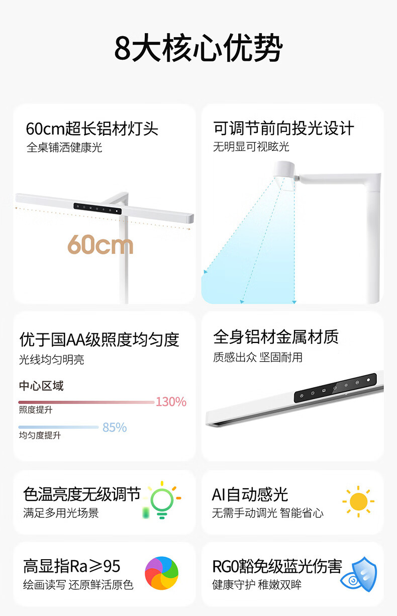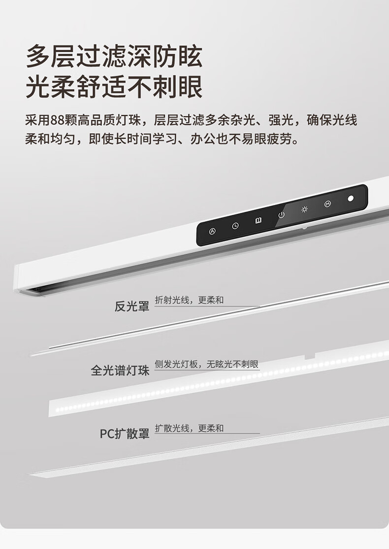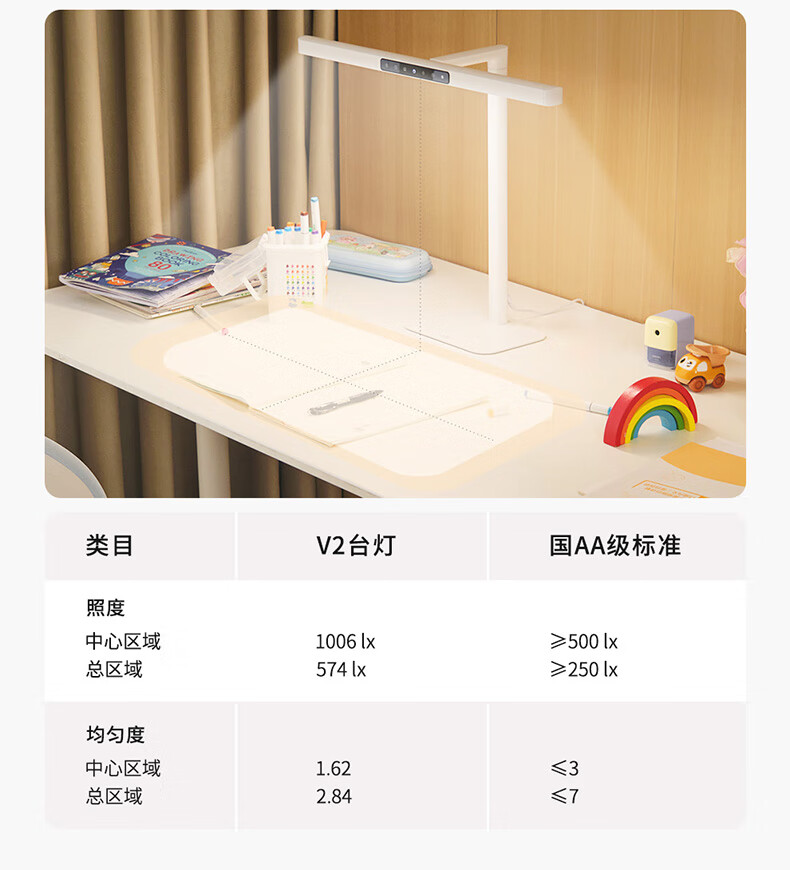 雷士(NVC)全光谱护眼台灯国AA级无座读写桌夹式高显儿童学习阅桌学生宿舍 V2条形灯