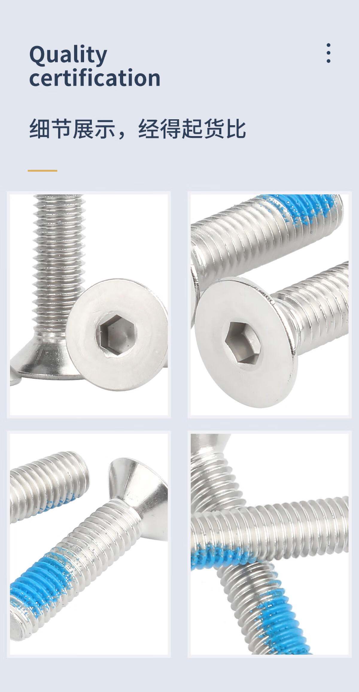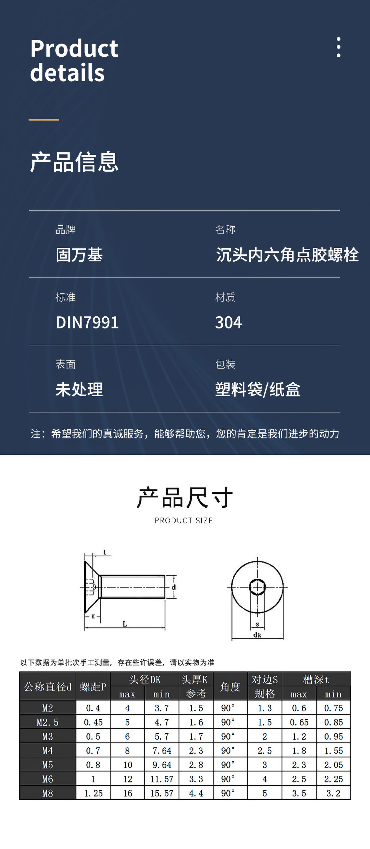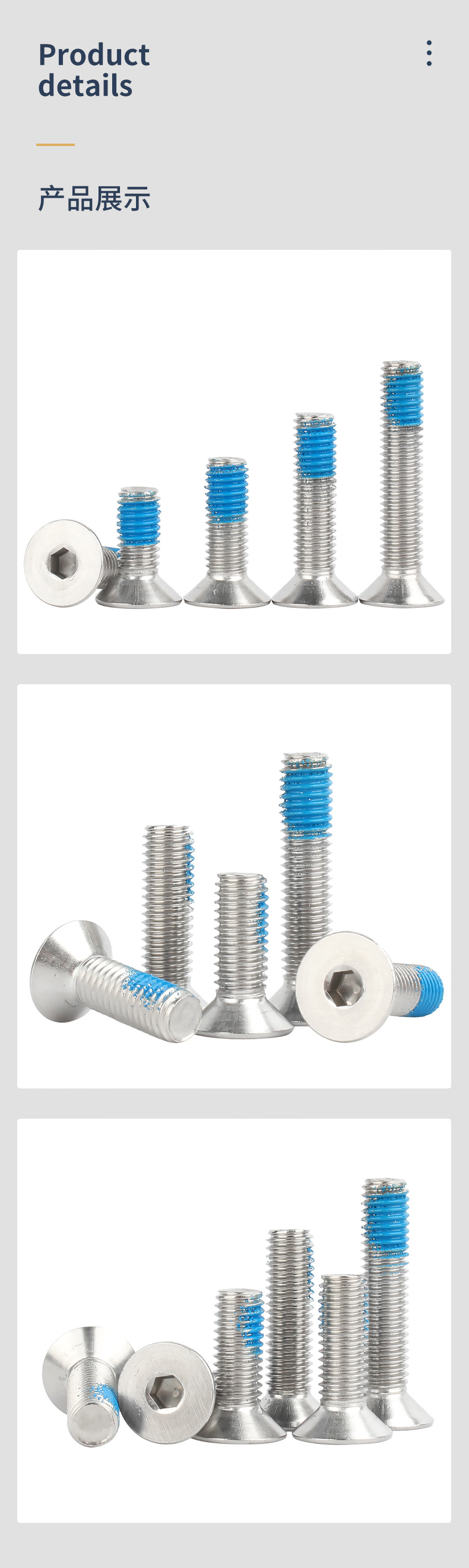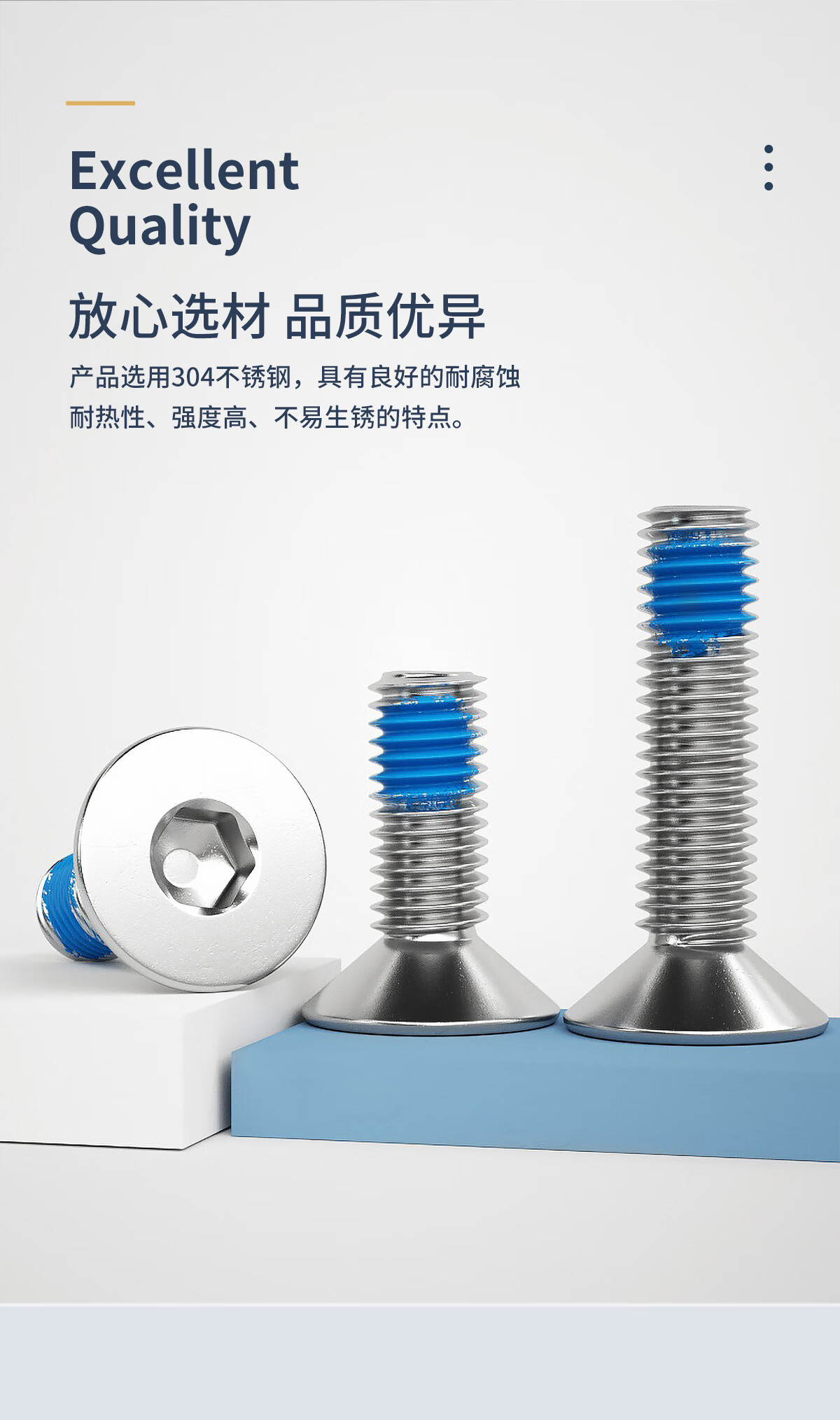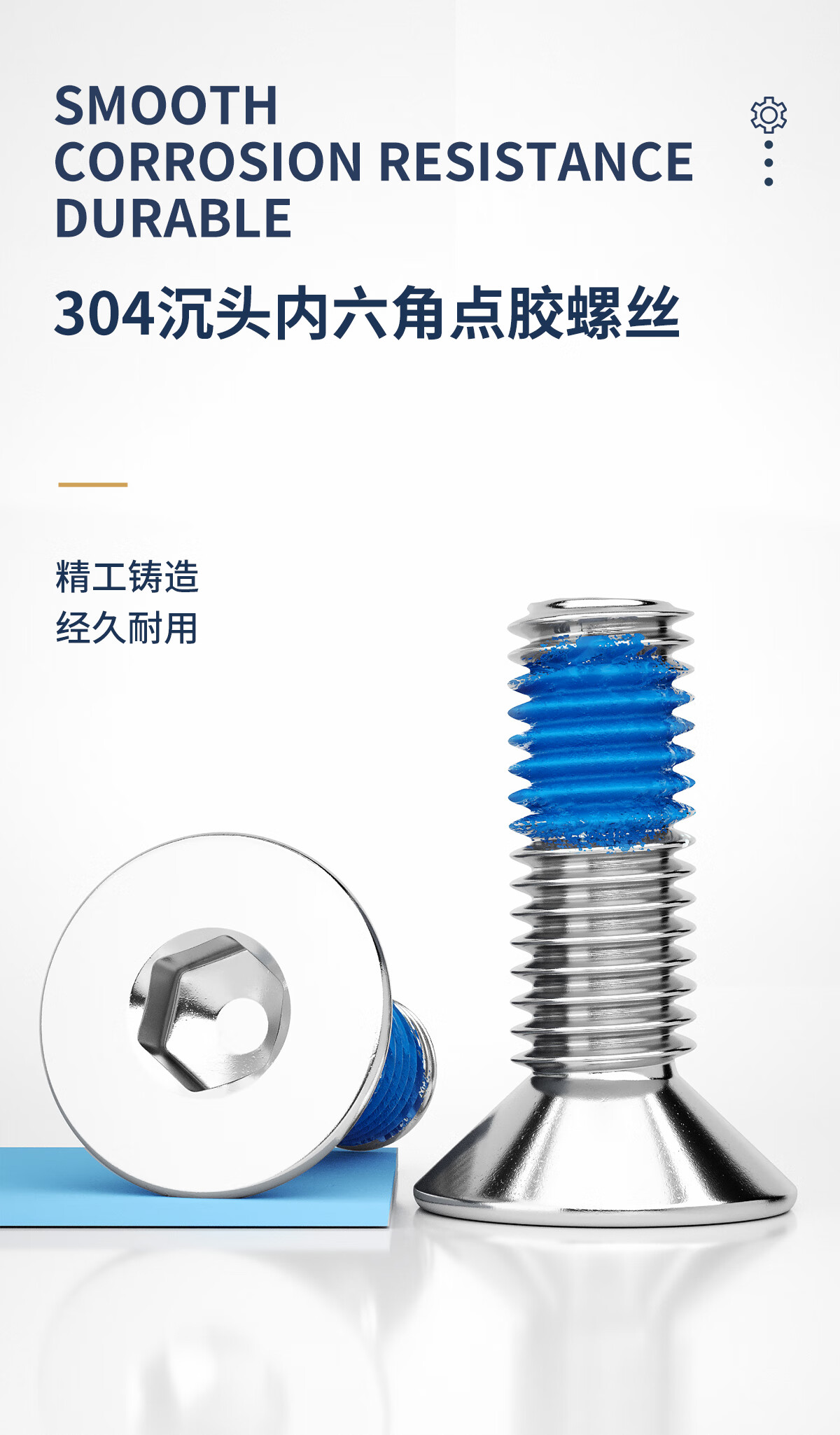 固万基(GUWANJI)304不锈钢沉头点胶内六角螺丝螺栓平杯蓝胶防松防震螺丝钉 M4x12[100个]