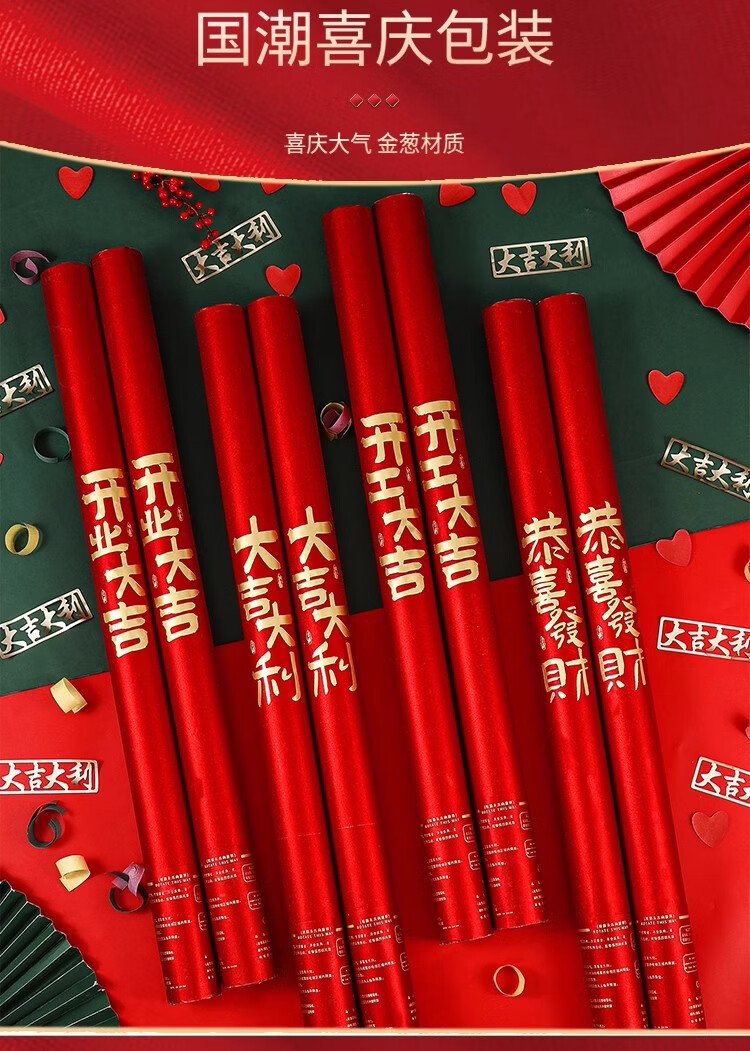 OYKTN开工大吉礼炮礼花筒手拧式乔迁之喜开业道具手持彩带礼花工厂 金葱款喜事当头【80型号】 10根