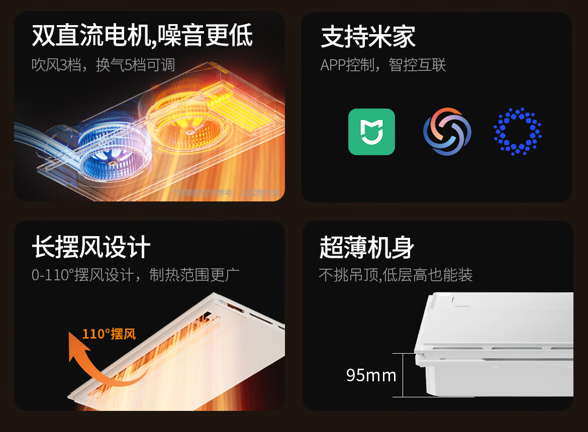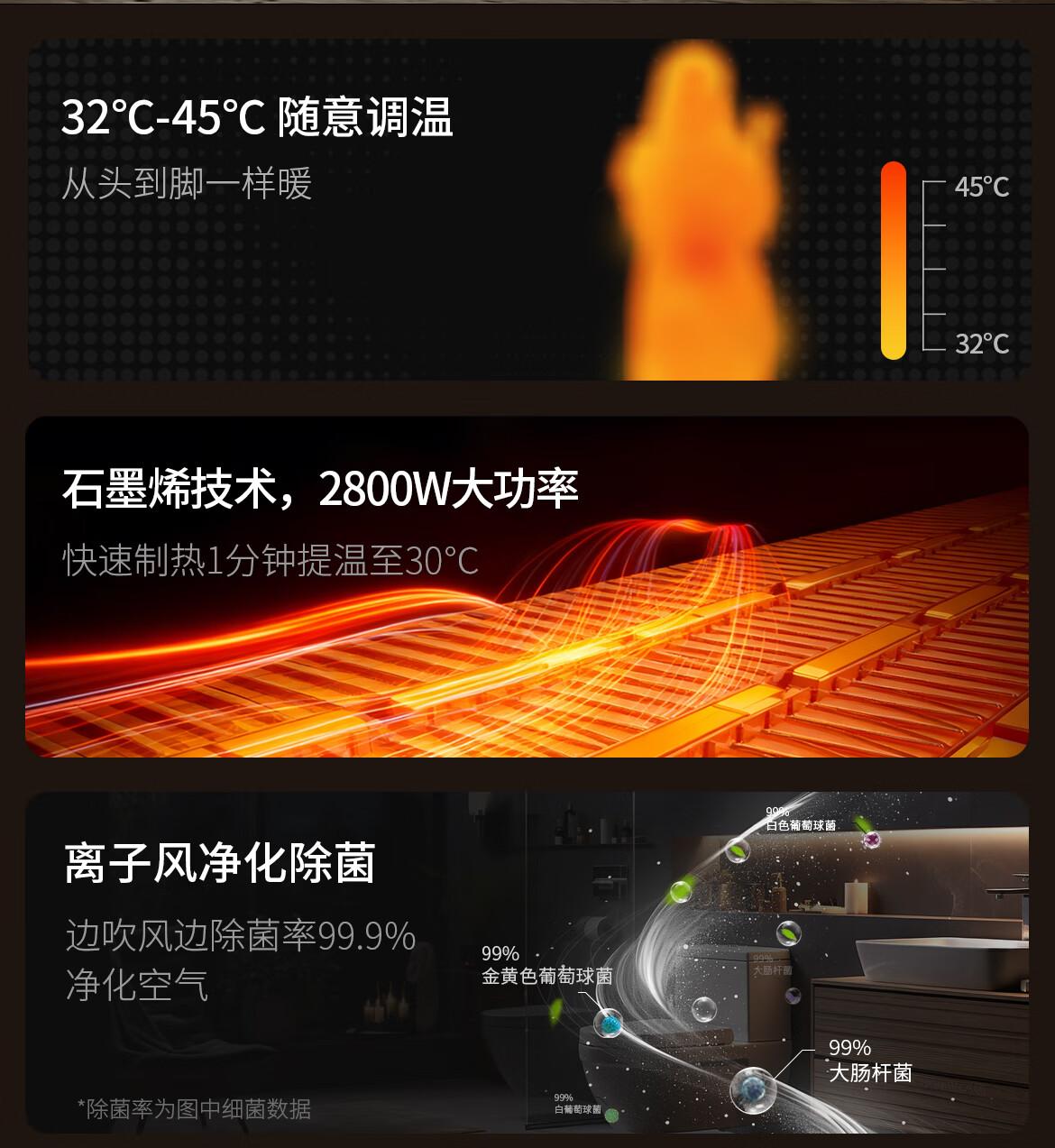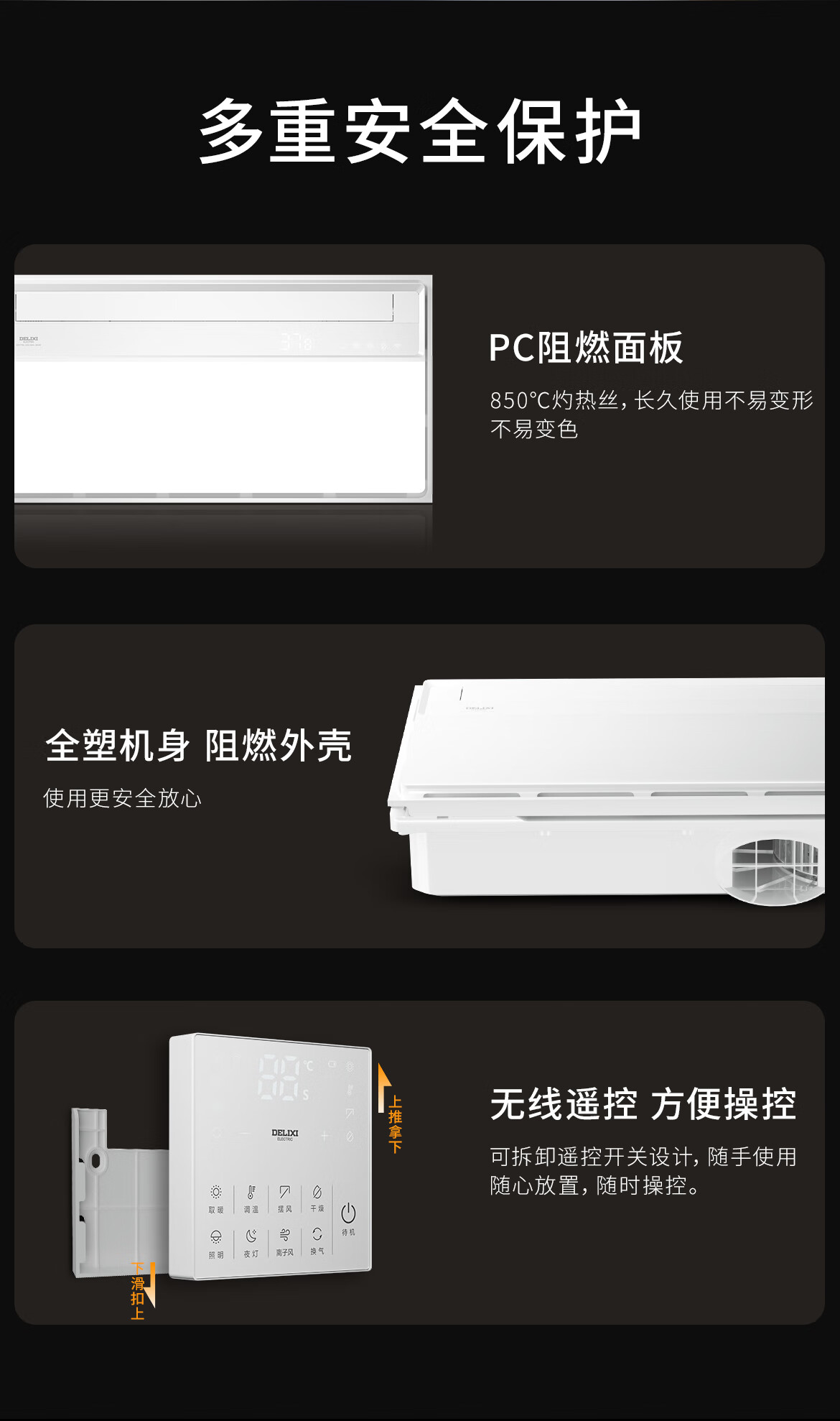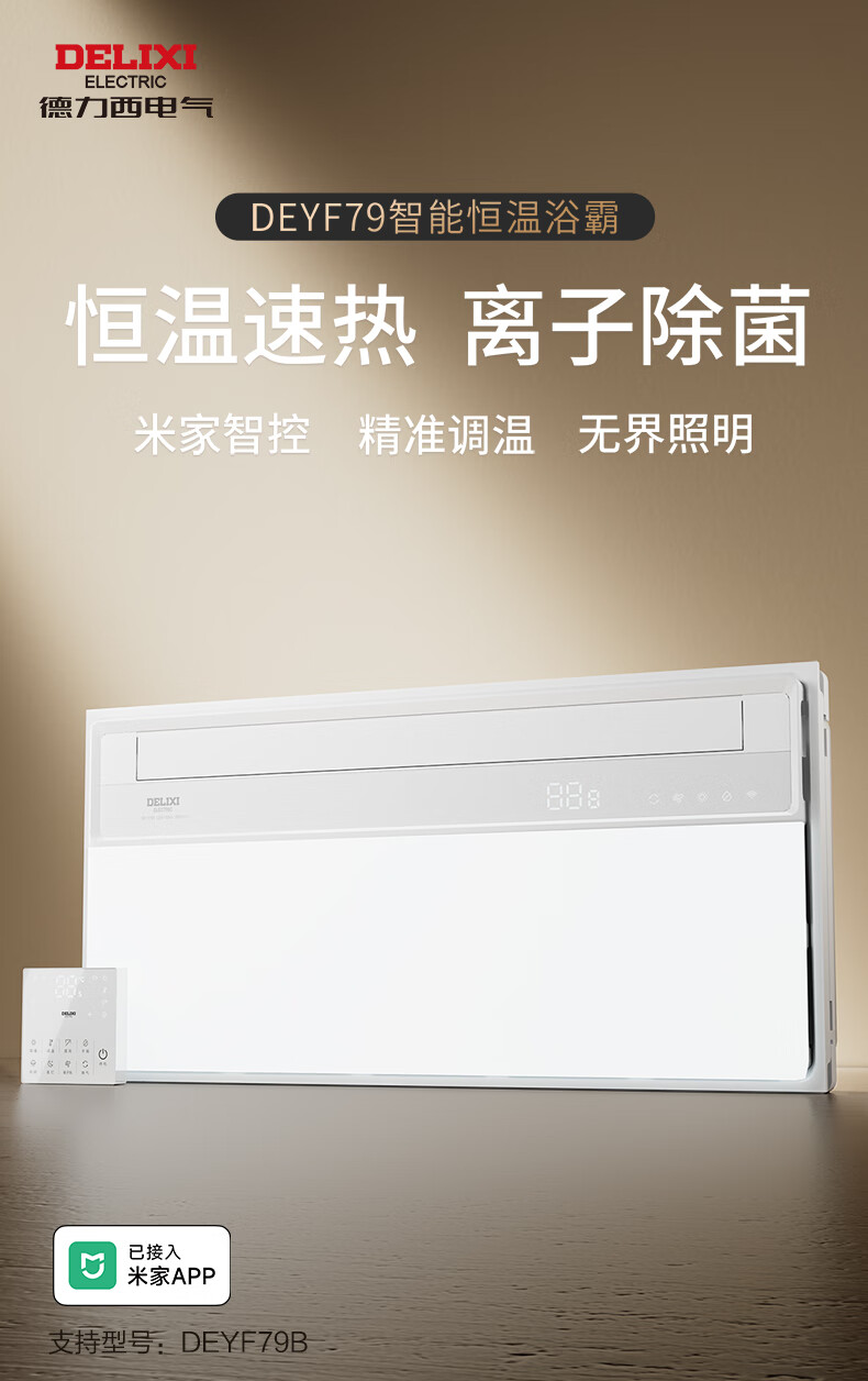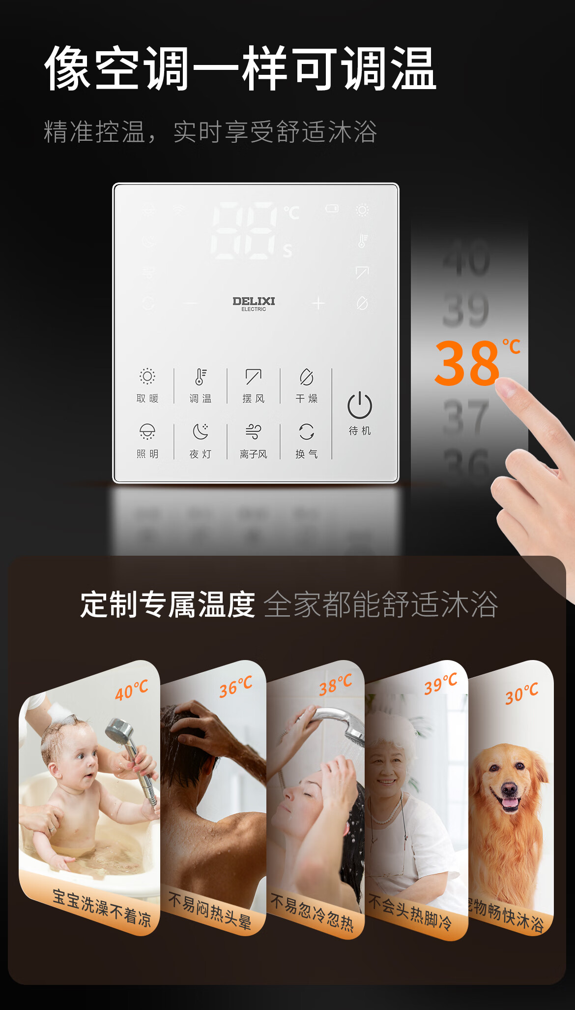 德力西(DELIXI)超薄智能风暖浴霸石墨烯精准调温速热智能除菌照明一体卫生间浴霸 【基础款无智能】告别忽冷忽热