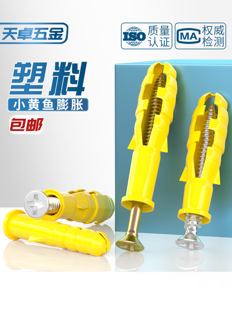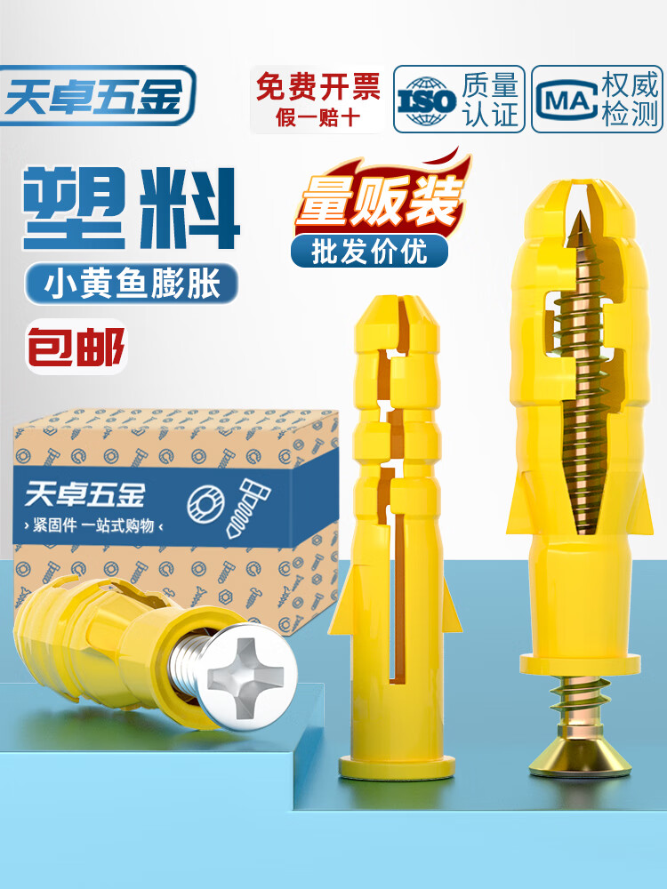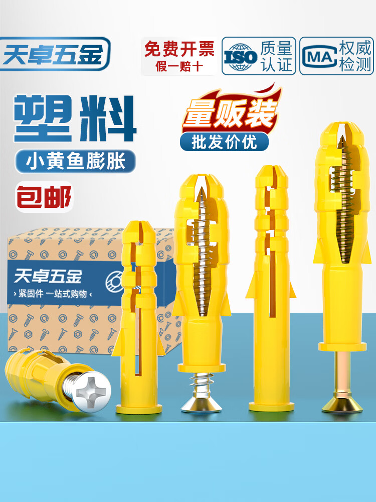 天卓五金国标小黄鱼膨胀螺丝内爆自攻丝胶塞涨栓加长塑料螺钉螺栓M6M8MM10 6*30+304不锈钢盘头钉【80套】