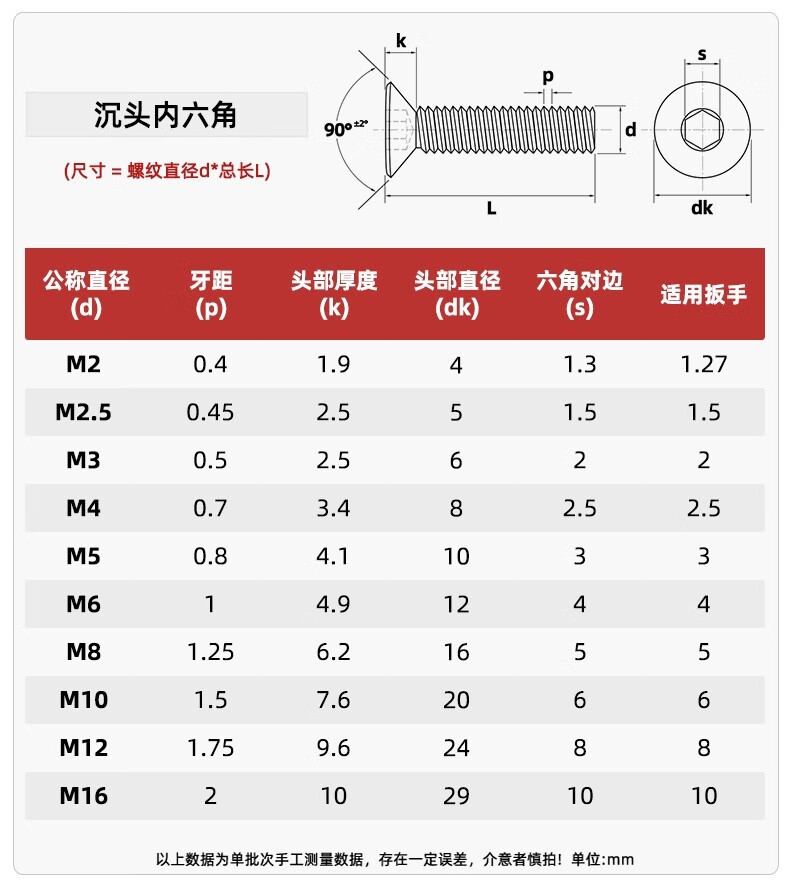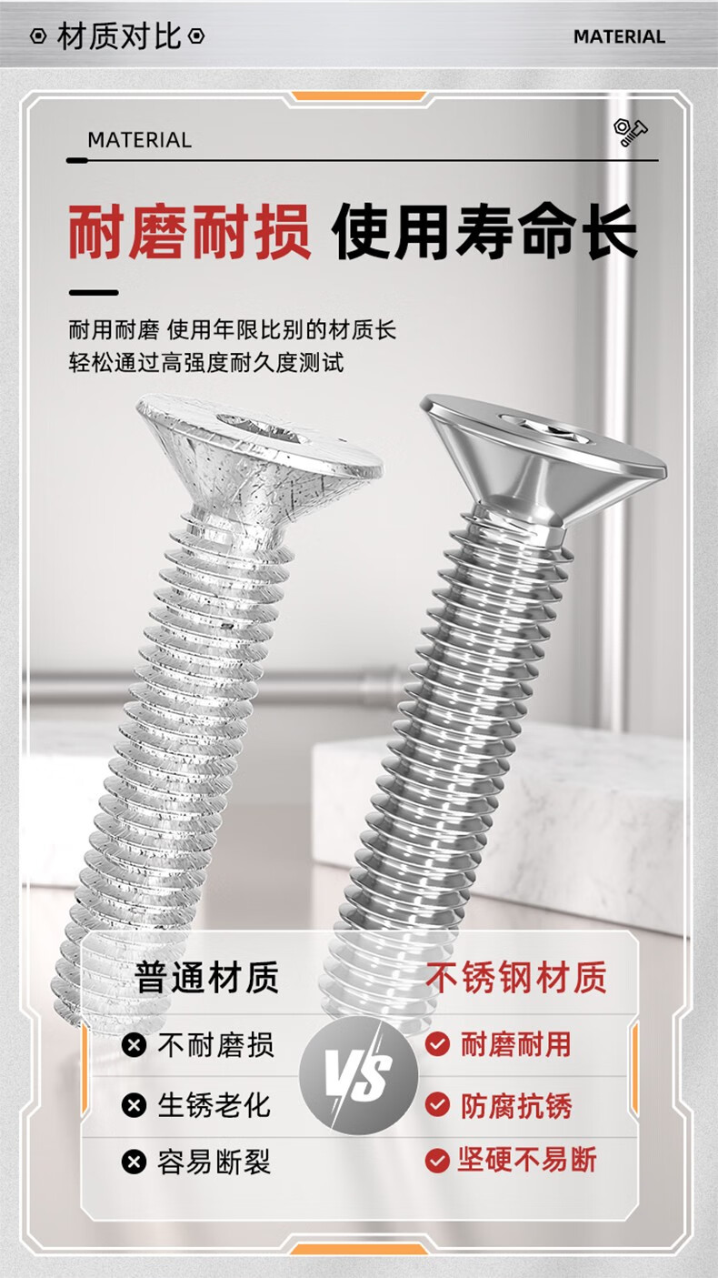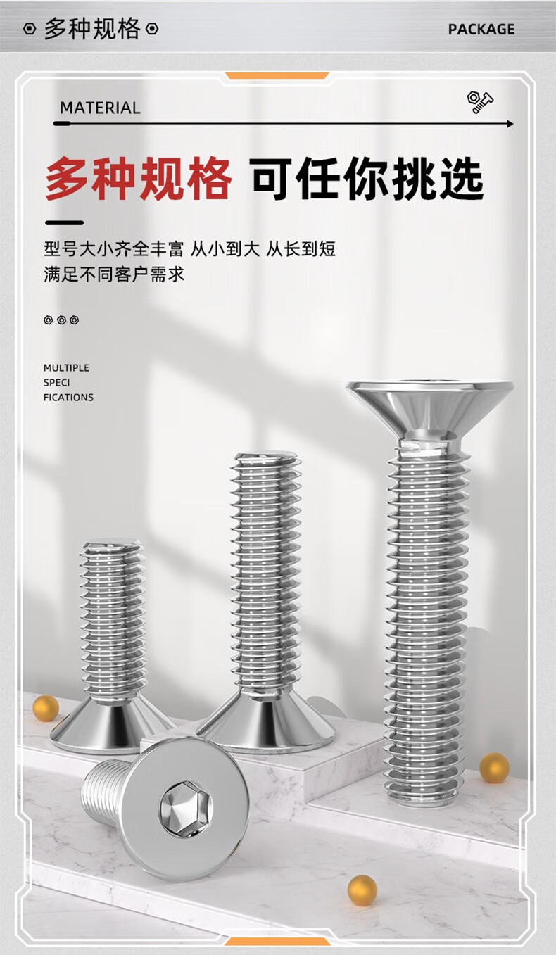 天卓五金316不锈钢沉头内六角螺丝平头螺钉平杯螺栓M2M3M4M5M6M8M10M12M16 M5*20-50个