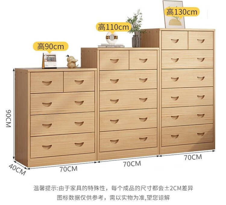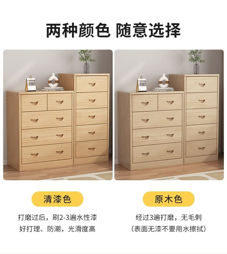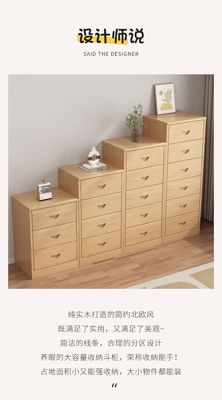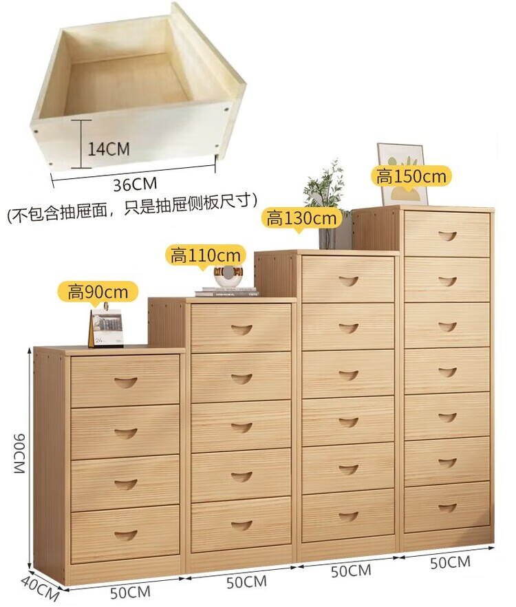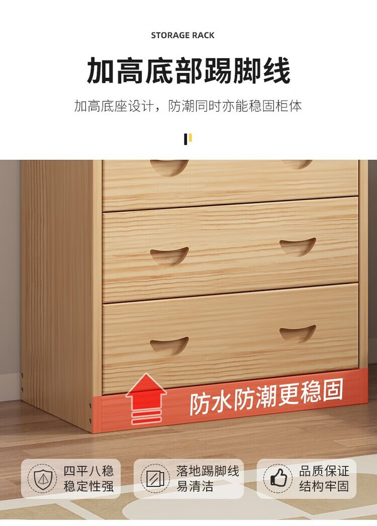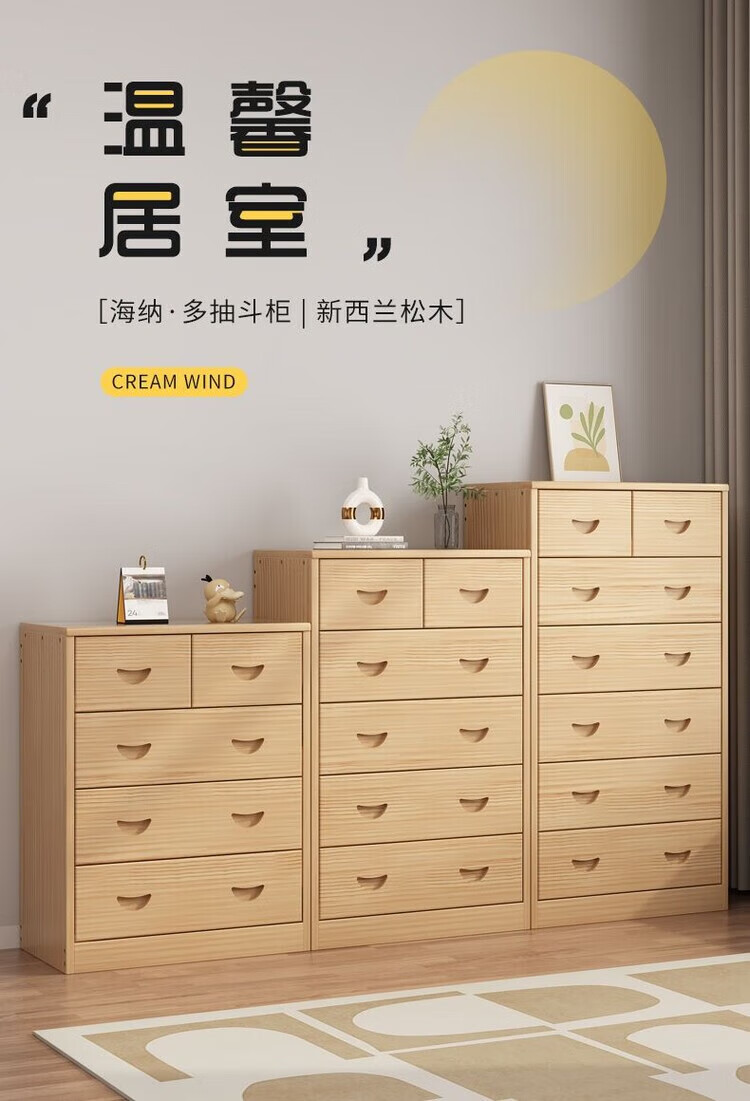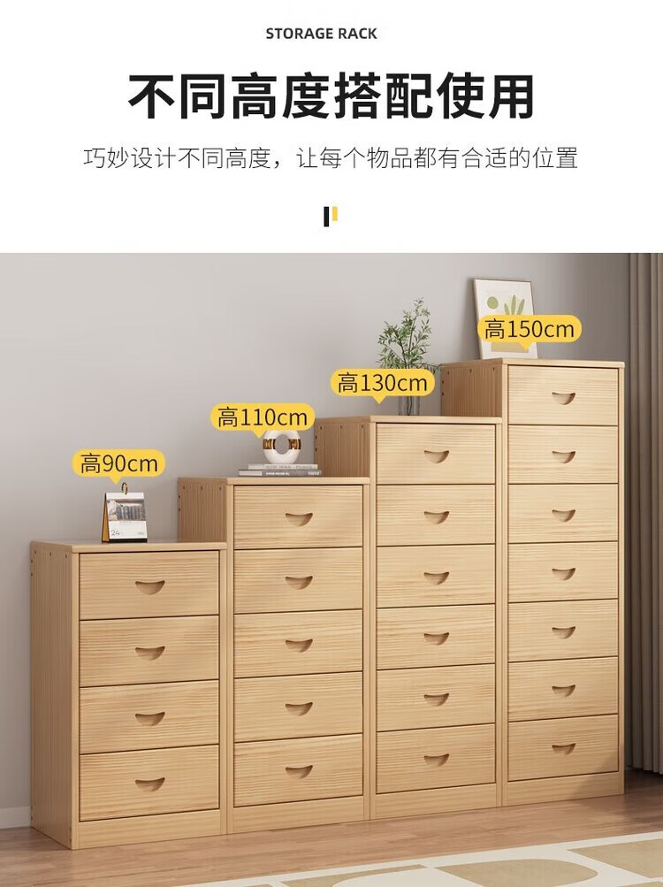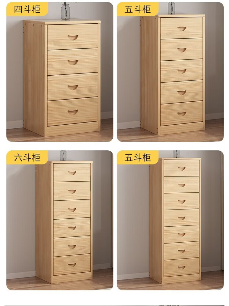 倘然之家实木收纳储物抽屉简易多功能松木斗柜现代搭配三四五六七斗橱 3柜无漆【50/40/70】1.5厚柜体